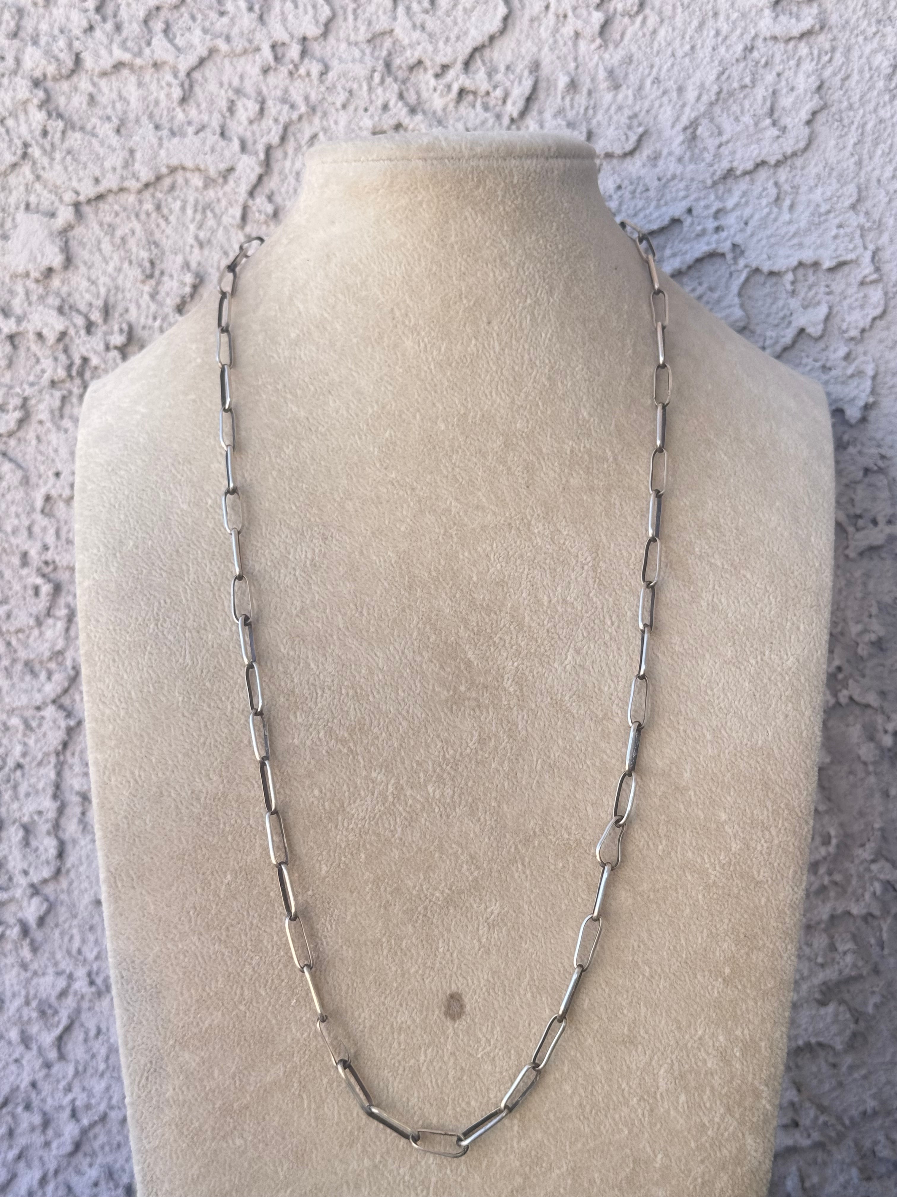 Navajo Made Sterling Silver Paperclip Link Chain Necklace. They measure 24 inches long.