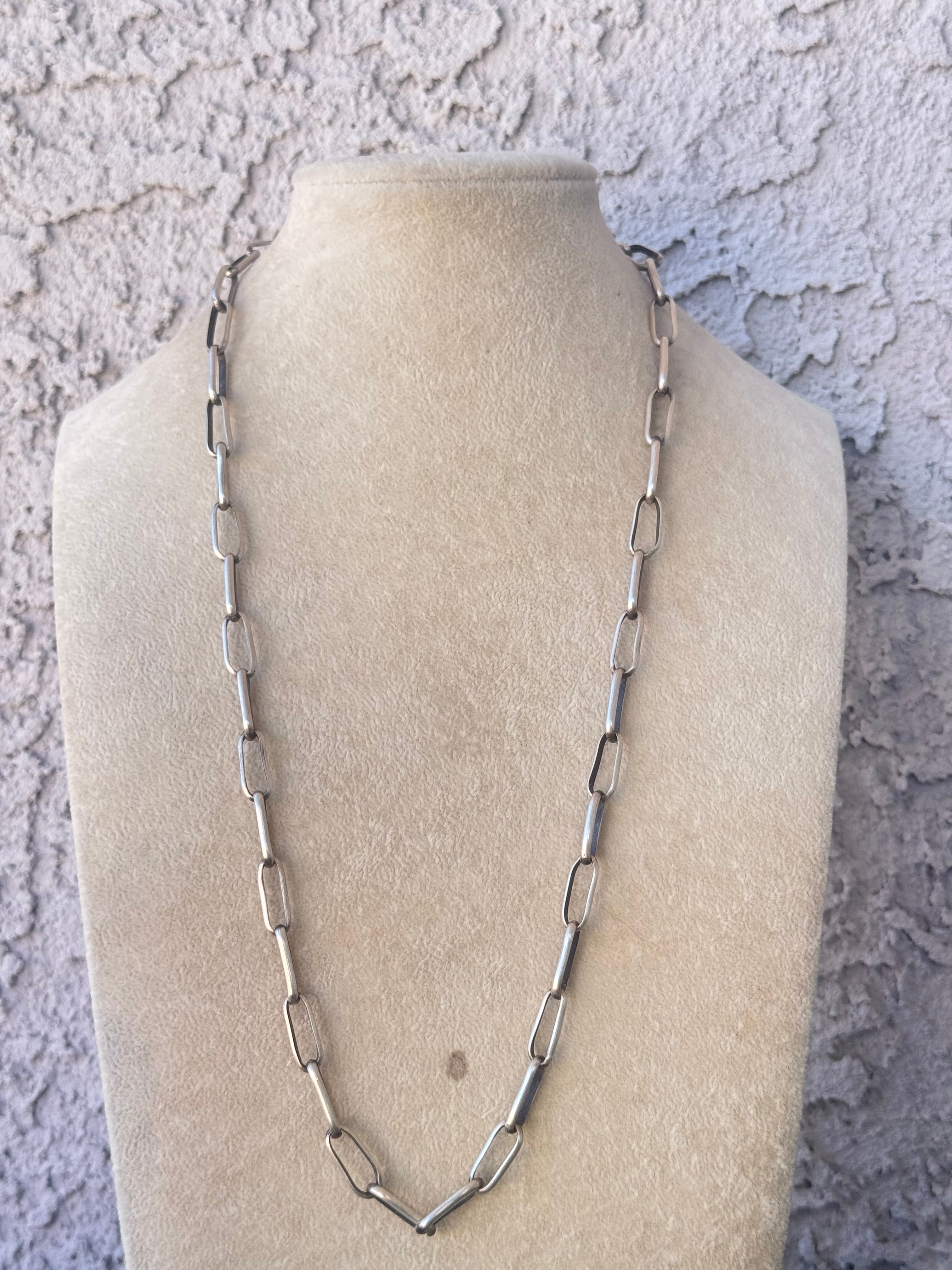 Navajo Made Sterling Silver Paperclip Link Chain Necklace. They measure 24 inches long.