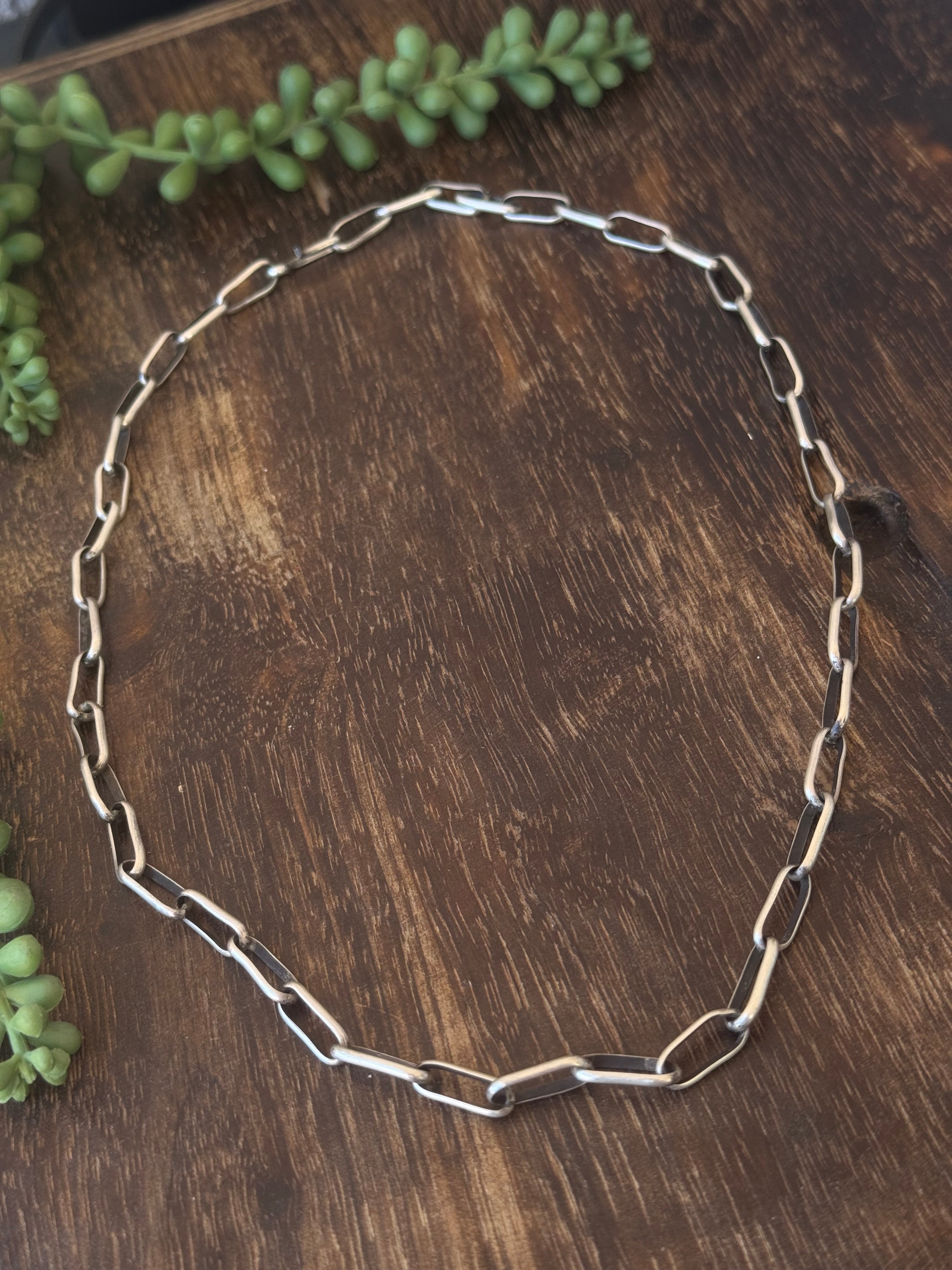 Navajo Made Sterling Silver Paperclip Link Chain Necklace