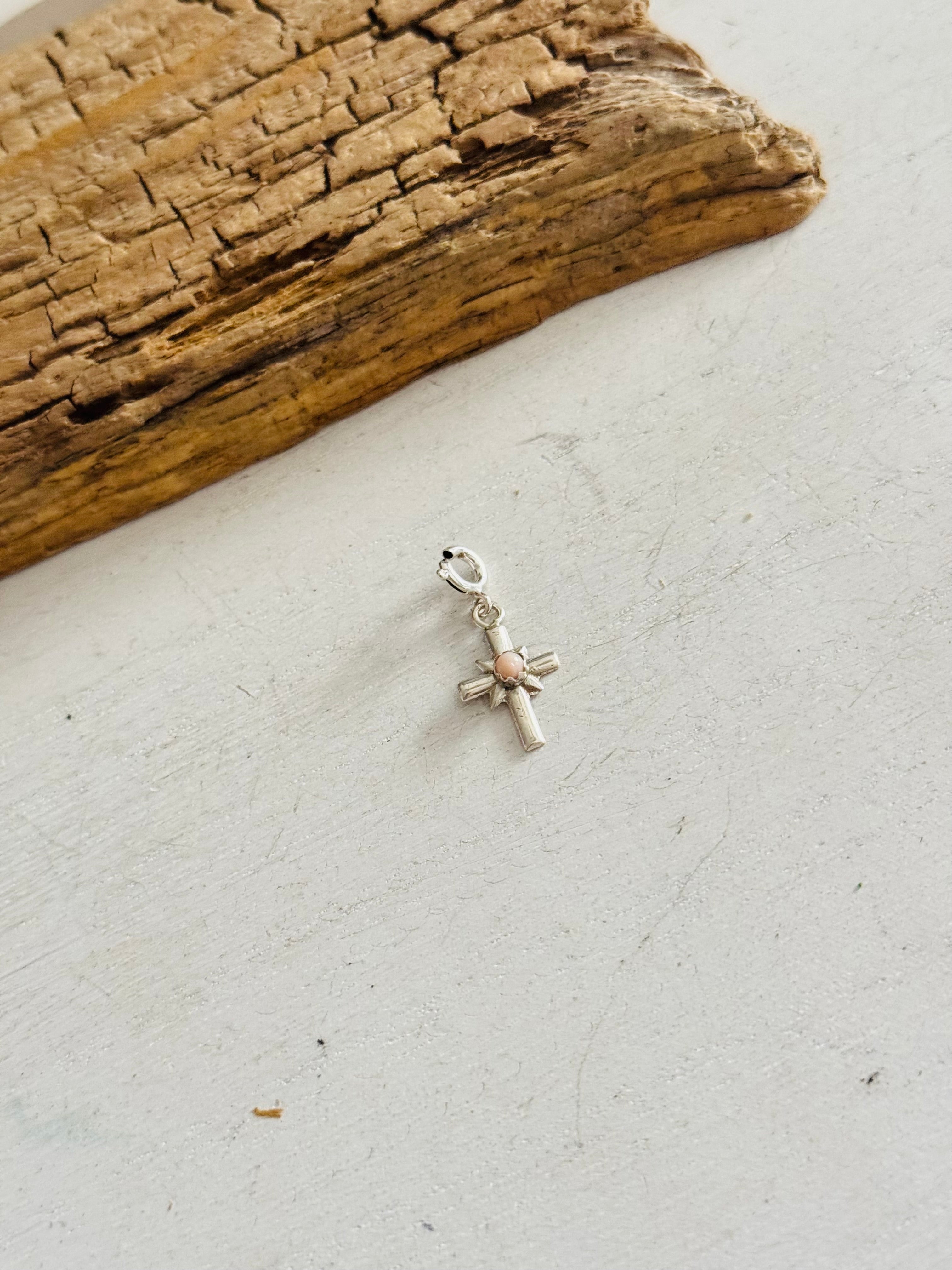 Navajo Made Pink Conch Sterling Silver Cross Cast Charms