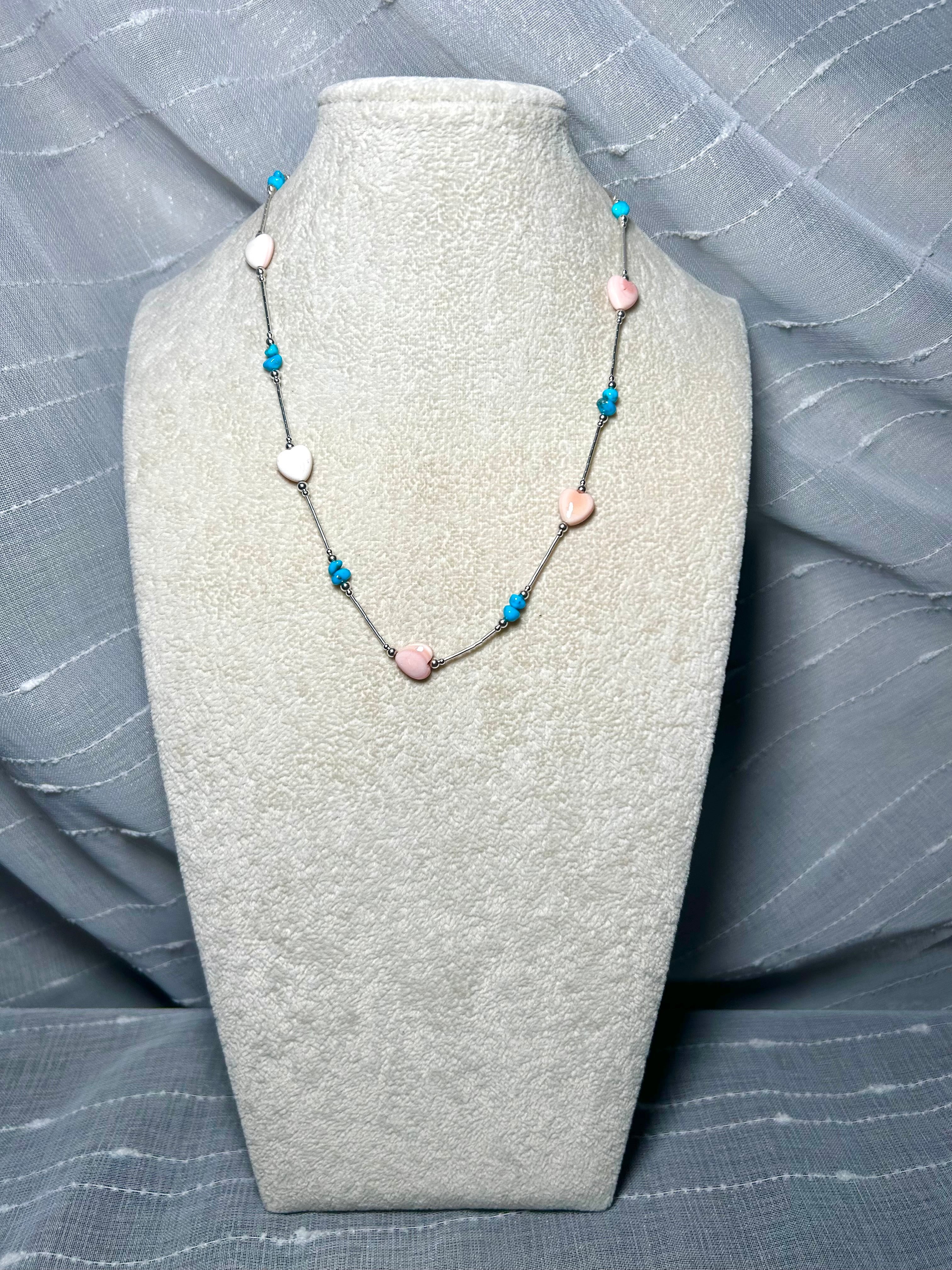 Navajo Made Strung Multi Stone & Sterling Silver Necklace