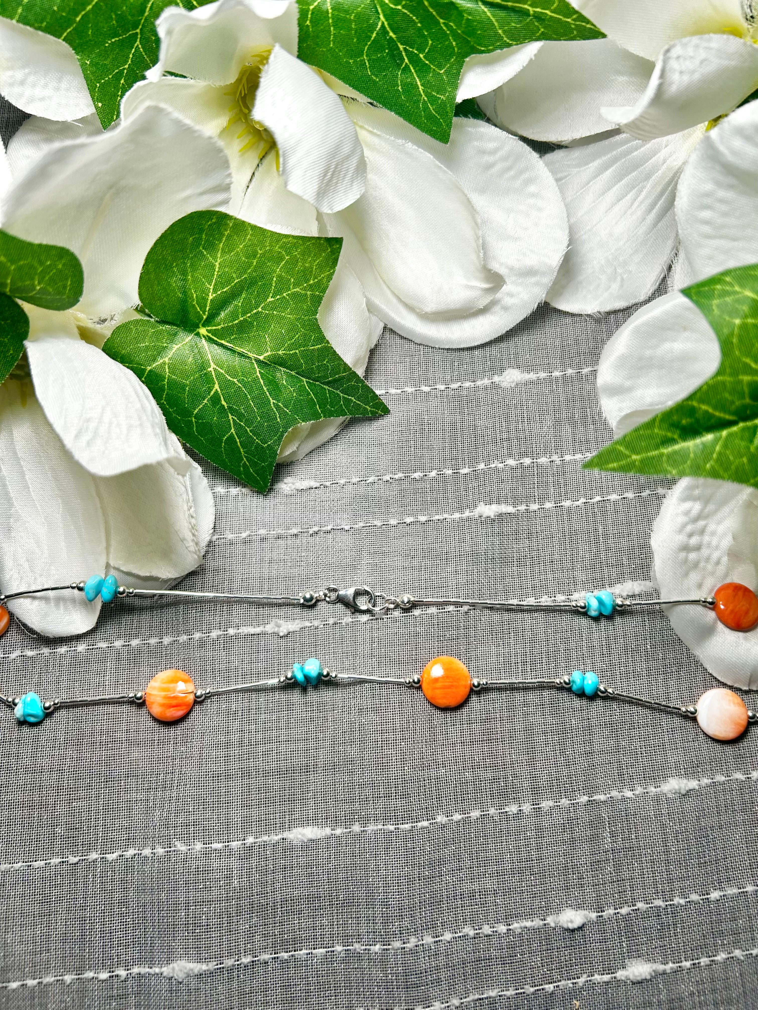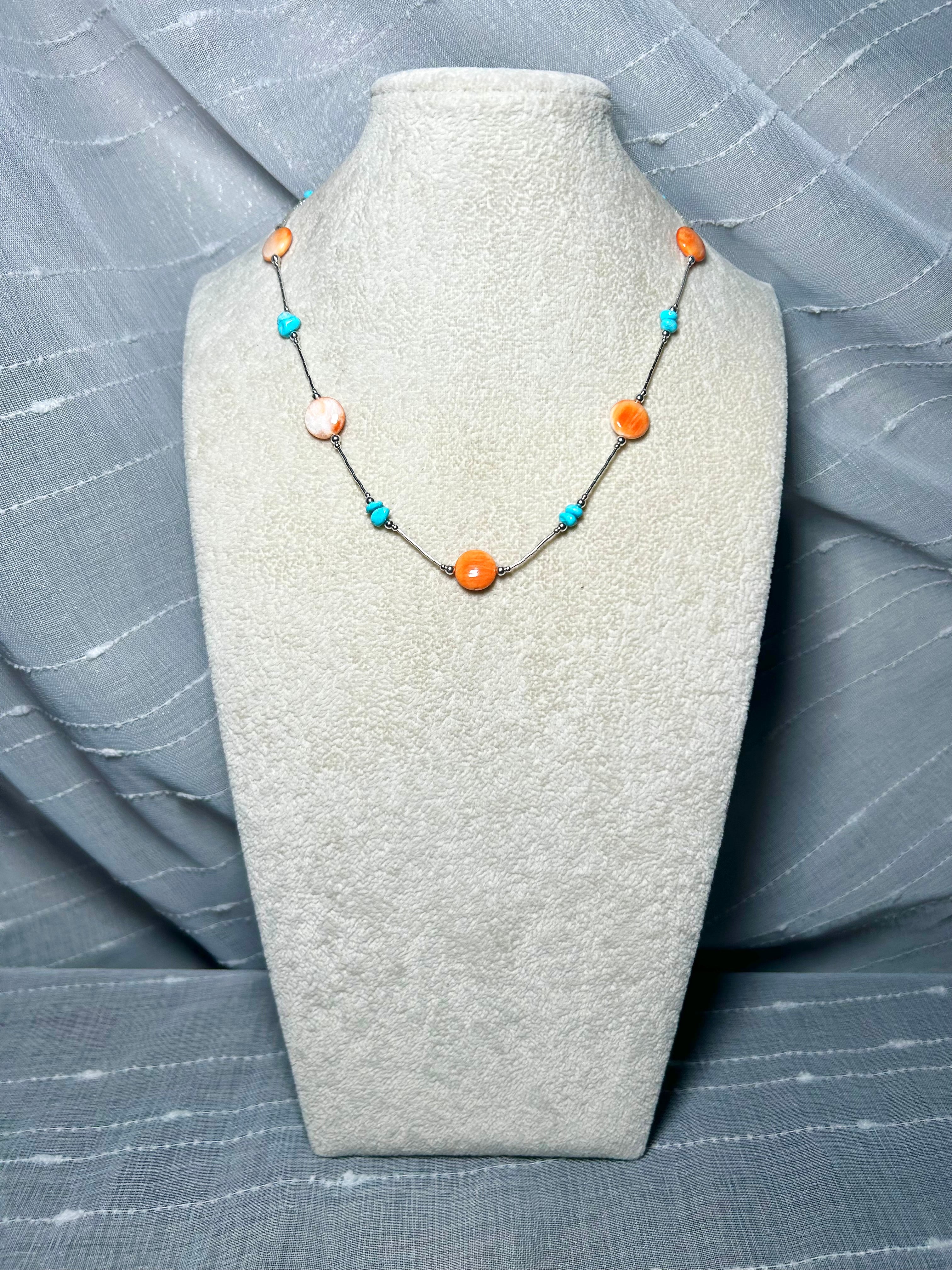 Navajo Made Strung Multi Stone & Sterling Silver Necklace