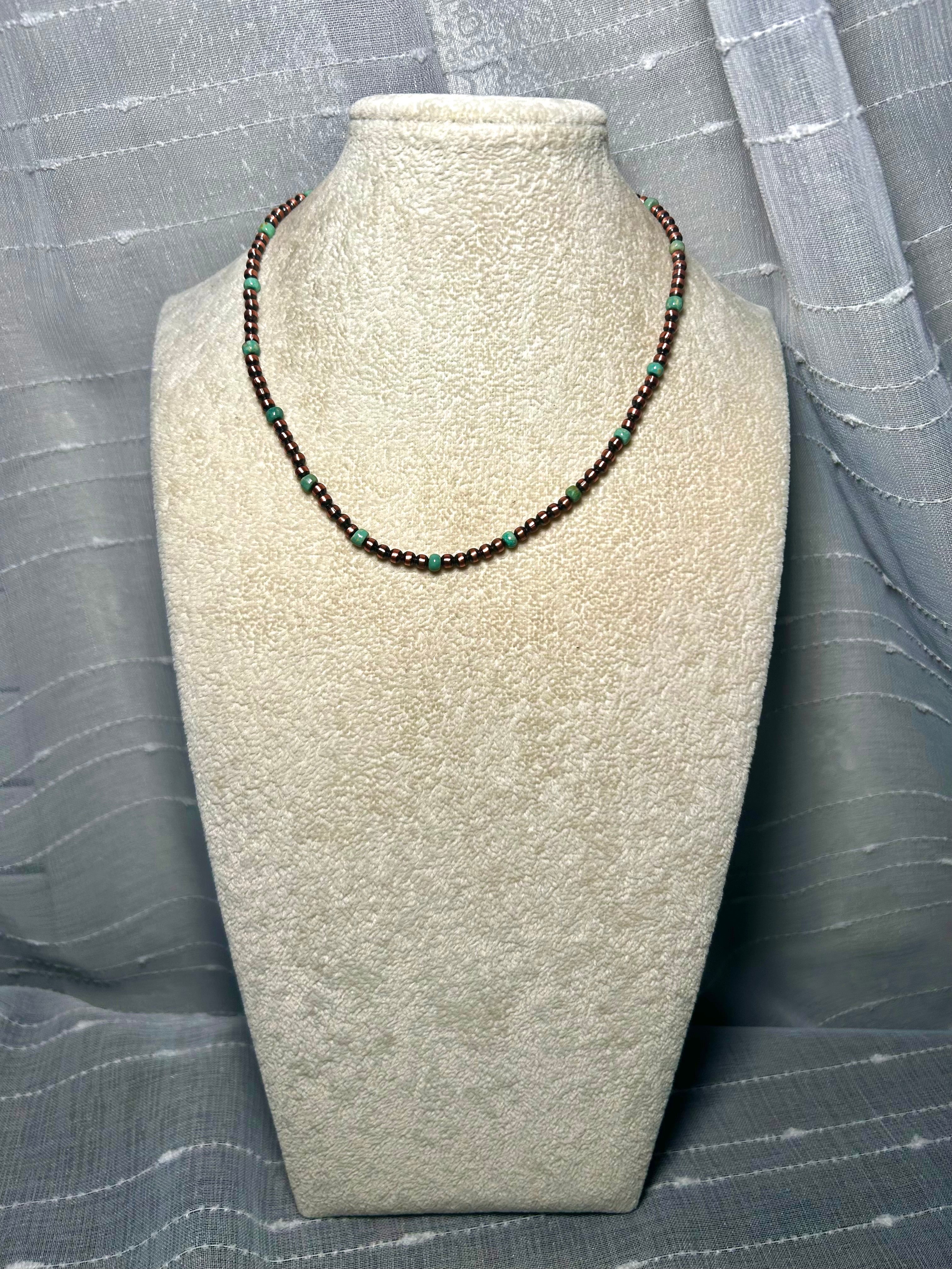 Navajo Made Strung Kingman Turquoise & Copper Necklace