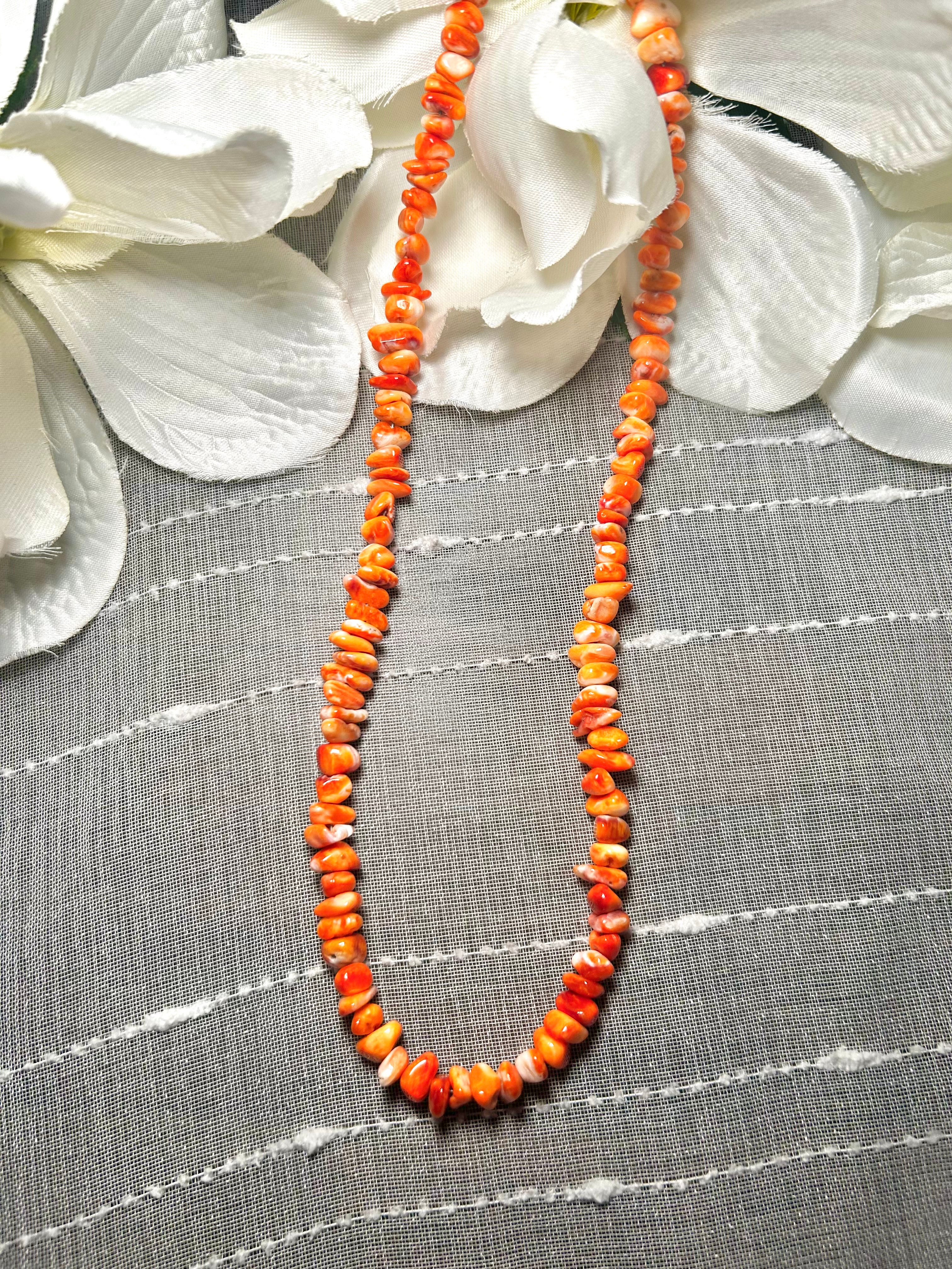 Navajo Made Strung Spiny Oyster & Sterling Silver Necklace