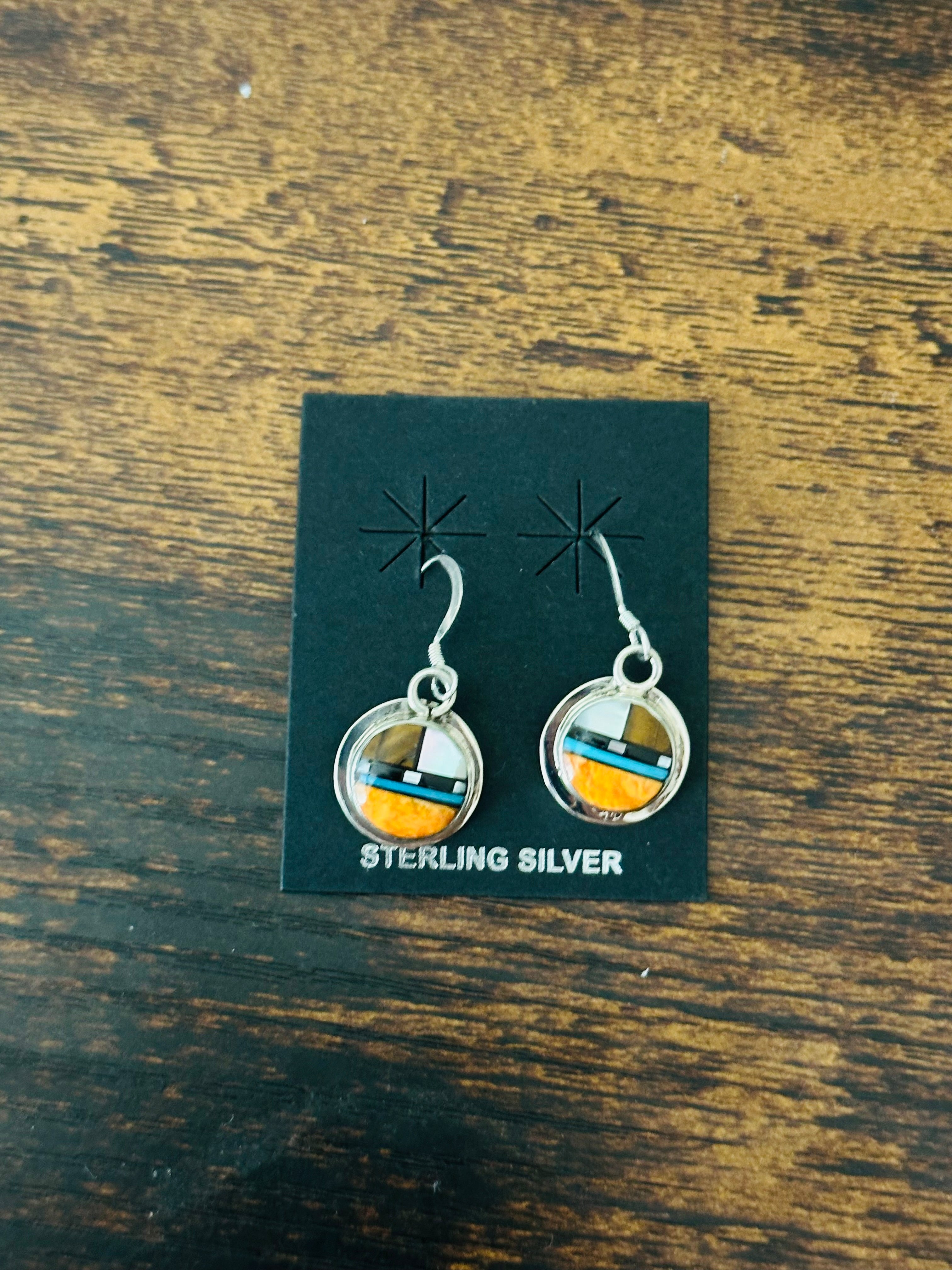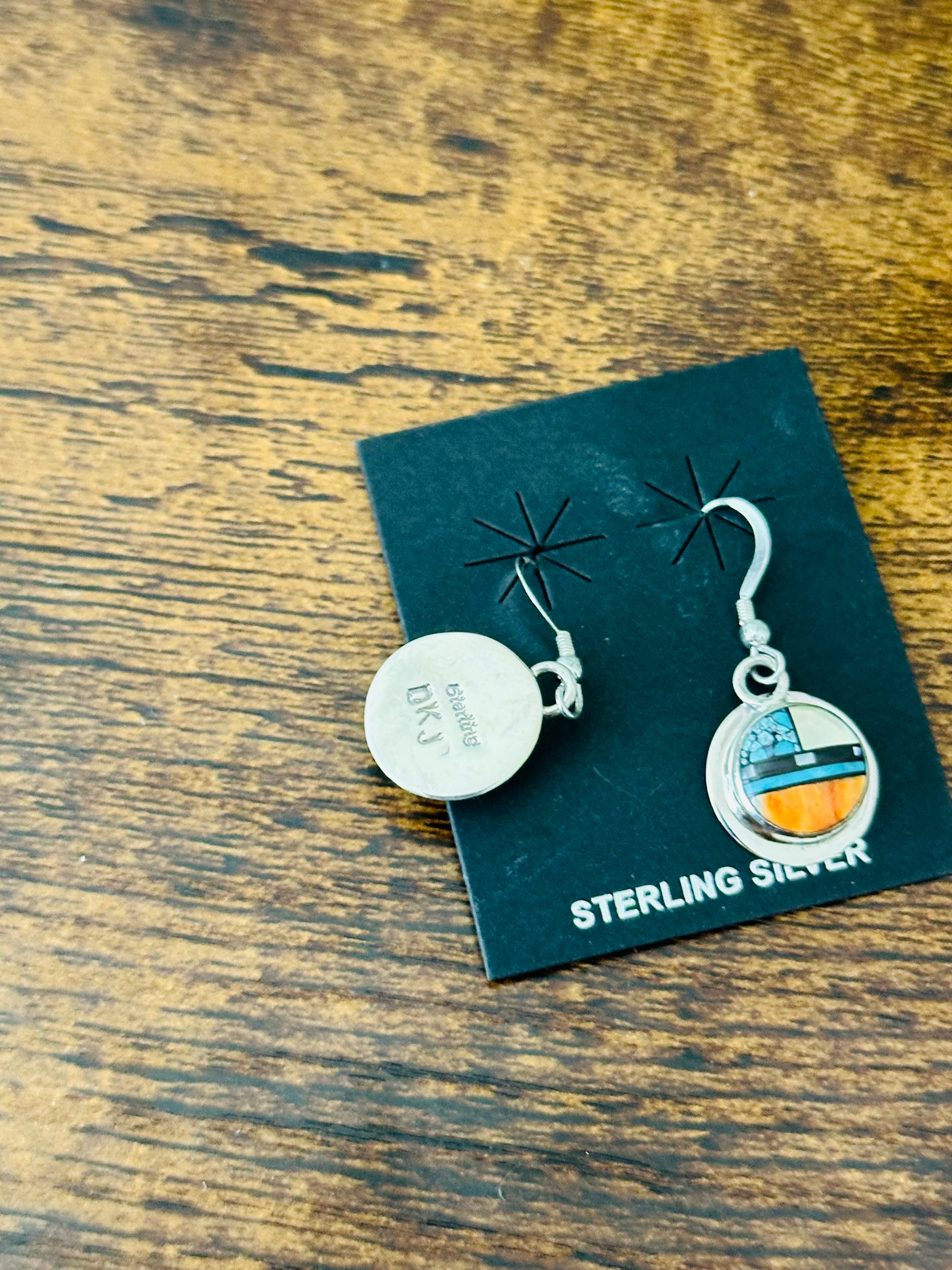 Navajo Made Turquoise & Sterling Silver Inlay Dangle Earrings