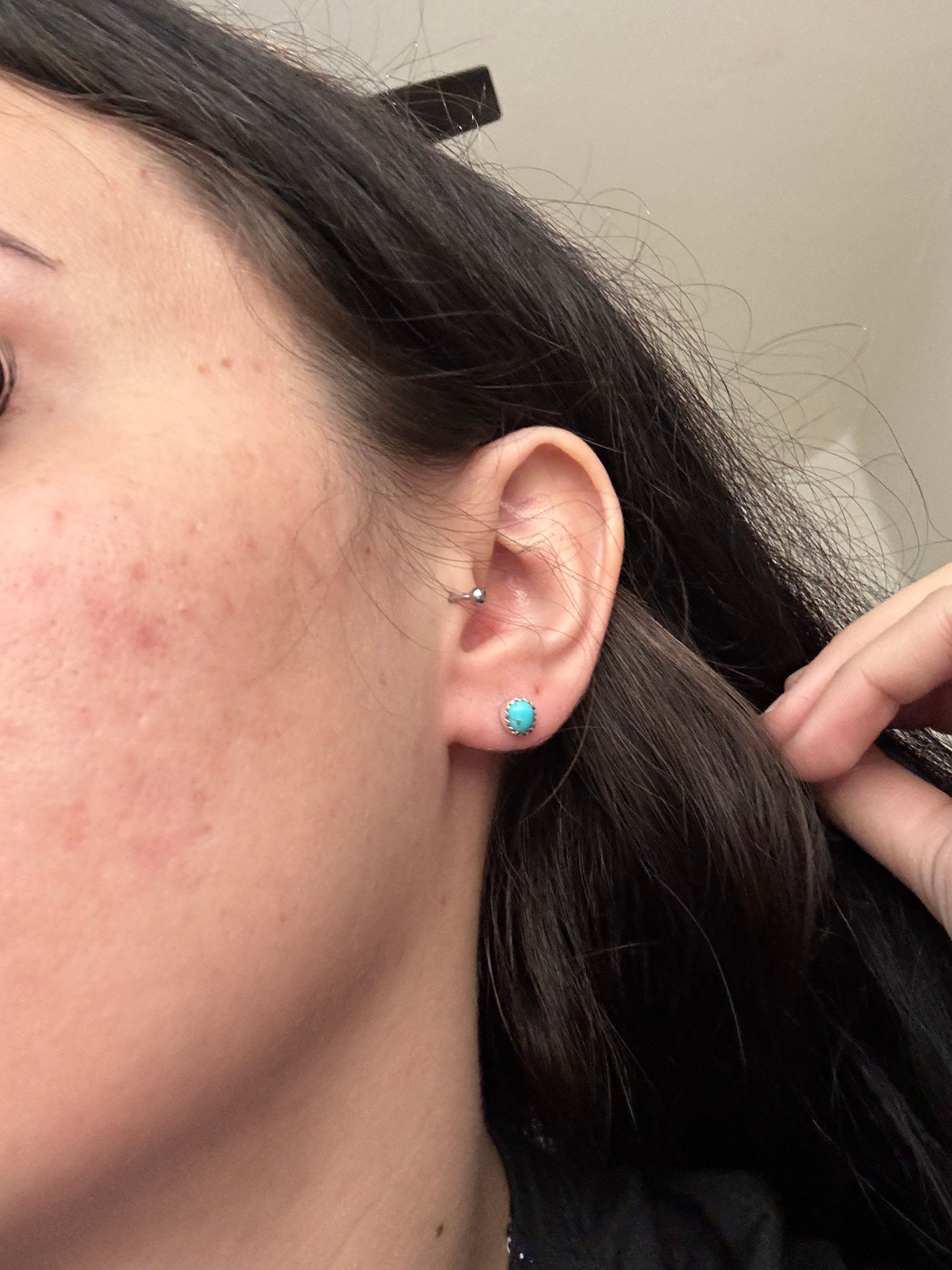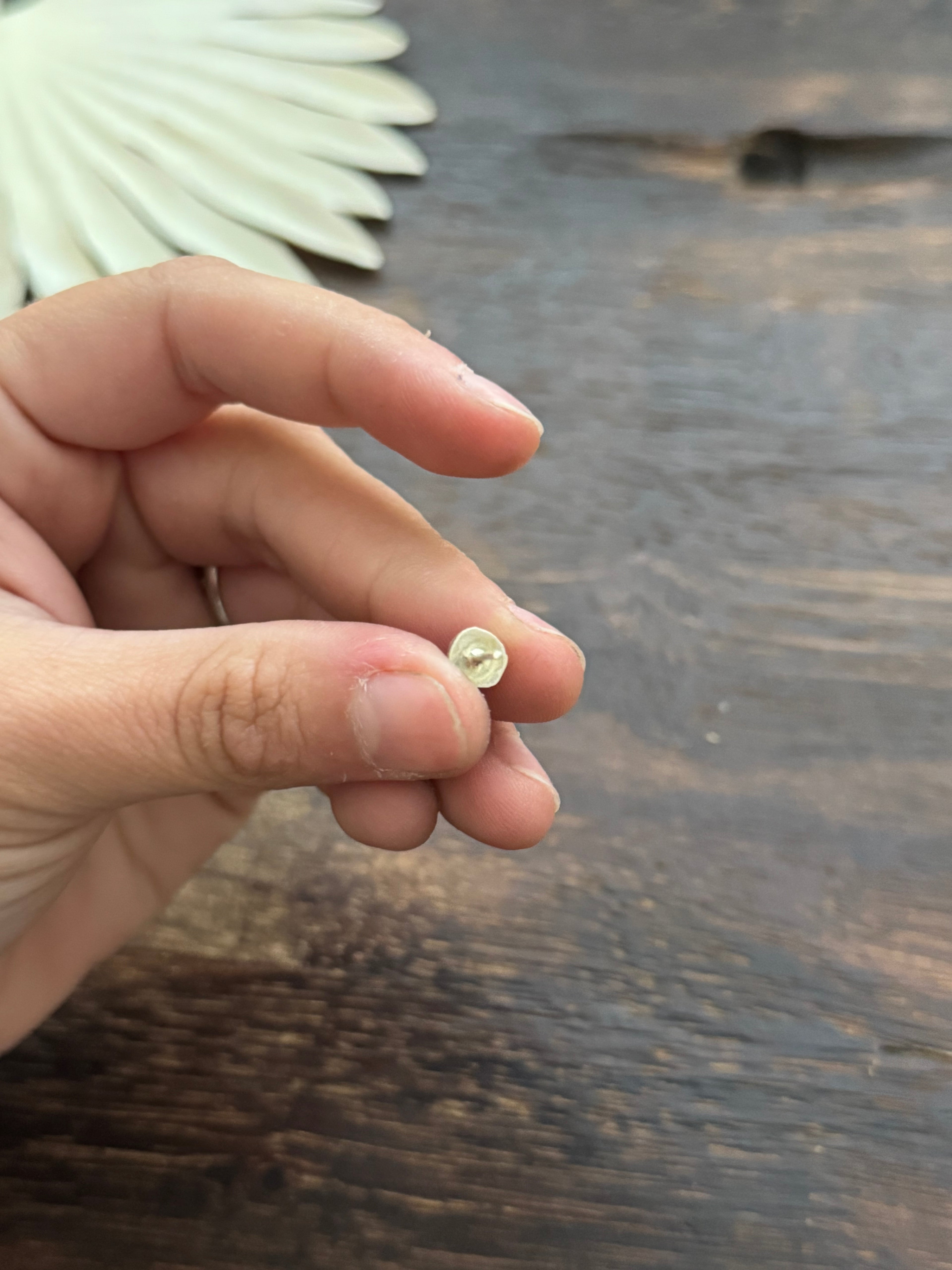 In love with these everyday earrings. Dorthy Yazzie Kingman Turquoise & Sterling Silver Post Earrings. It measures 3/8 of an inch long and 3/8 of an inch wide. Stamped and signed.