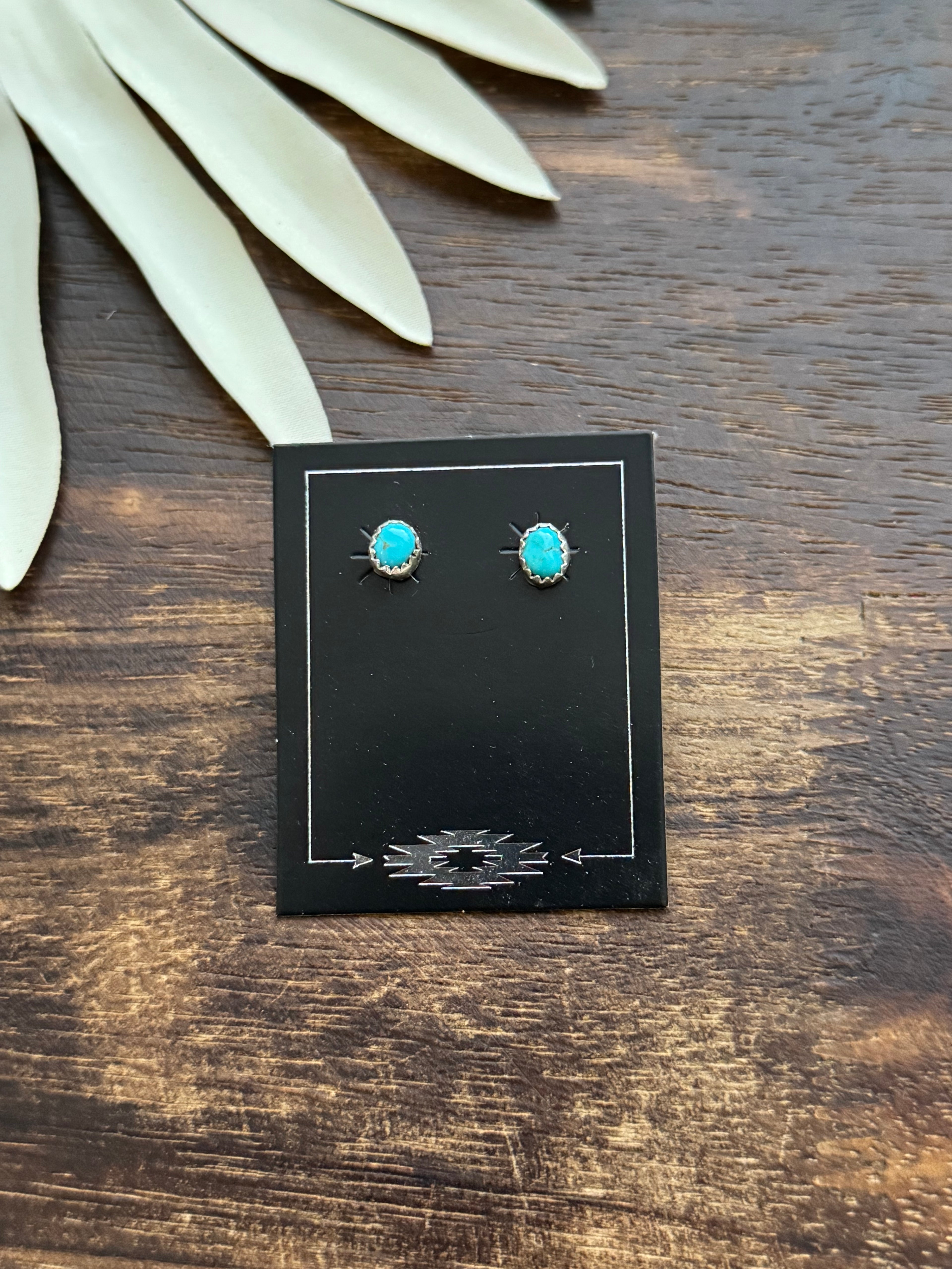 Dorthy Yazzie Kingman Turquoise & Sterling Silver Post Earrings