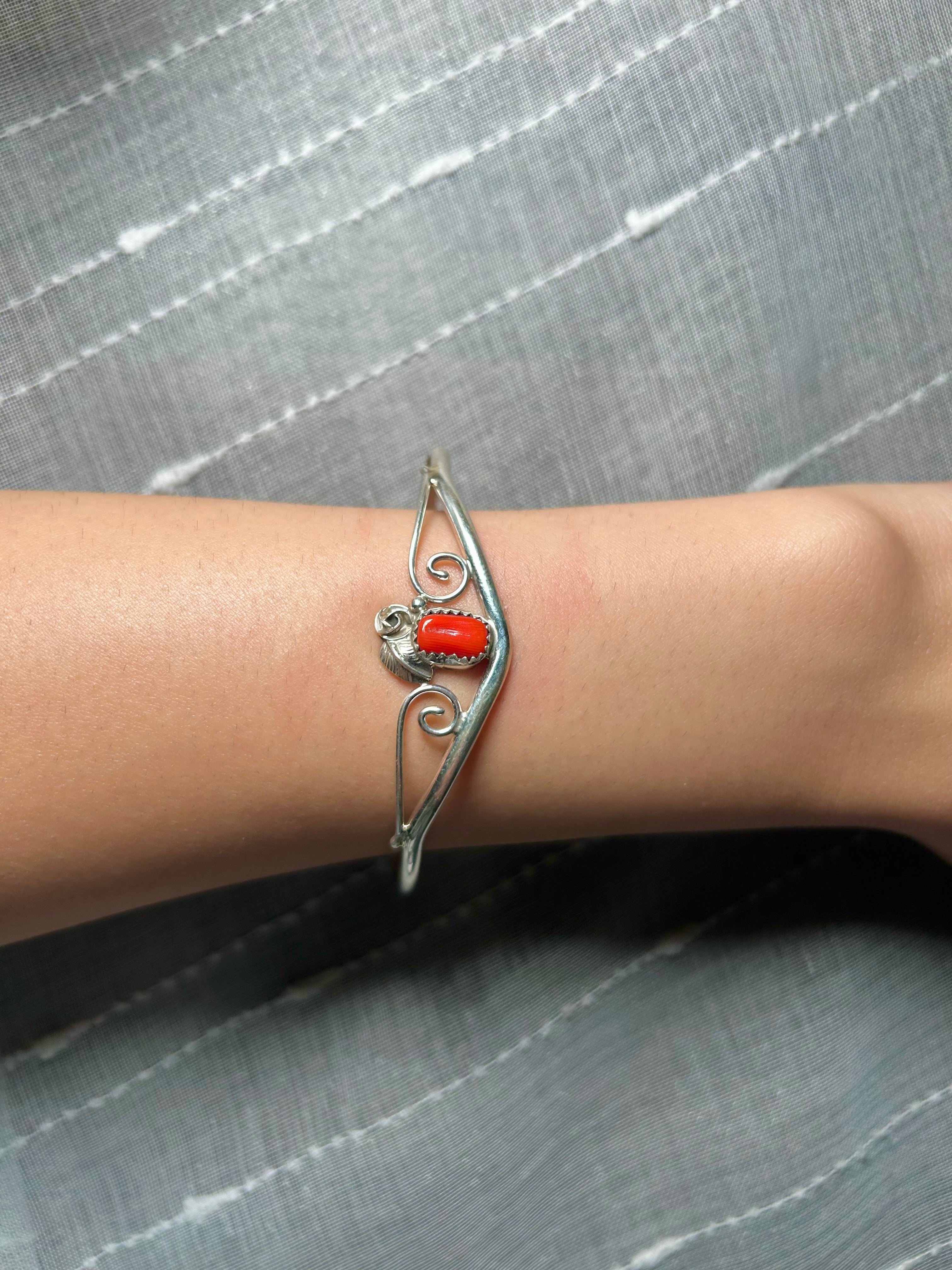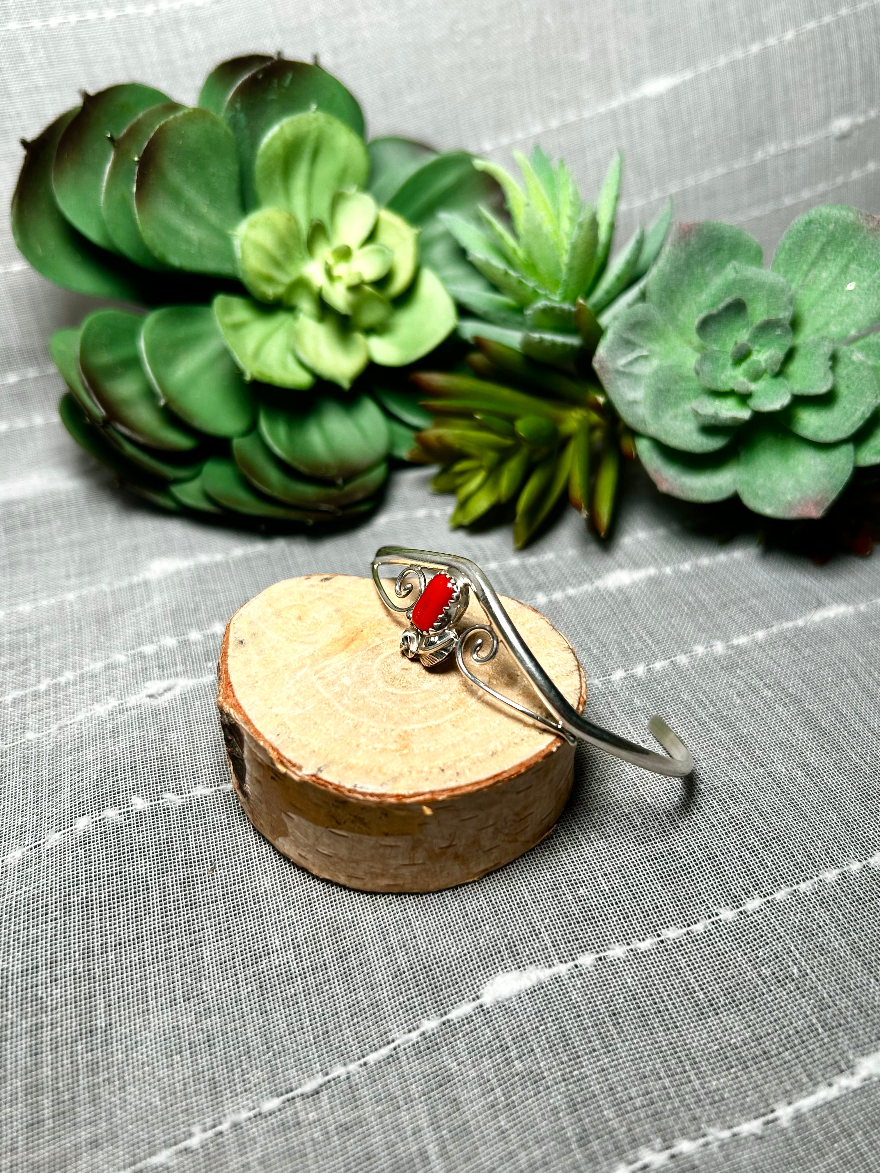 Navajo Made Red Coral & Sterling Silver Cuff Bracelet