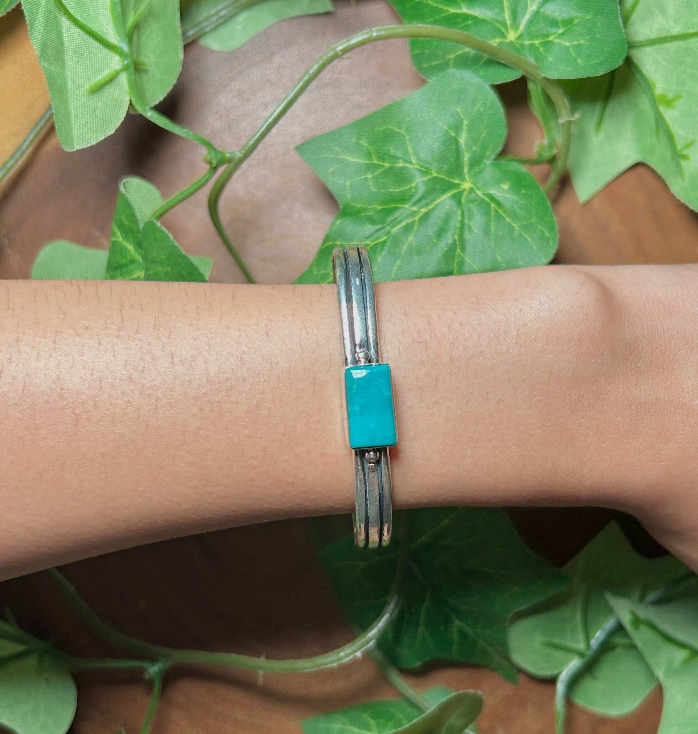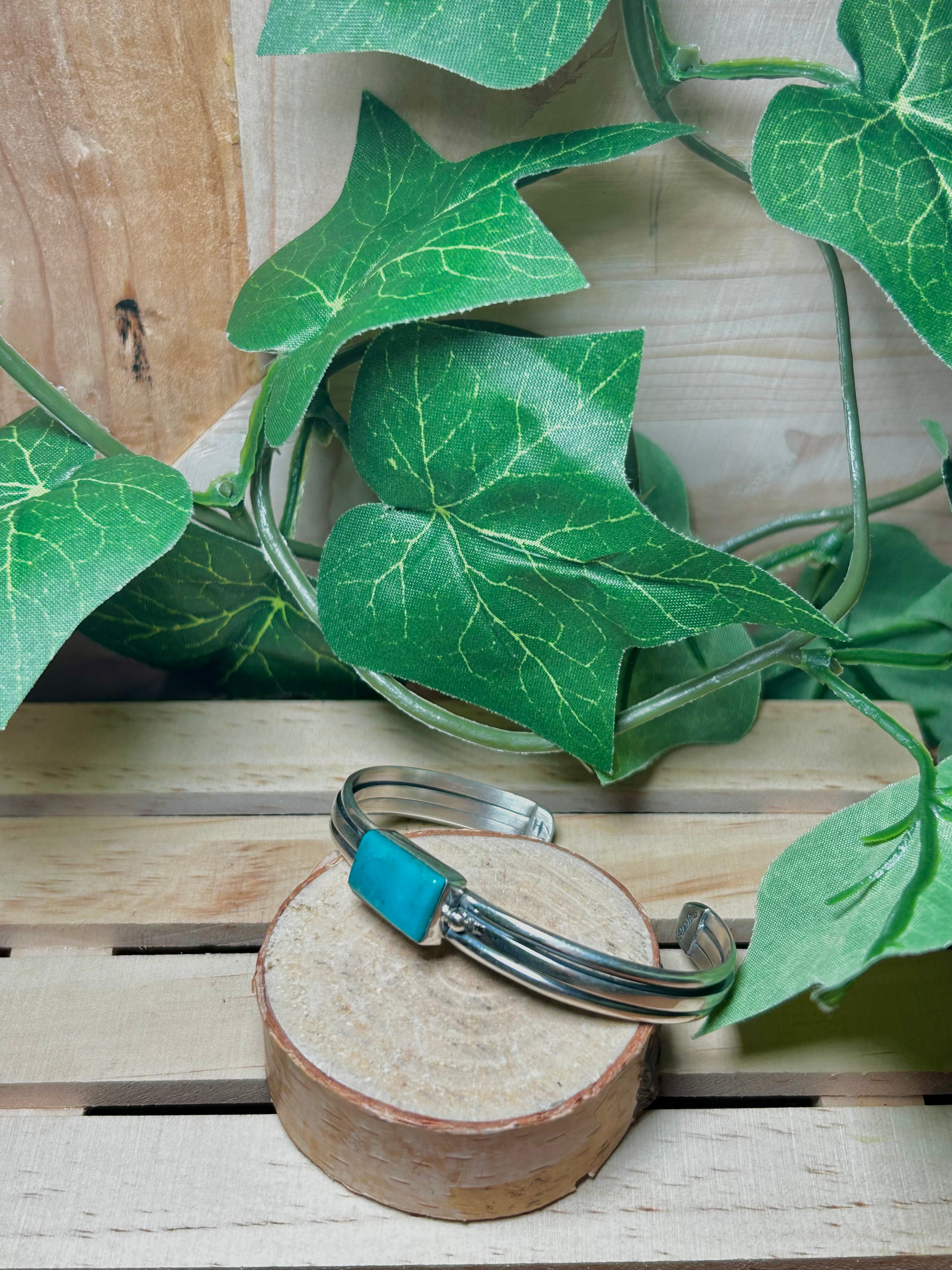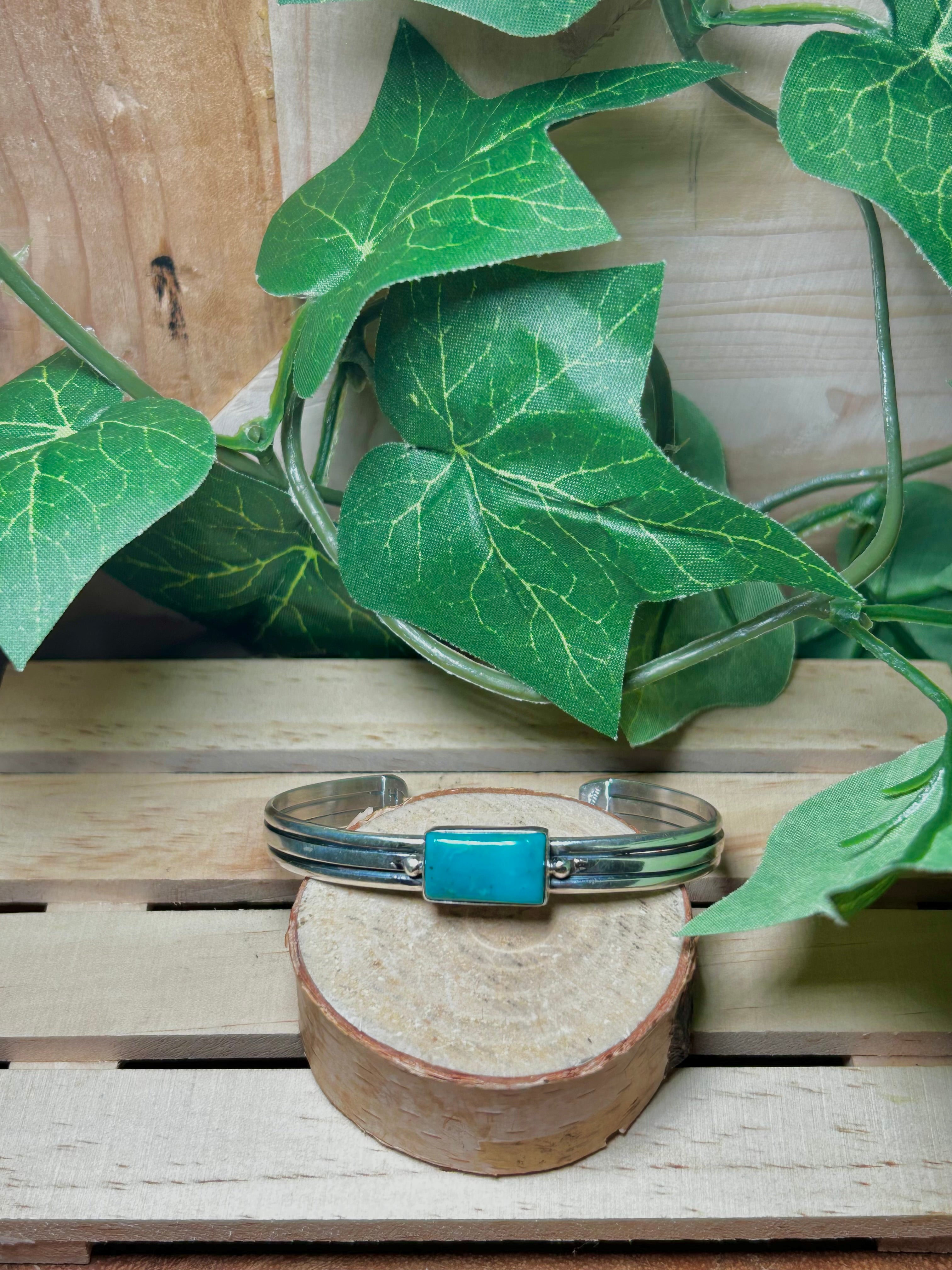 Navajo Made Kingman Turquoise & Sterling Silver Cuff Bracelet