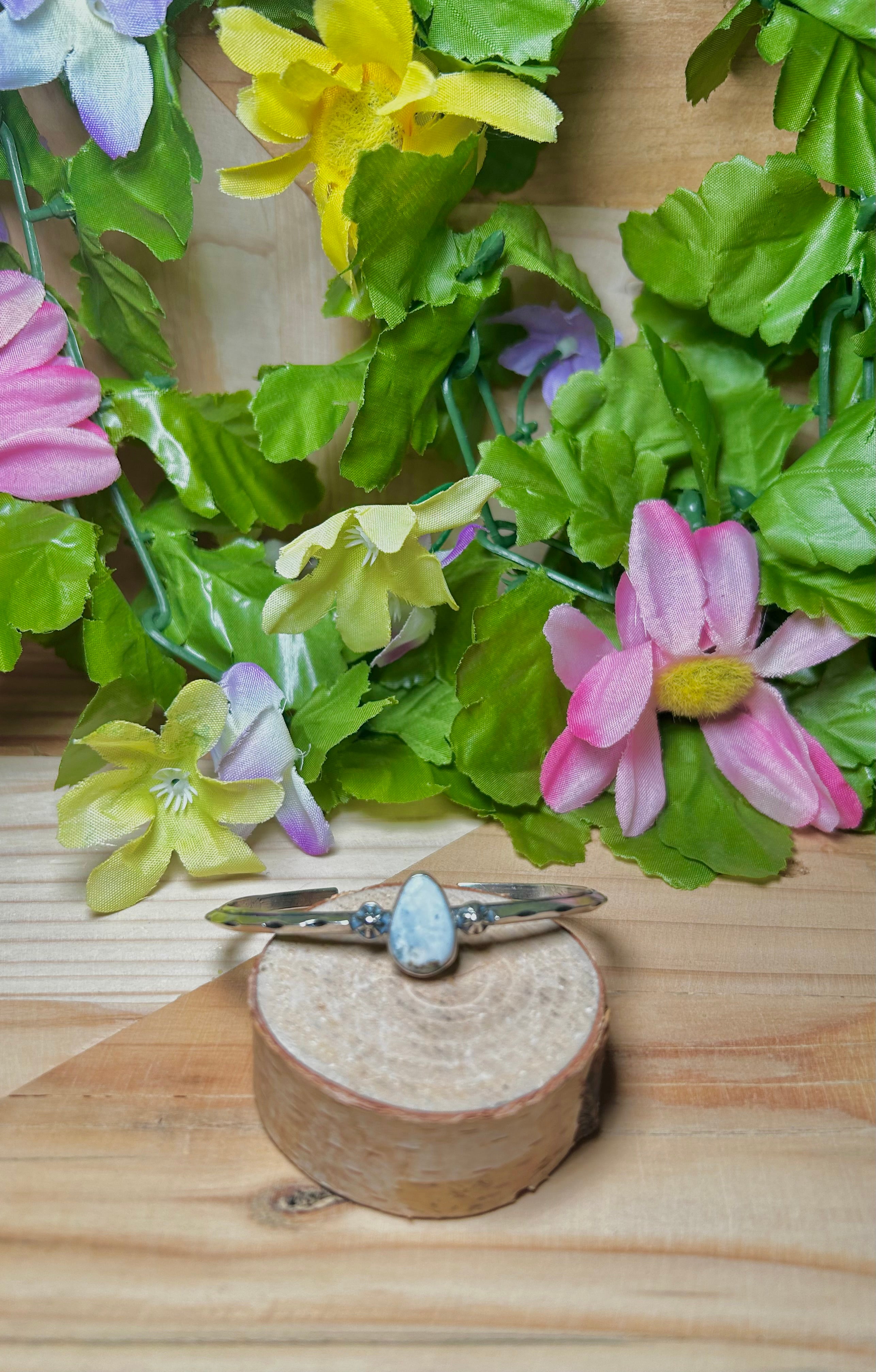 Navajo Made White Buffalo & Sterling Silver Cuff Bracelet. It measures 5/8 of an inch wide with an inside circumference of 5 5/8 inches and a gap of 7/8 of an inch. Signed by the artist and stamped sterling silver.