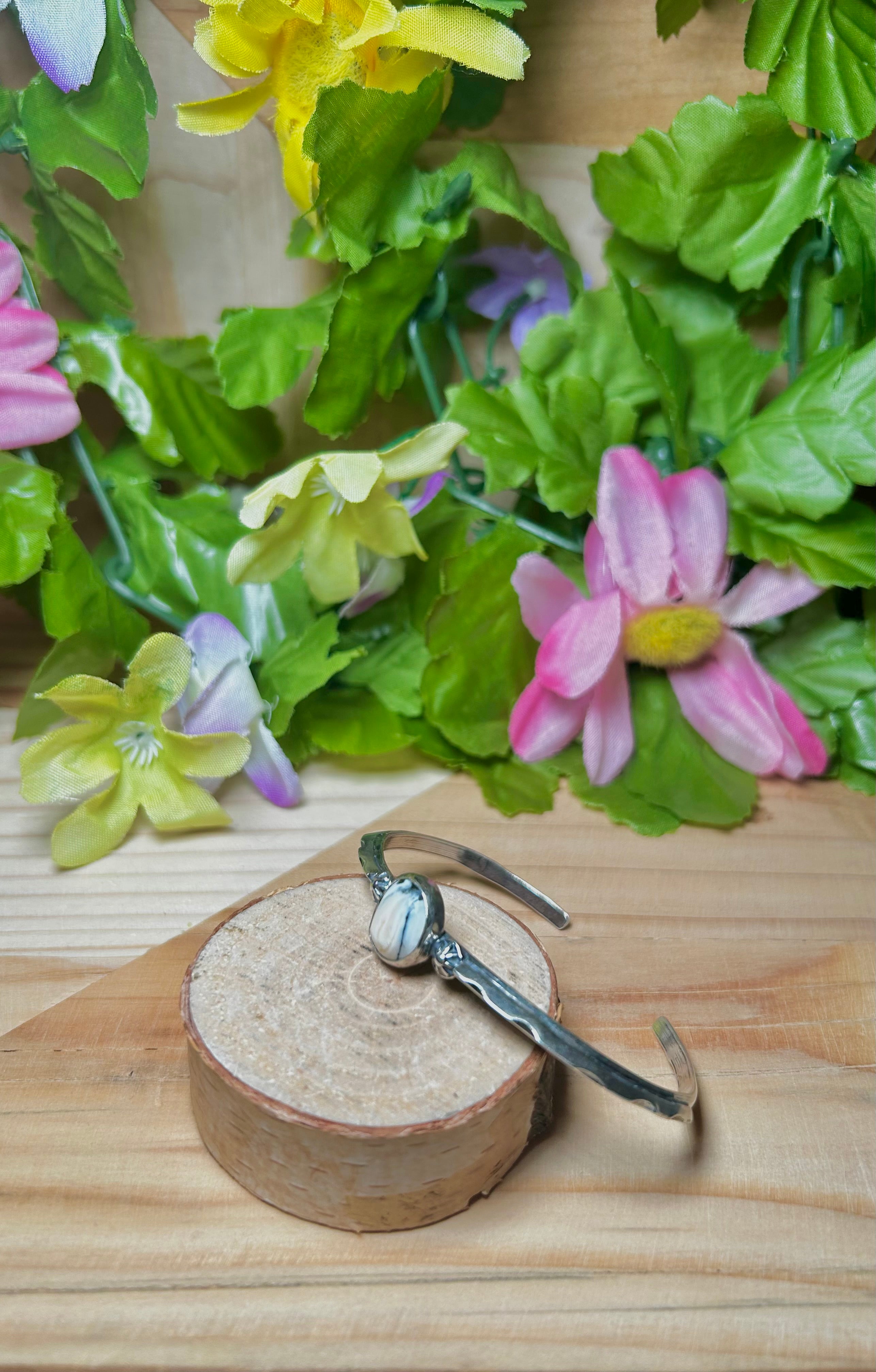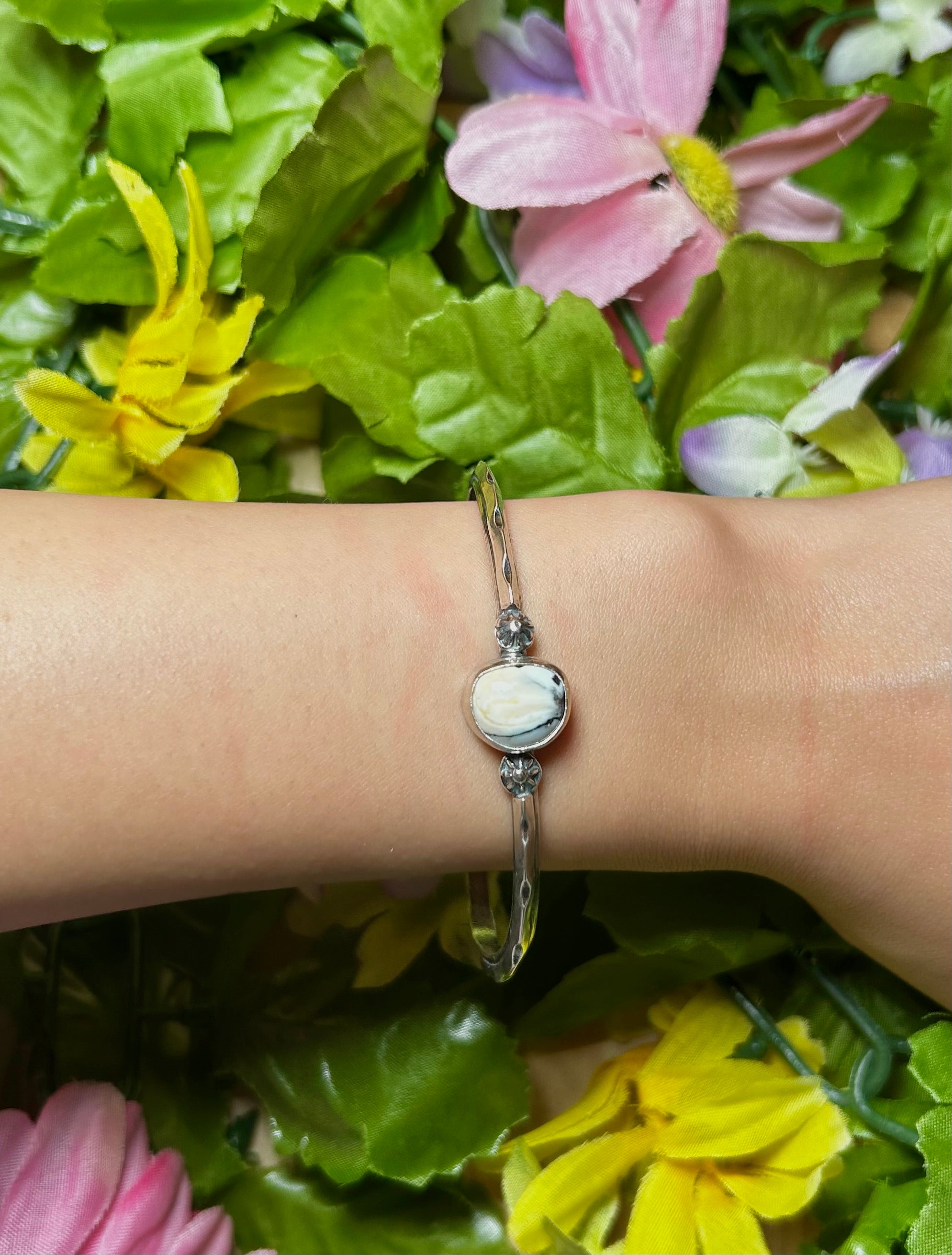 Navajo Made White Buffalo & Sterling Silver Cuff Bracelet
