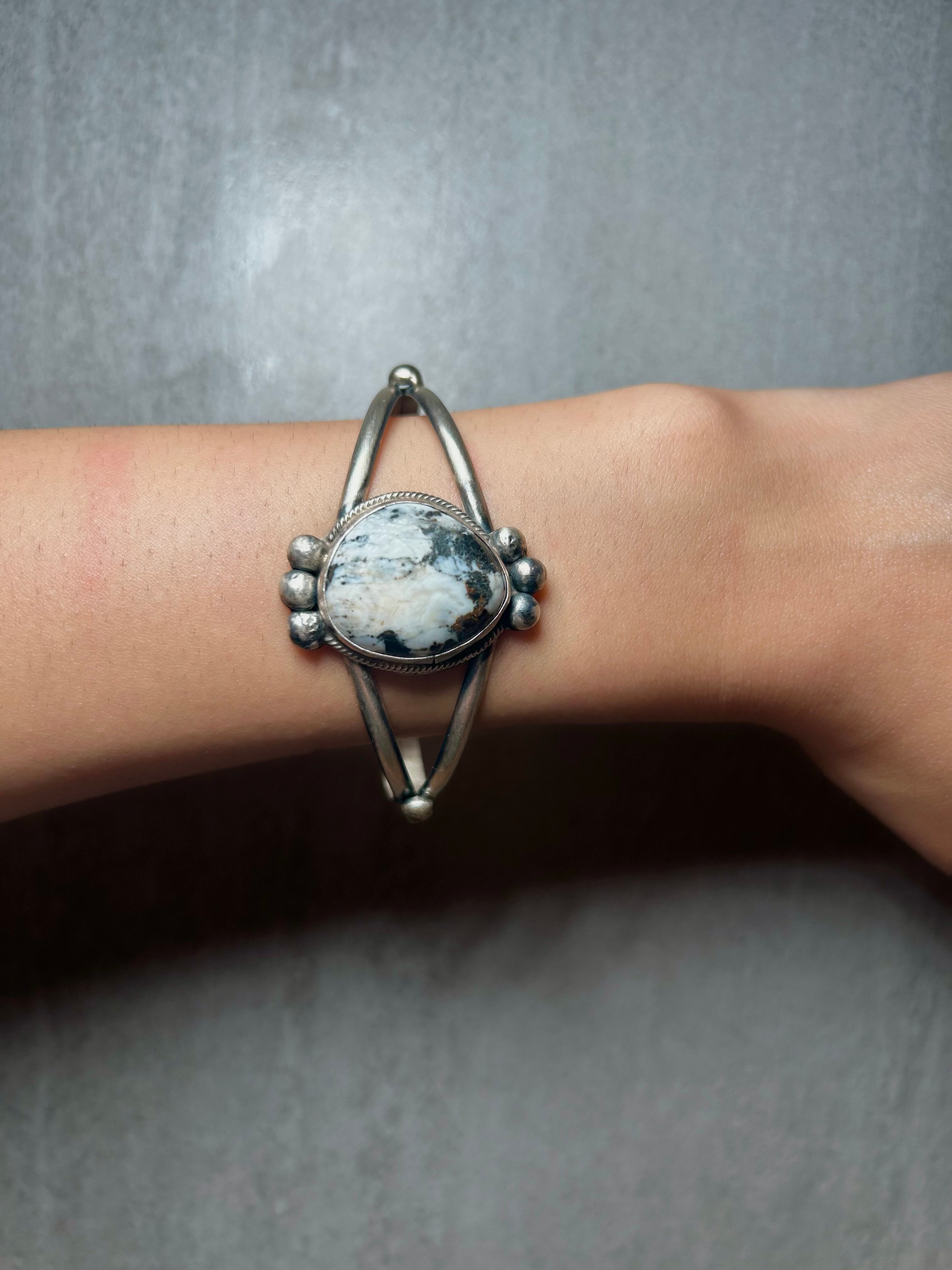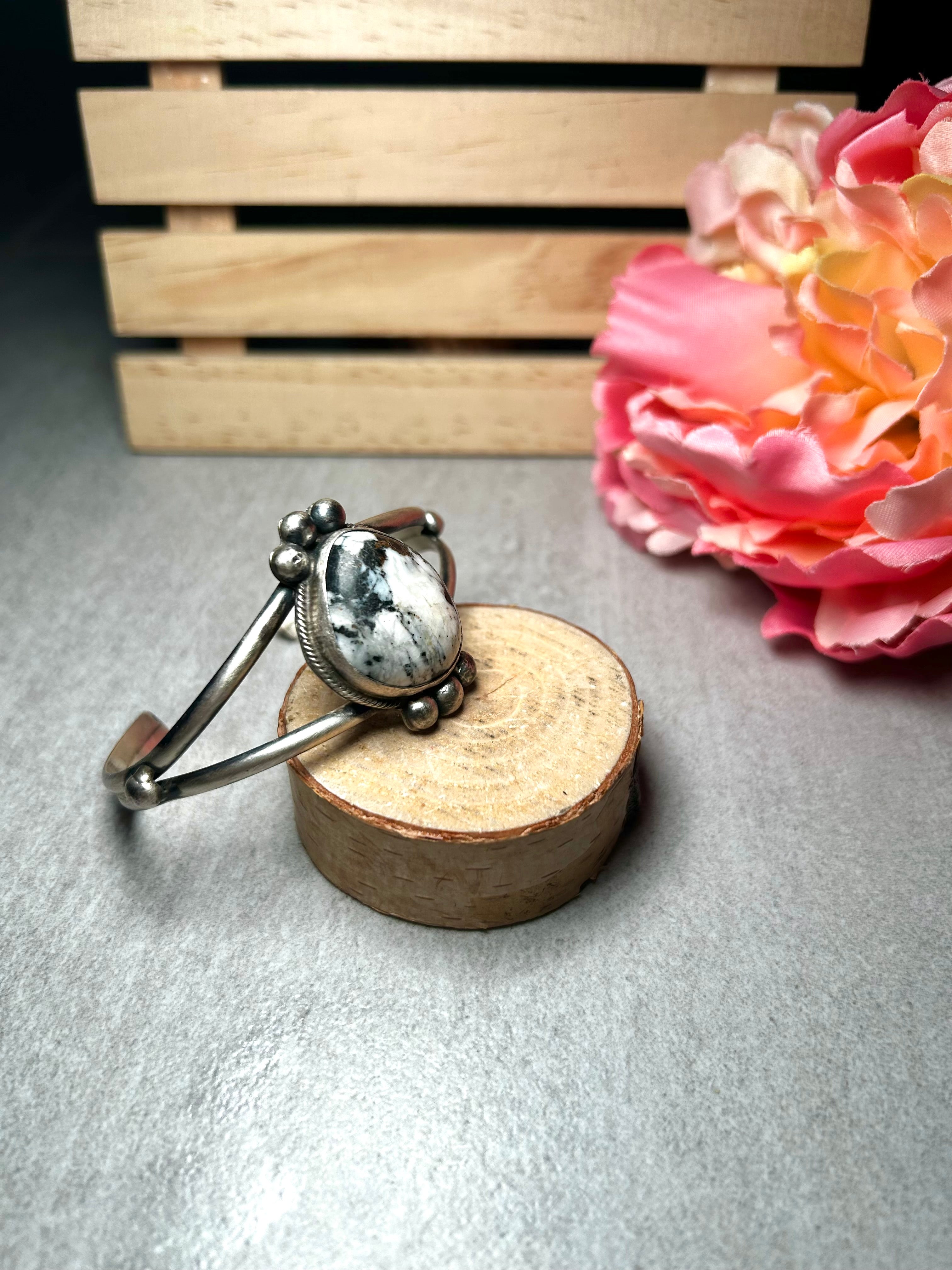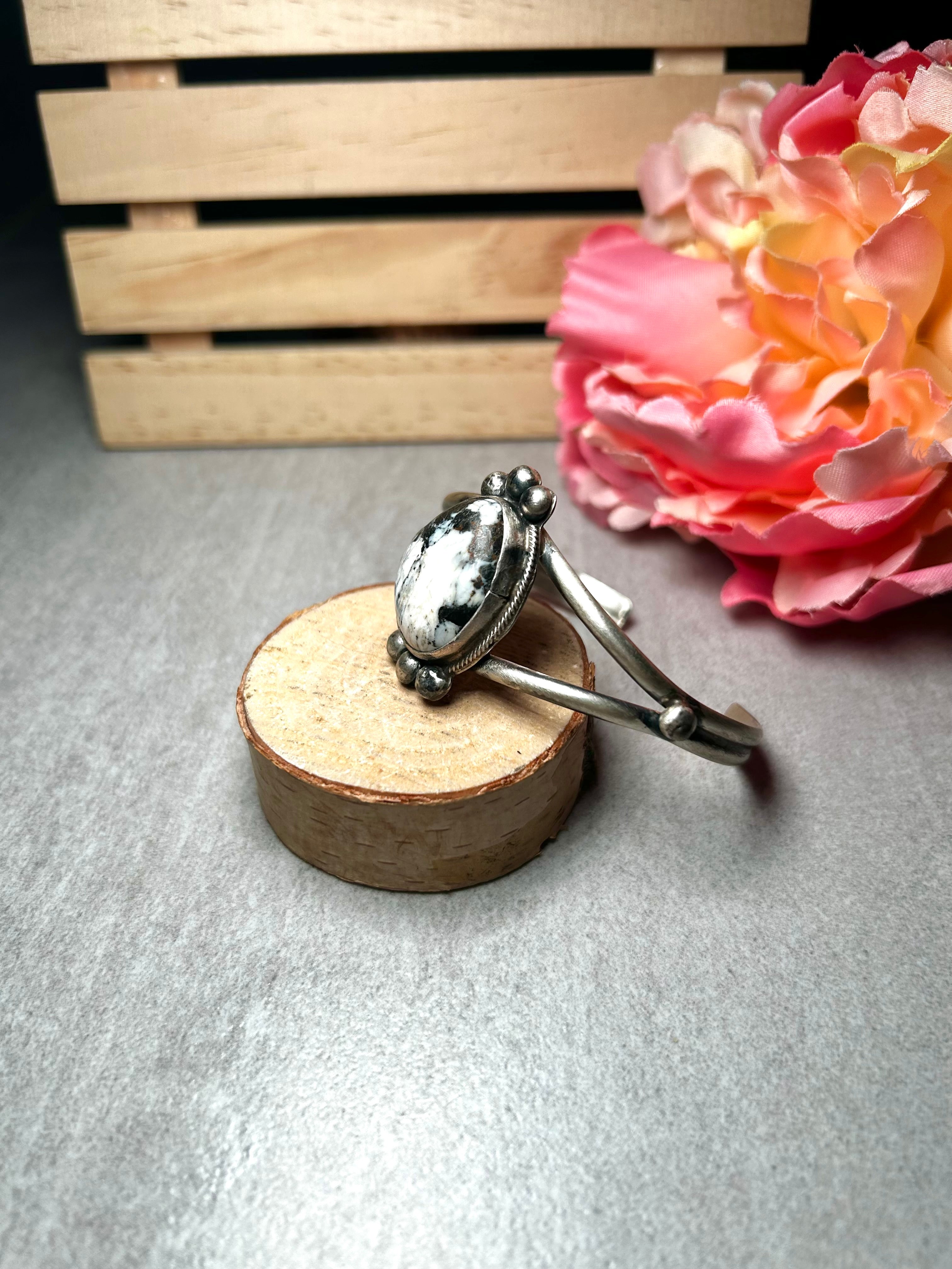 Navajo Made White Buffalo & Sterling Silver Cuff Bracelet