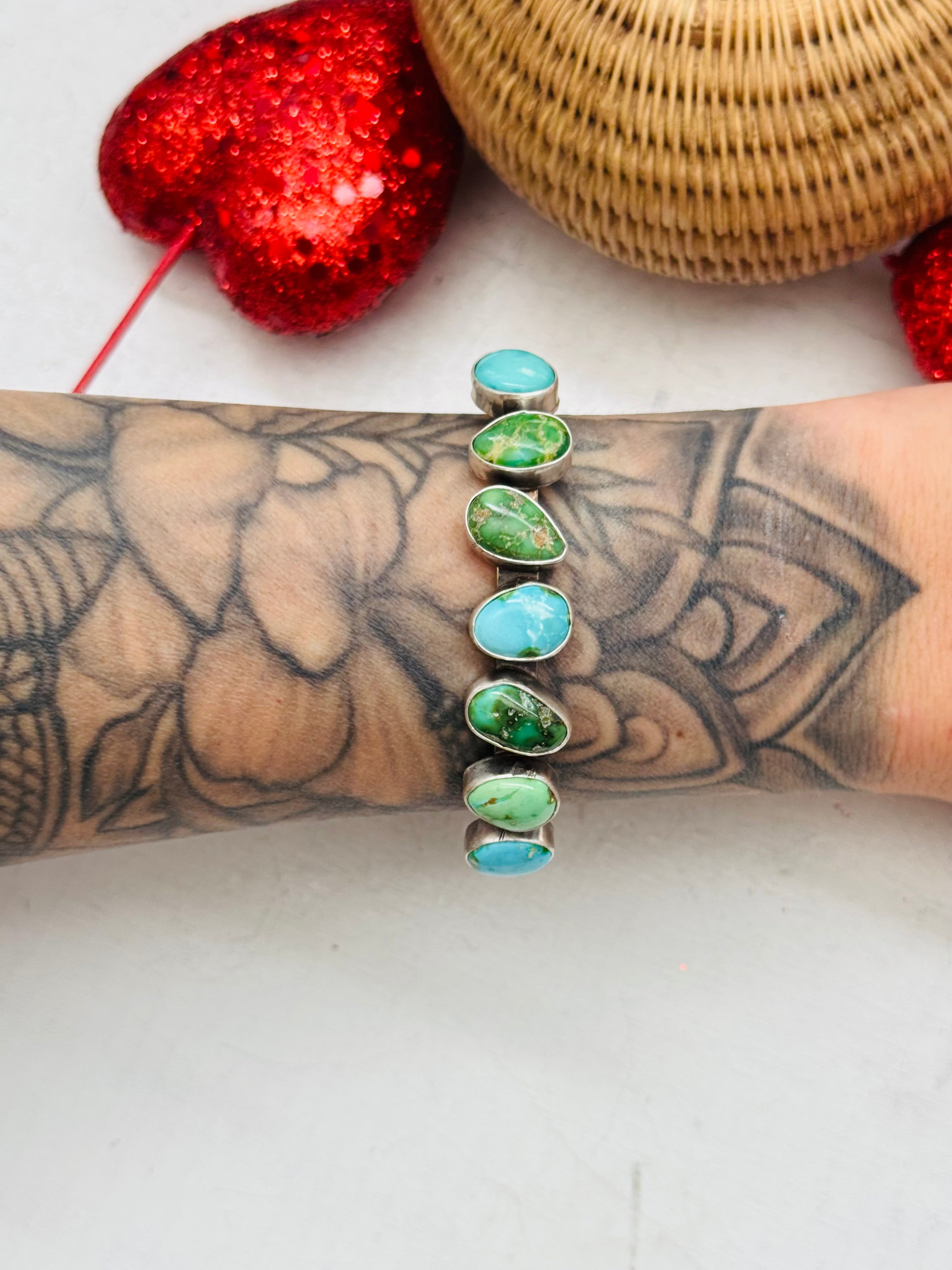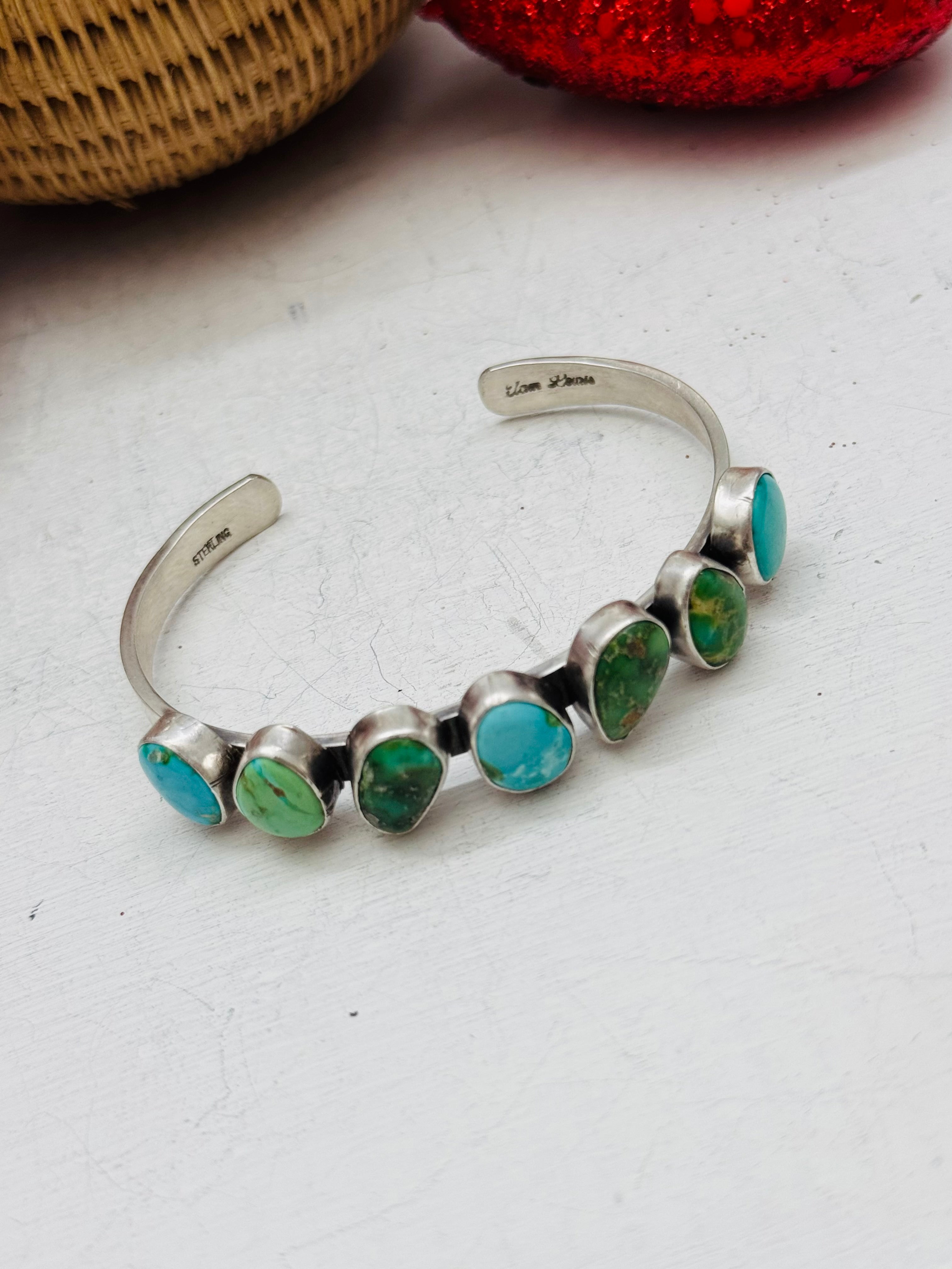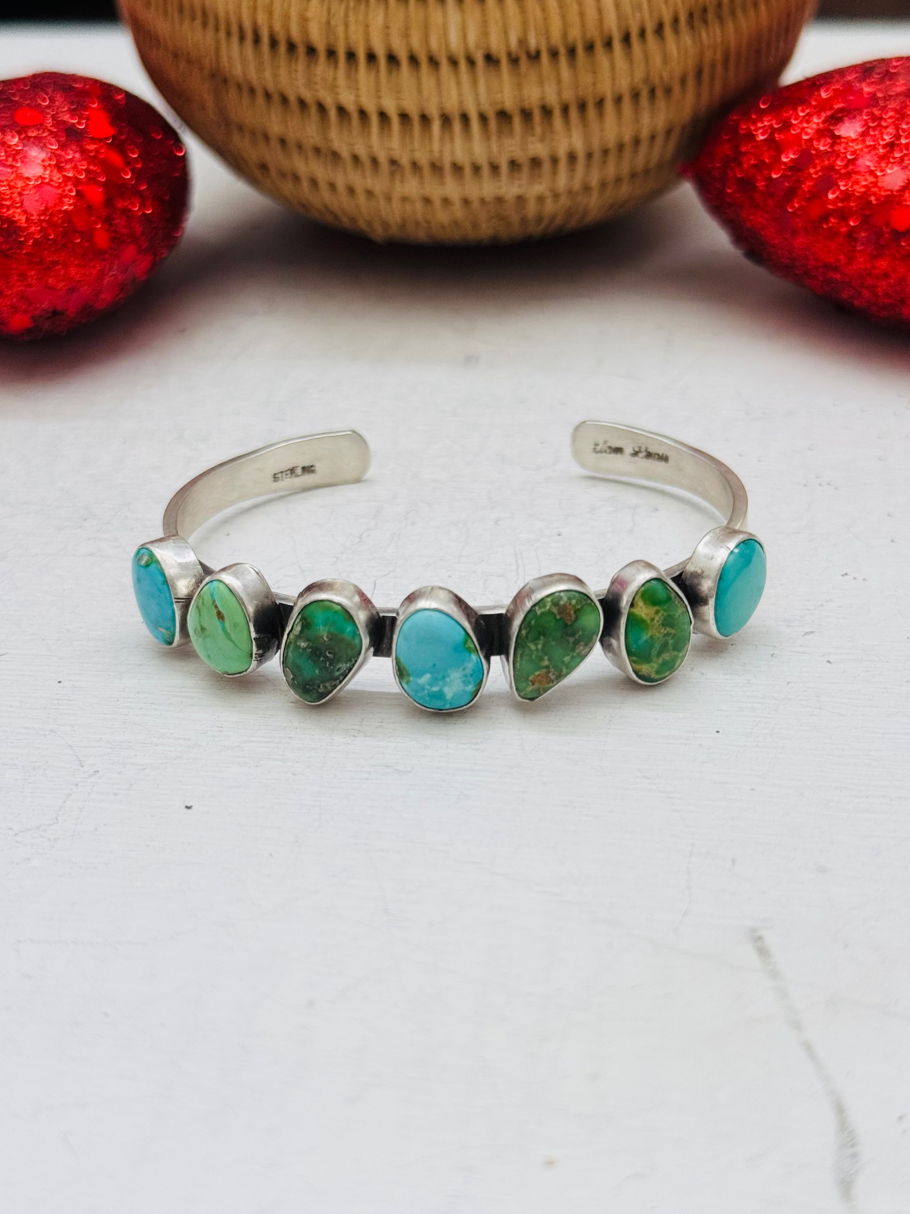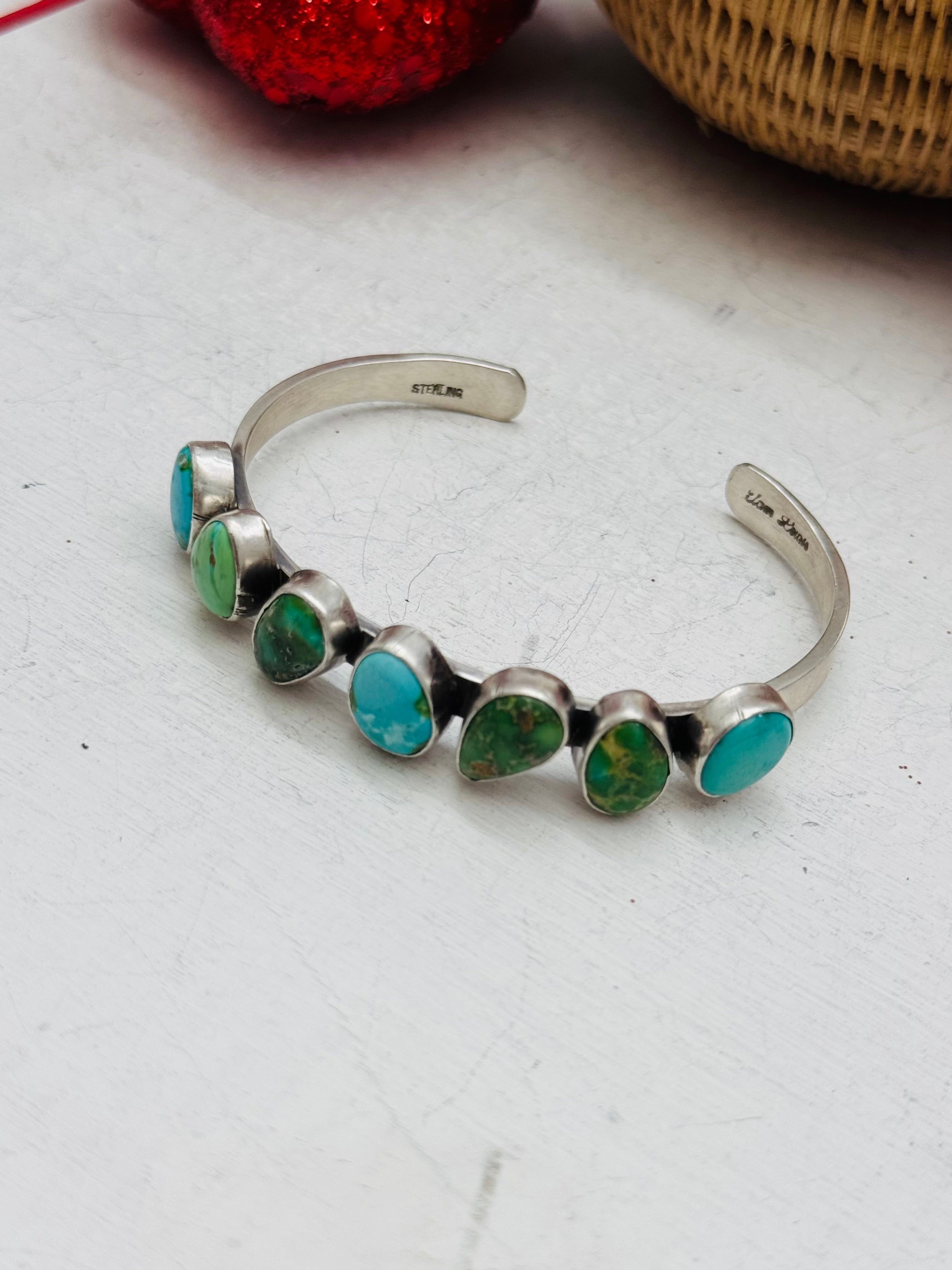 Navajo Made Sonoran Mountain Turquoise & Sterling Silver Cuff Bracelet