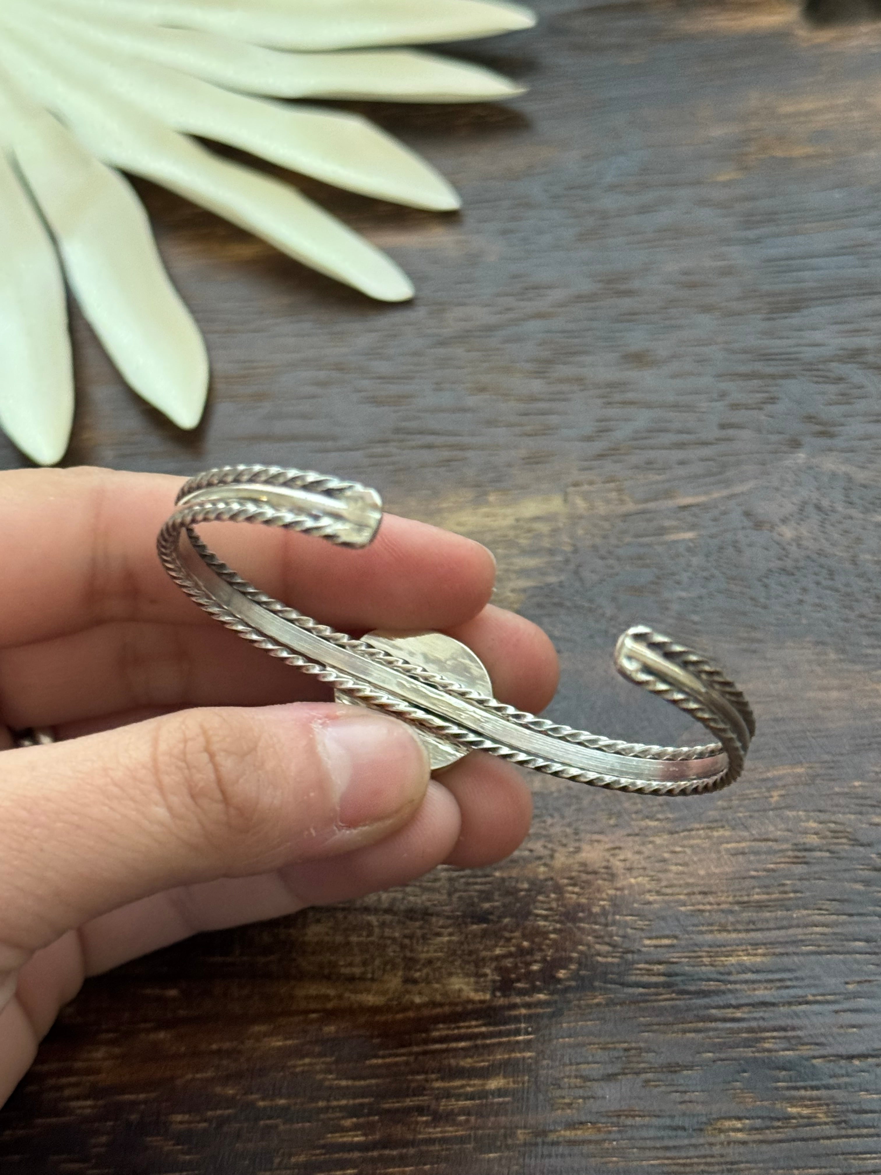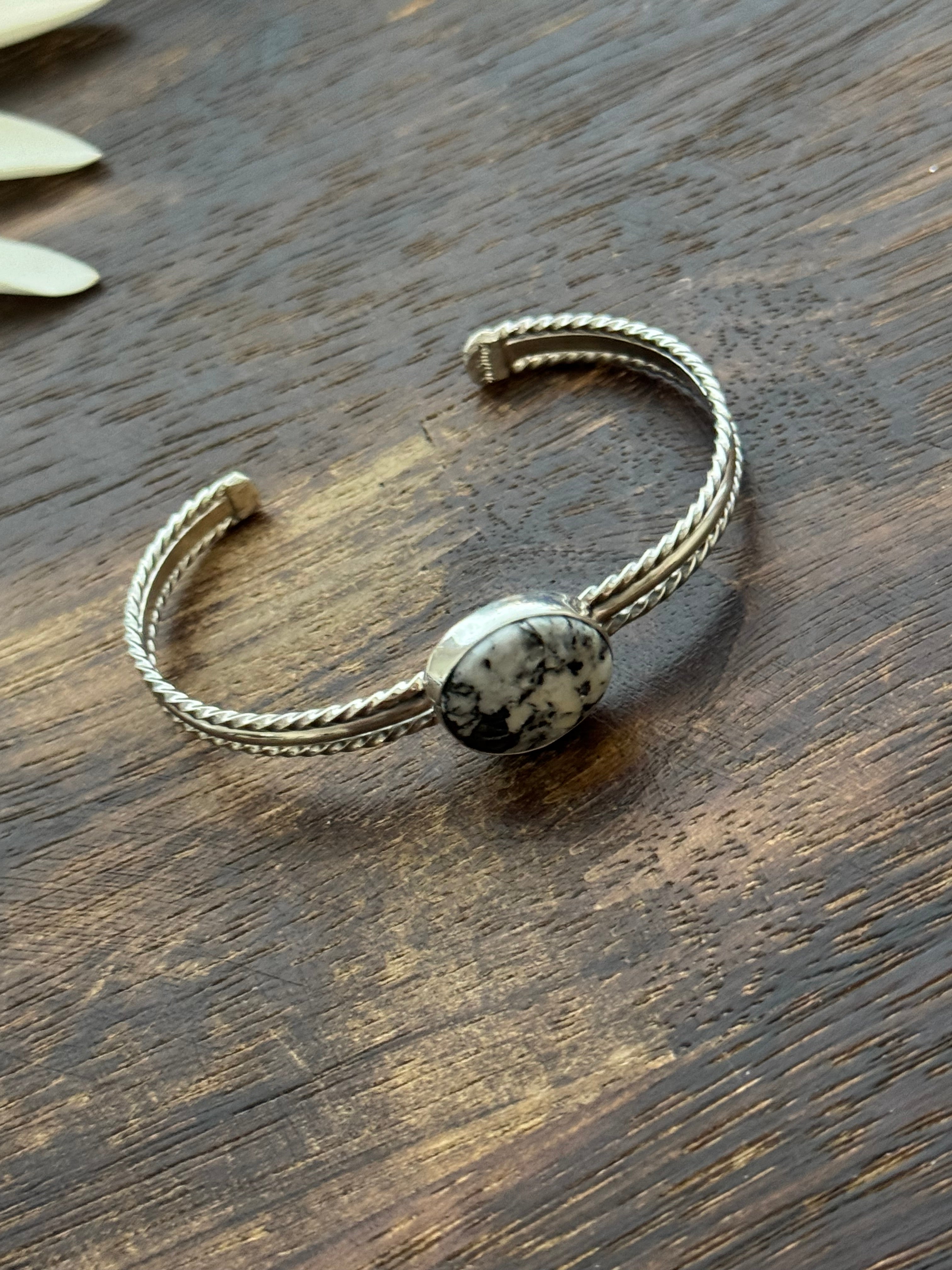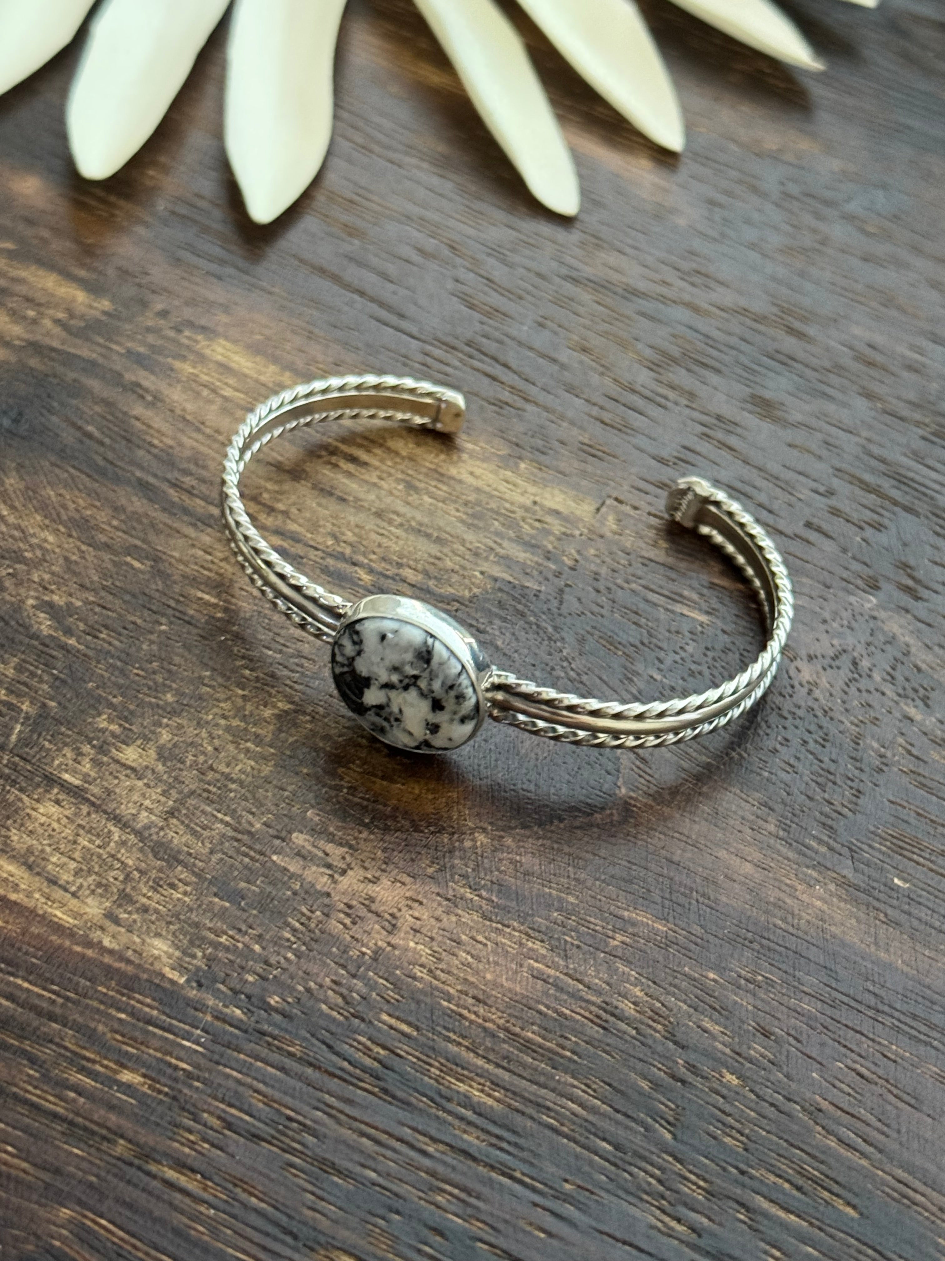 Navajo Made White Buffalo & Sterling Silver Cuff Bracelet