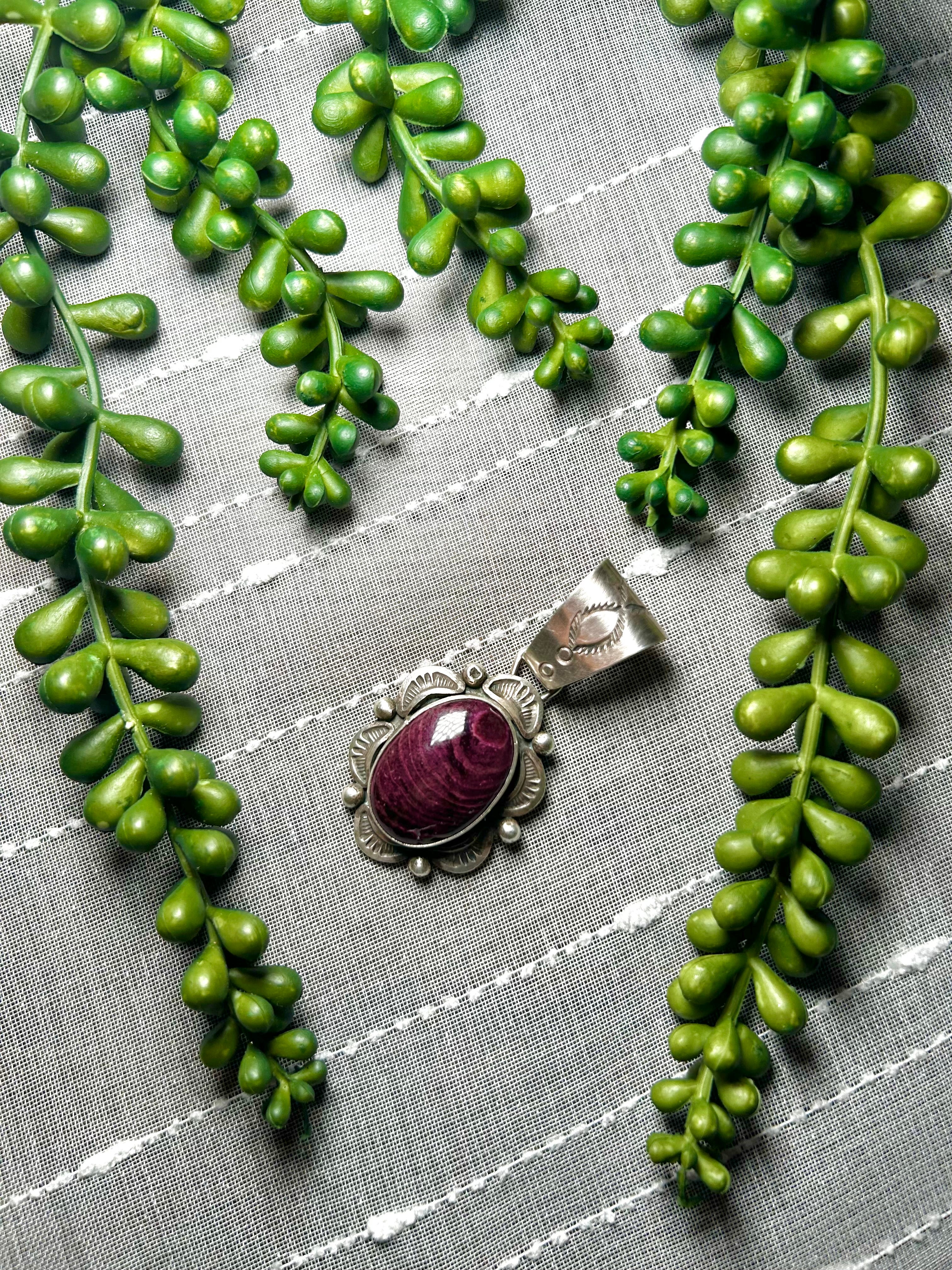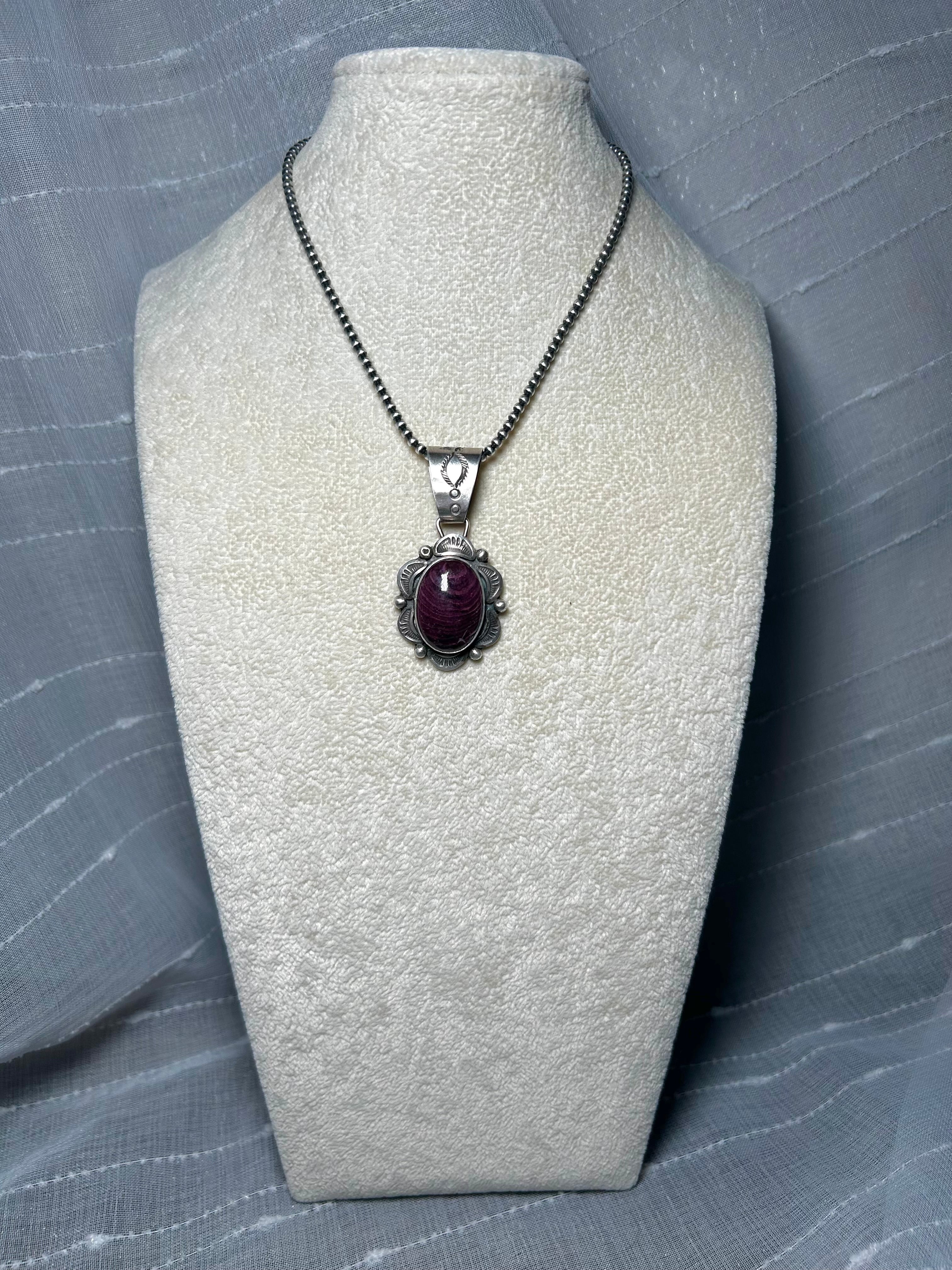 Navajo Made Purple Spiny Oyster & Sterling Silver Pendant