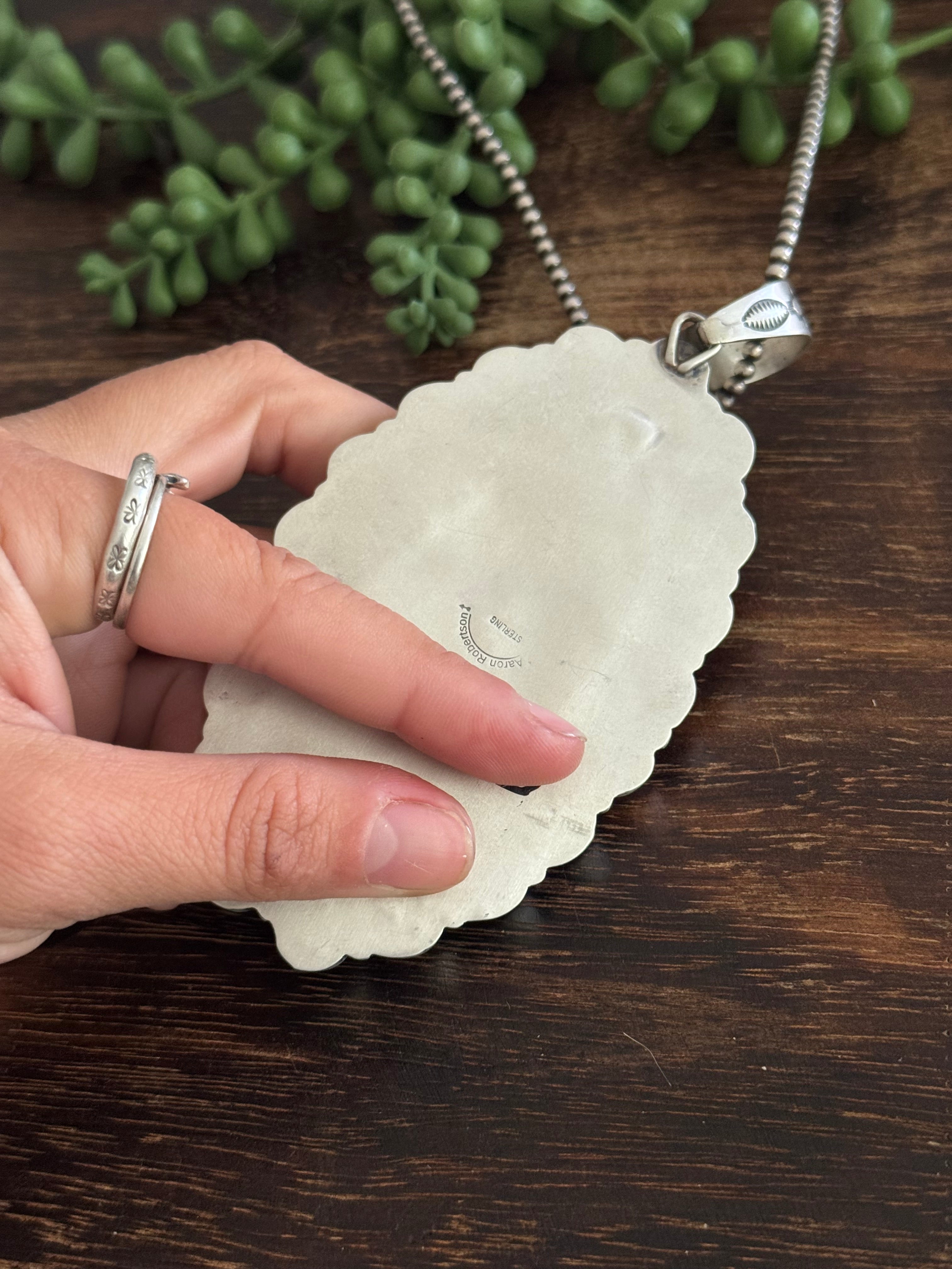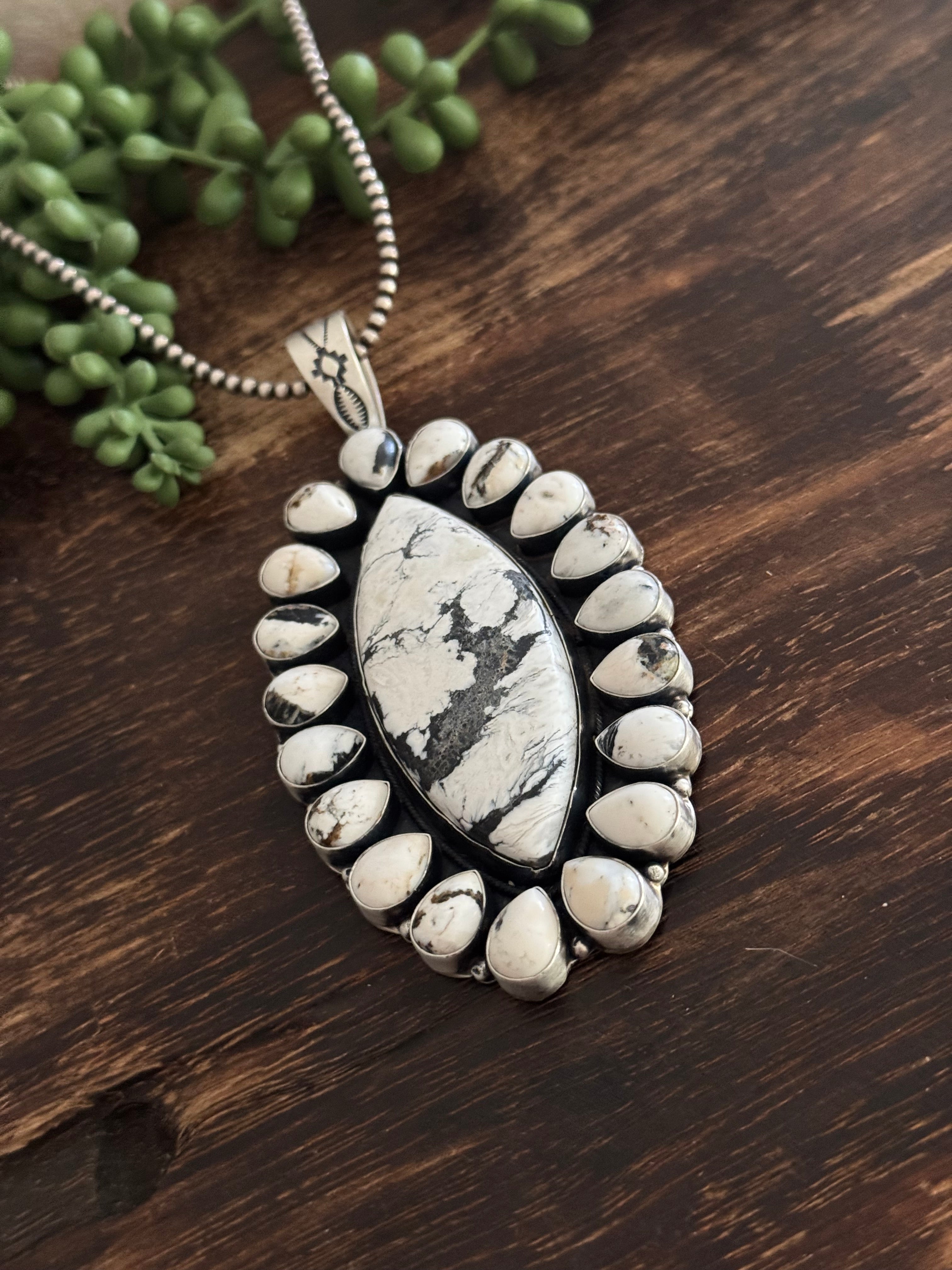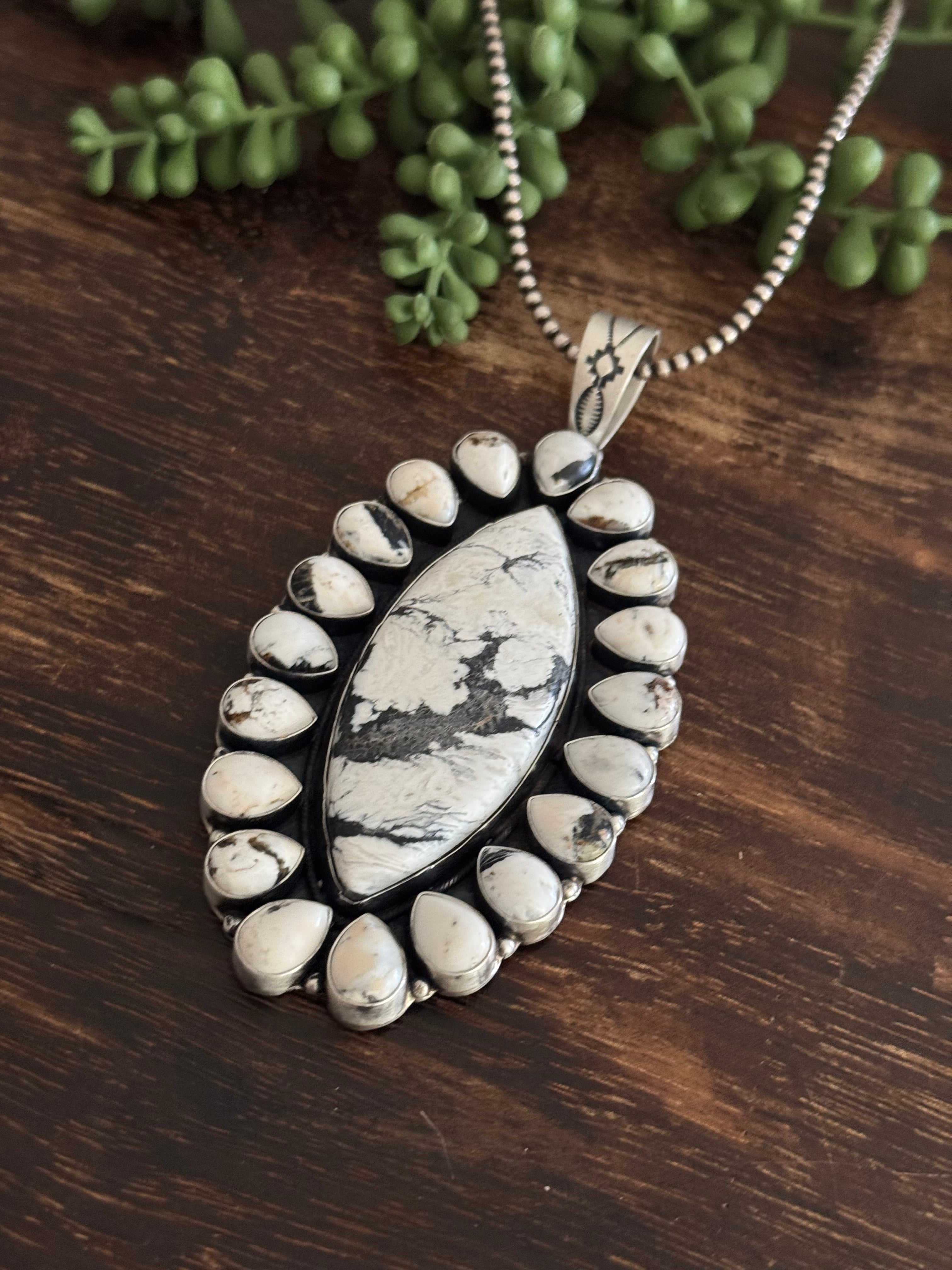 Aaron Robertson White Buffalo & Sterling Silver Cluster Pendant. It measures 4 7/8 inches long and 2 3/8 inches wide. Pendant Only! Signed by the artist and stamped sterling silver.