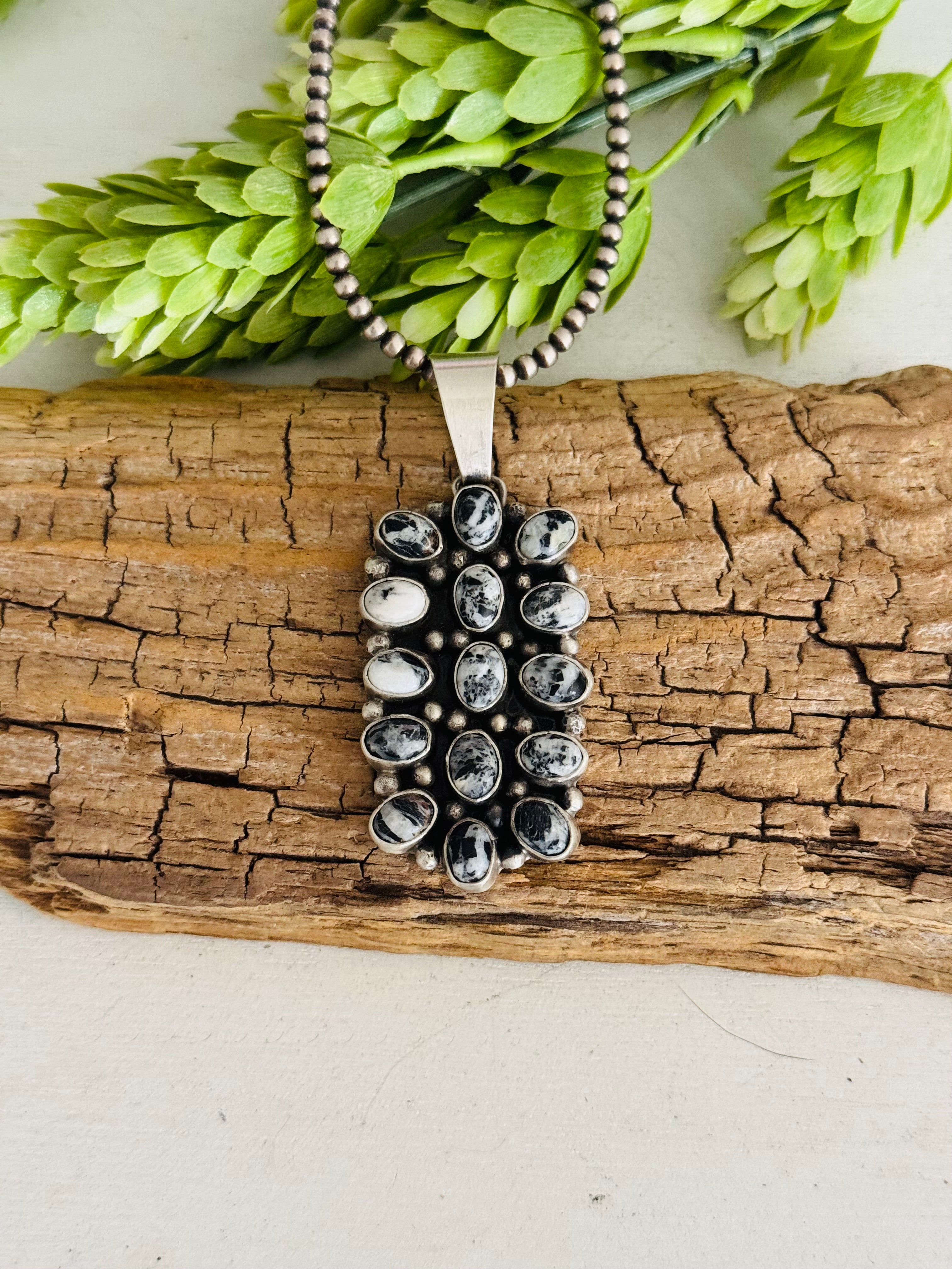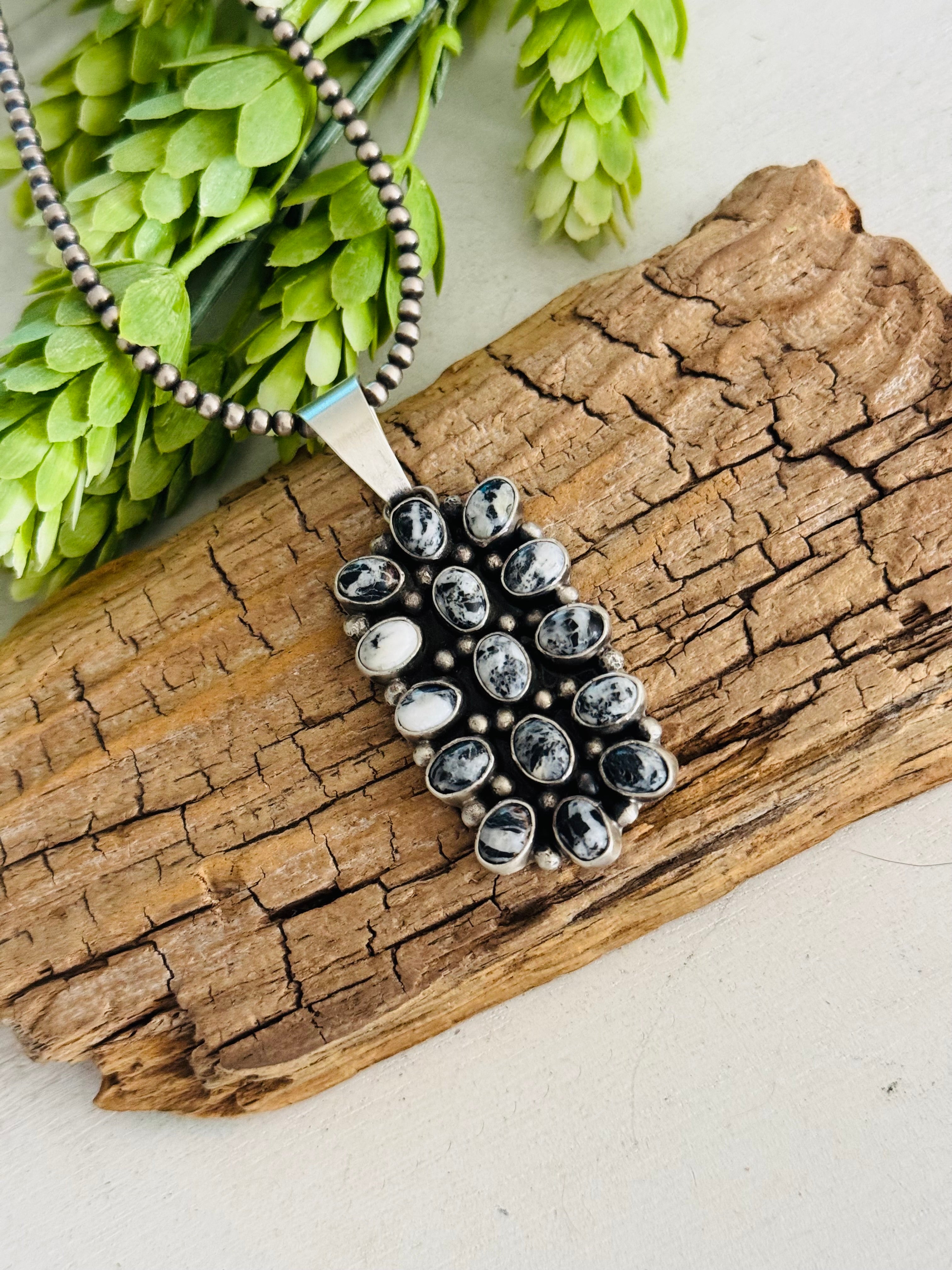 Navajo Made White Buffalo & Sterling Silver Cluster Pendant