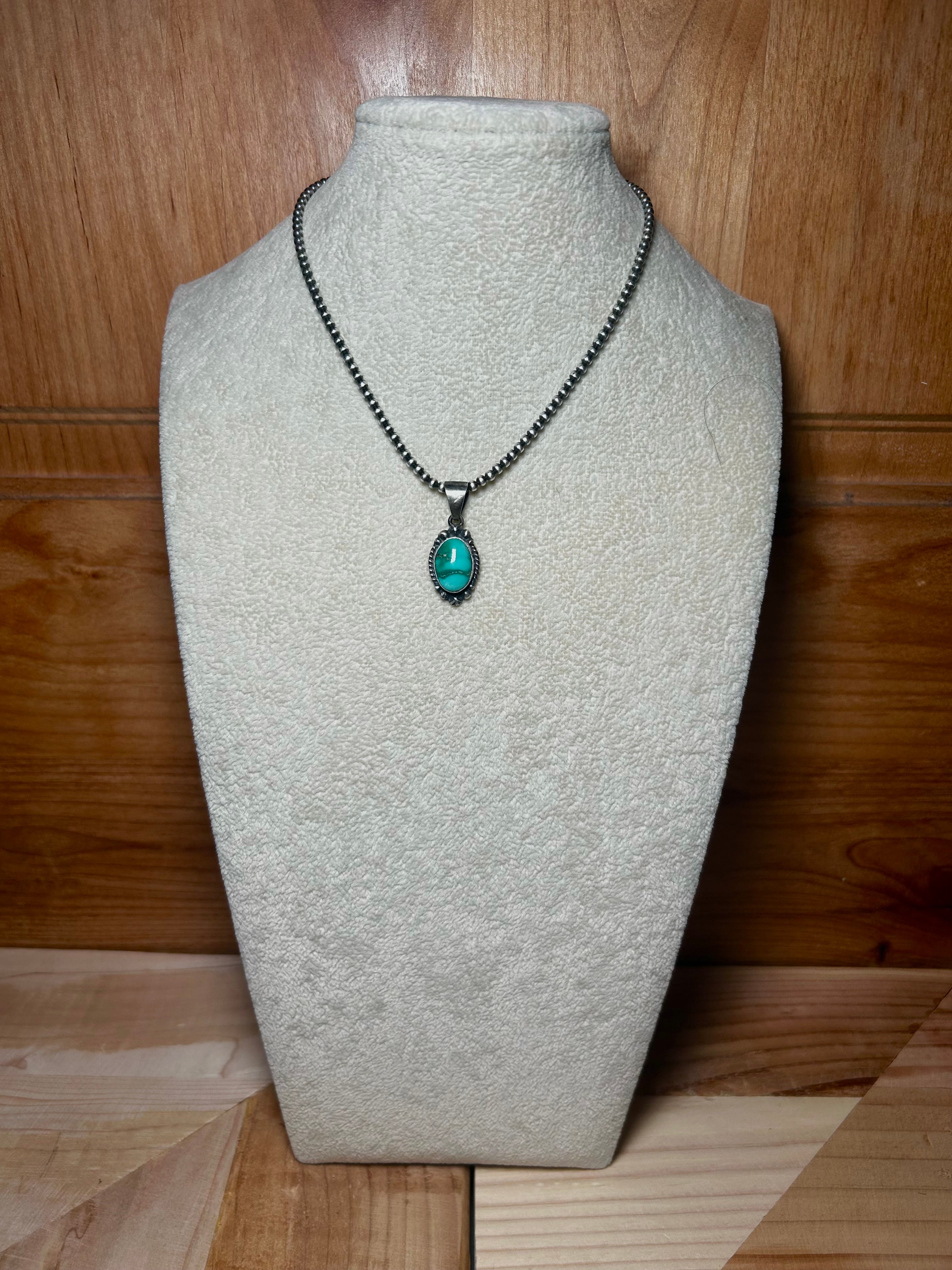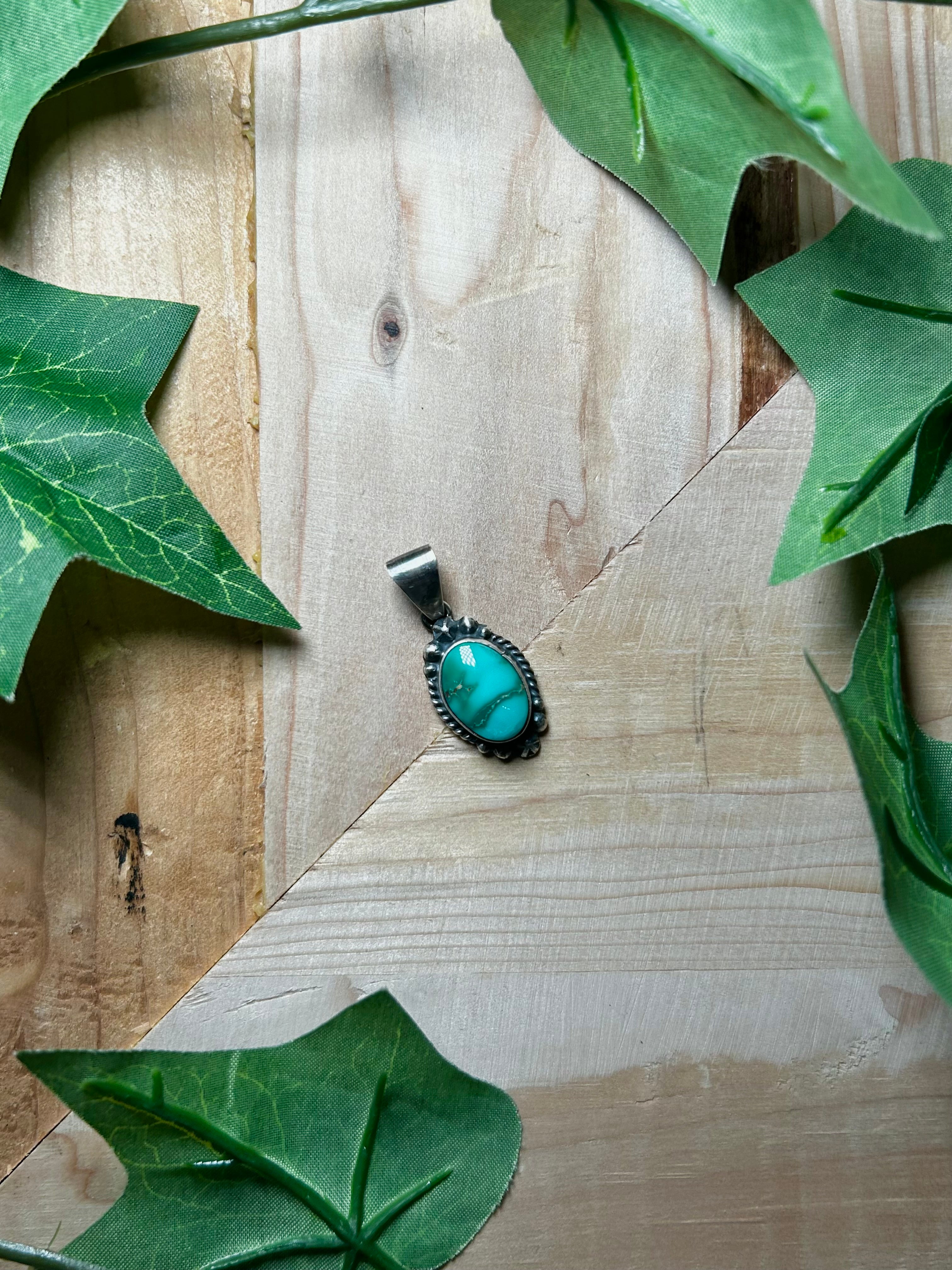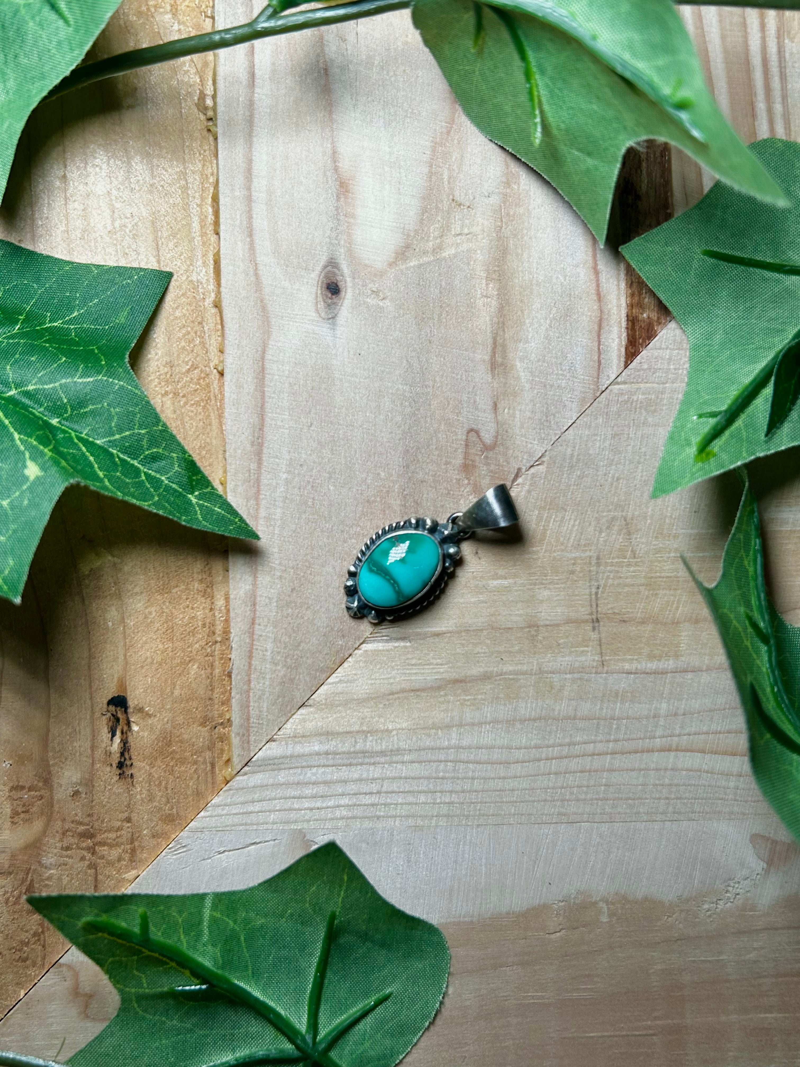 Navajo Made Emerald Valley Turquoise & Sterling Silver Pendant