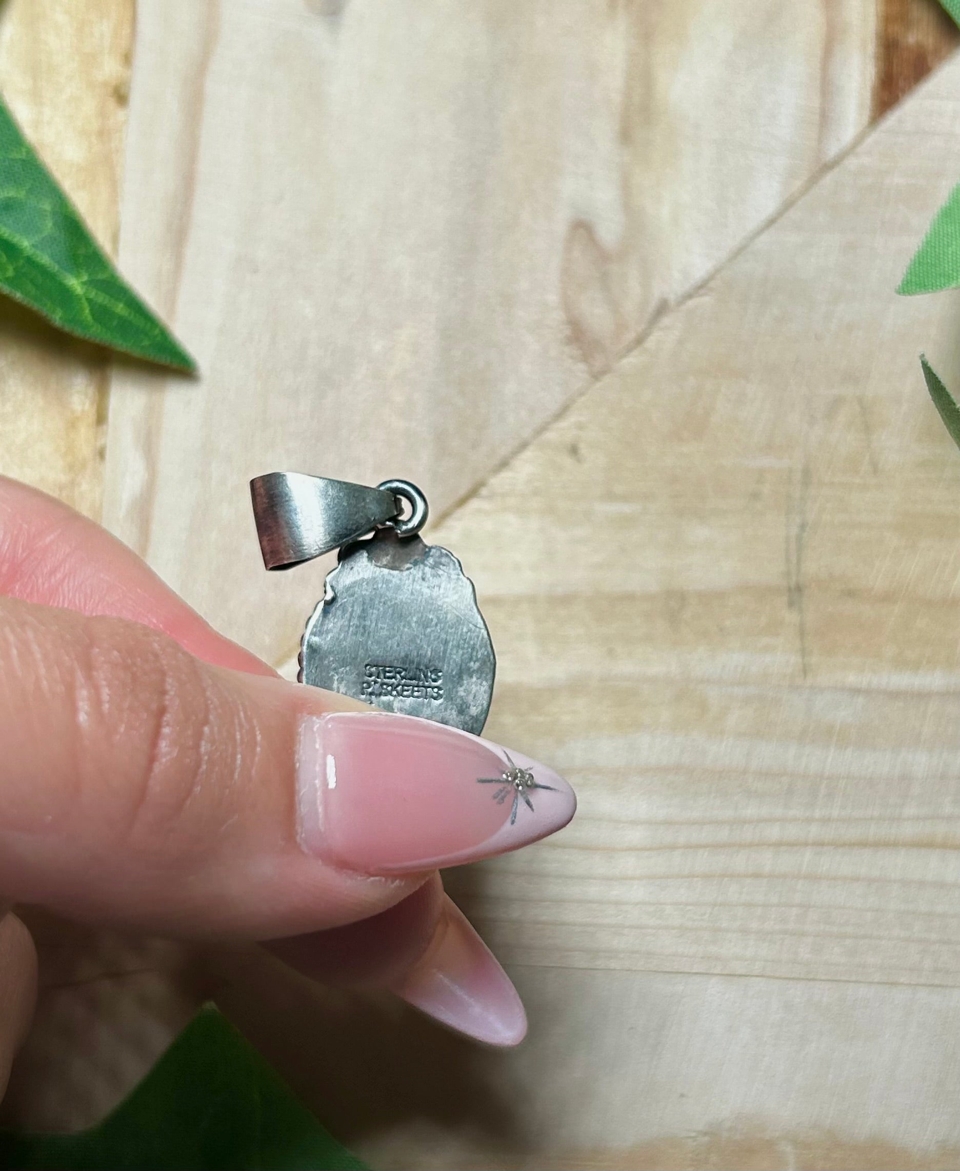 Navajo Made Emerald Valley Turquoise & Sterling Silver Pendant. It measures 1 3/8 inches long and 5/8 of an inch wide. Pendant Only!! Signed by the artist and stamped sterling silver.