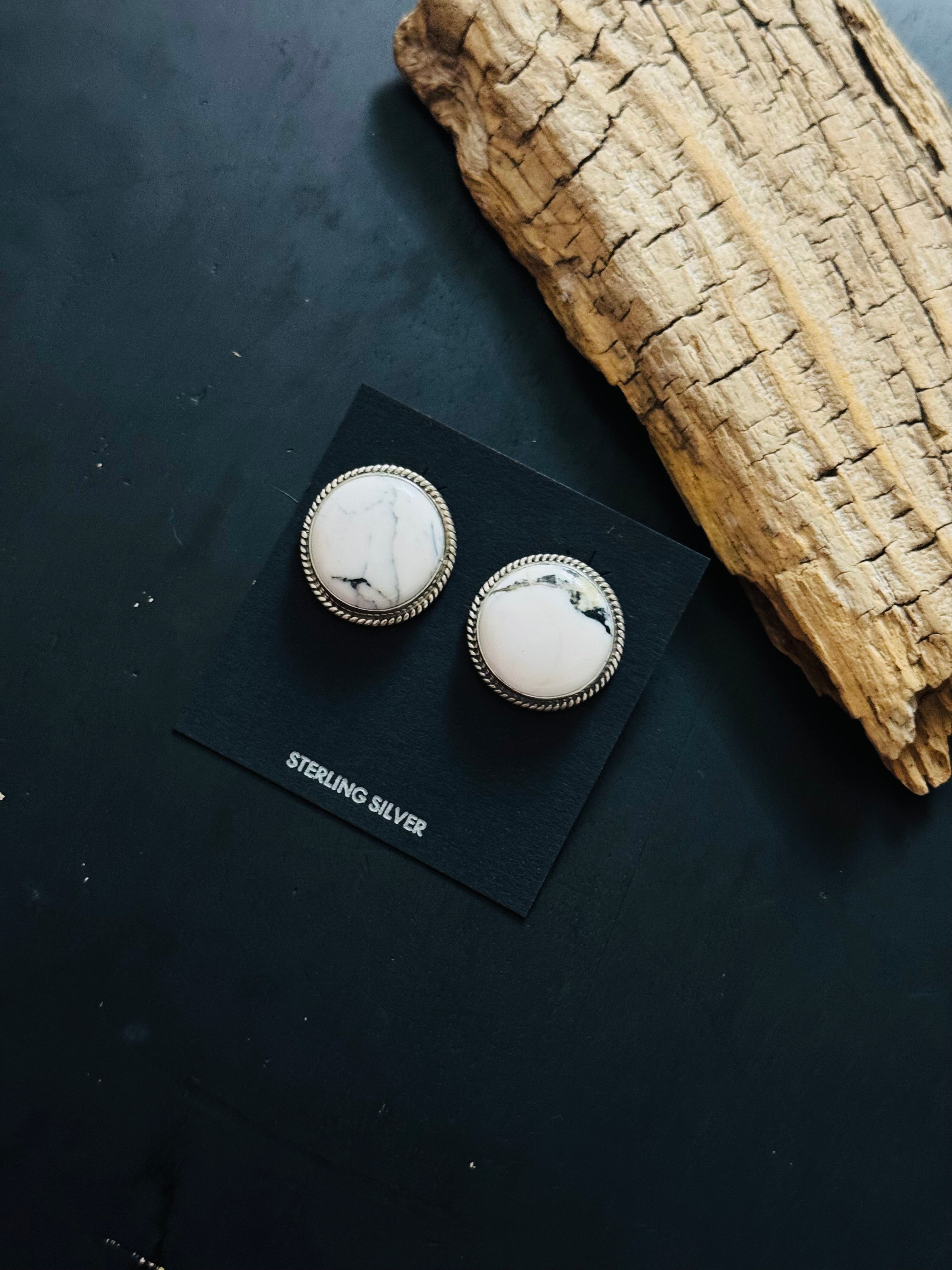 Navajo Made White Buffalo & Sterling Silver Post Earrings