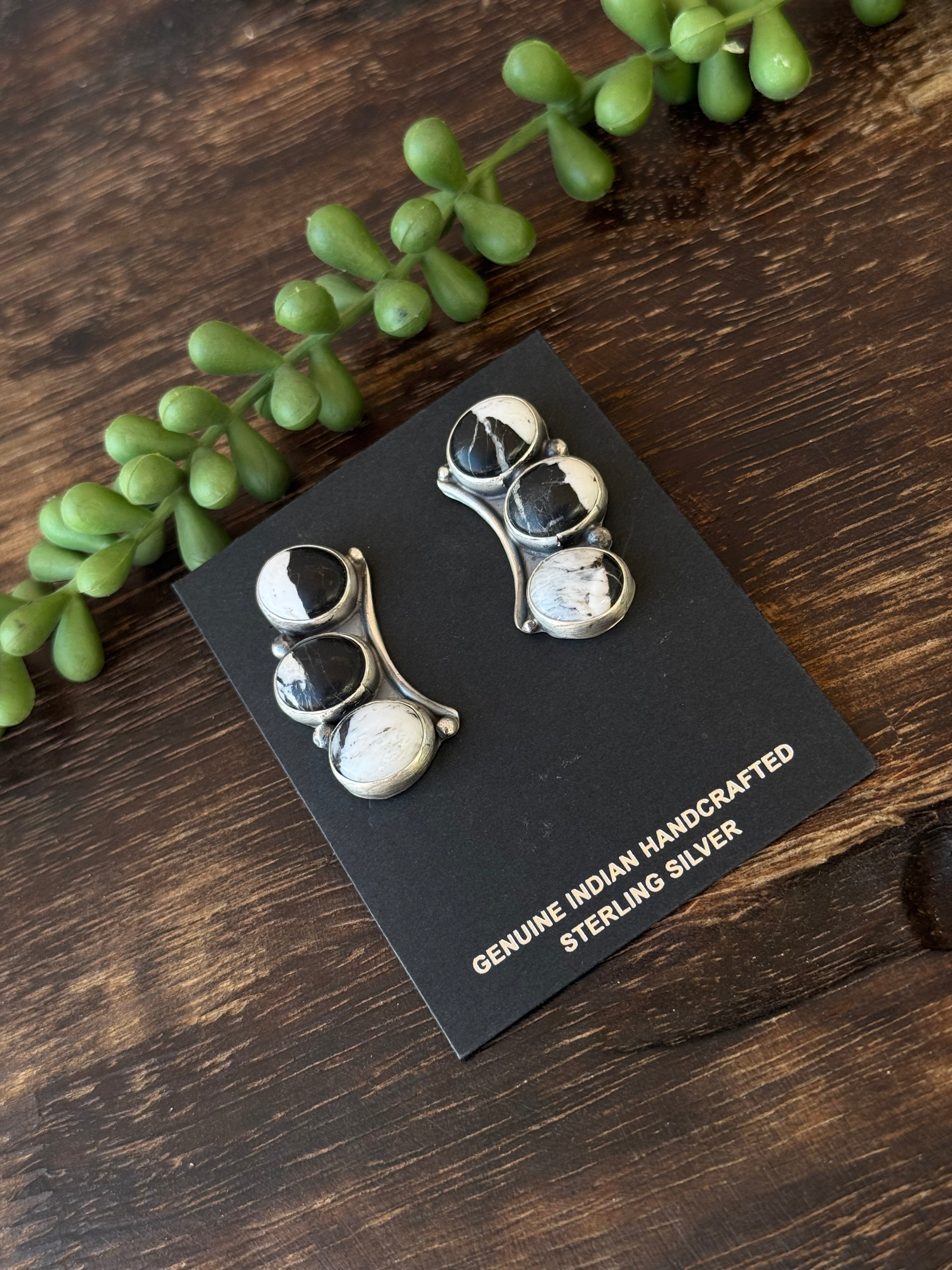 Navajo Made White Buffalo & Sterling Silver Post Earrings