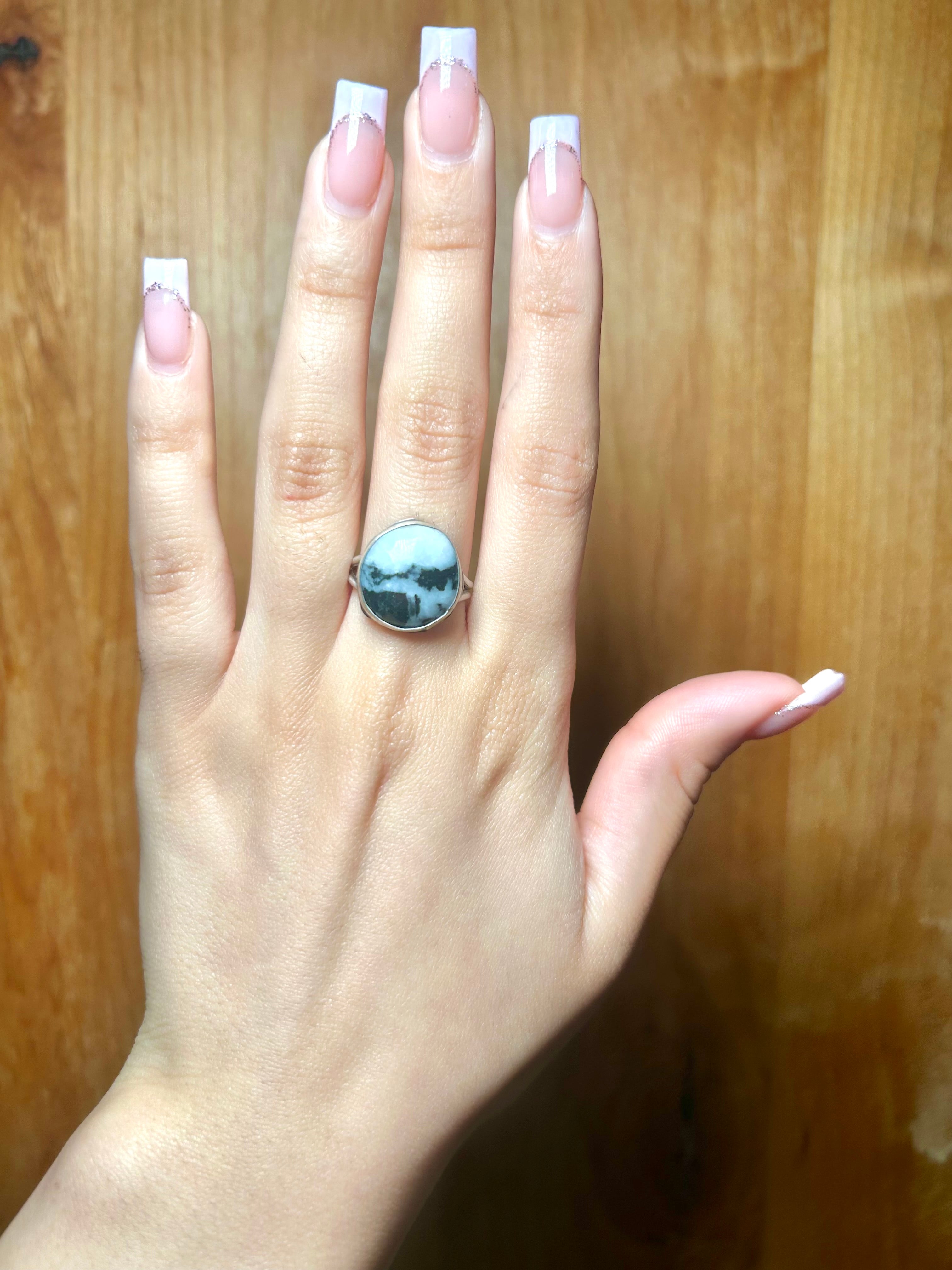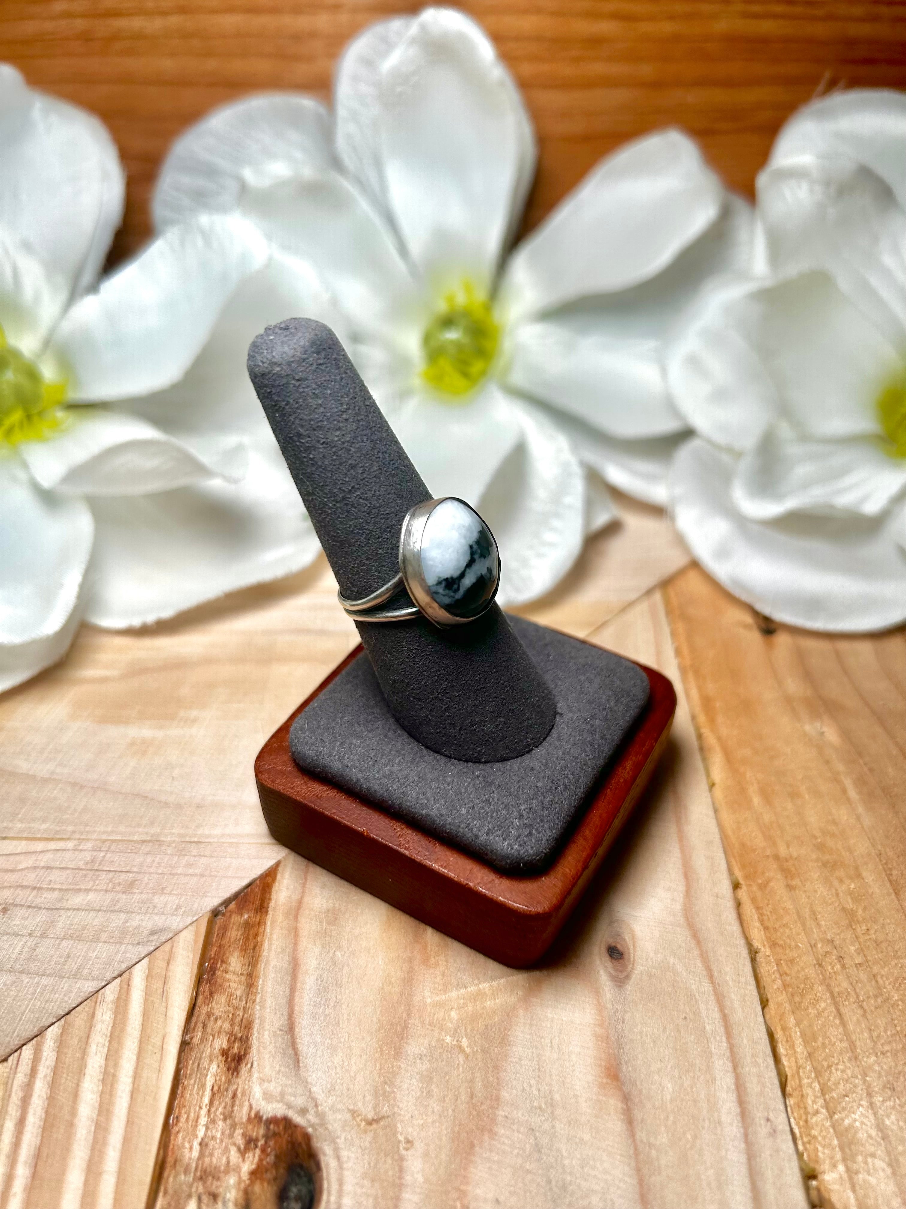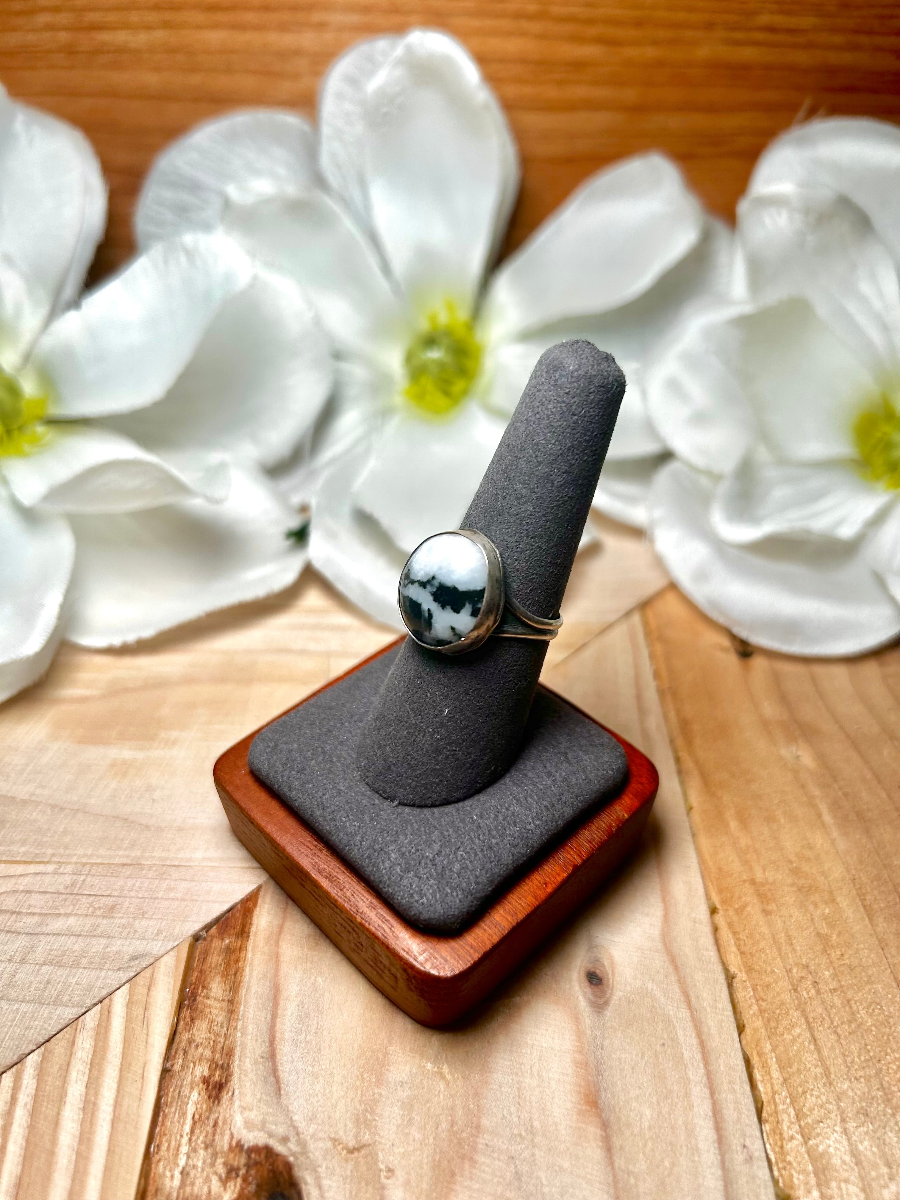 Navajo Made White Buffalo & Sterling Silver Ring Size 8.25
