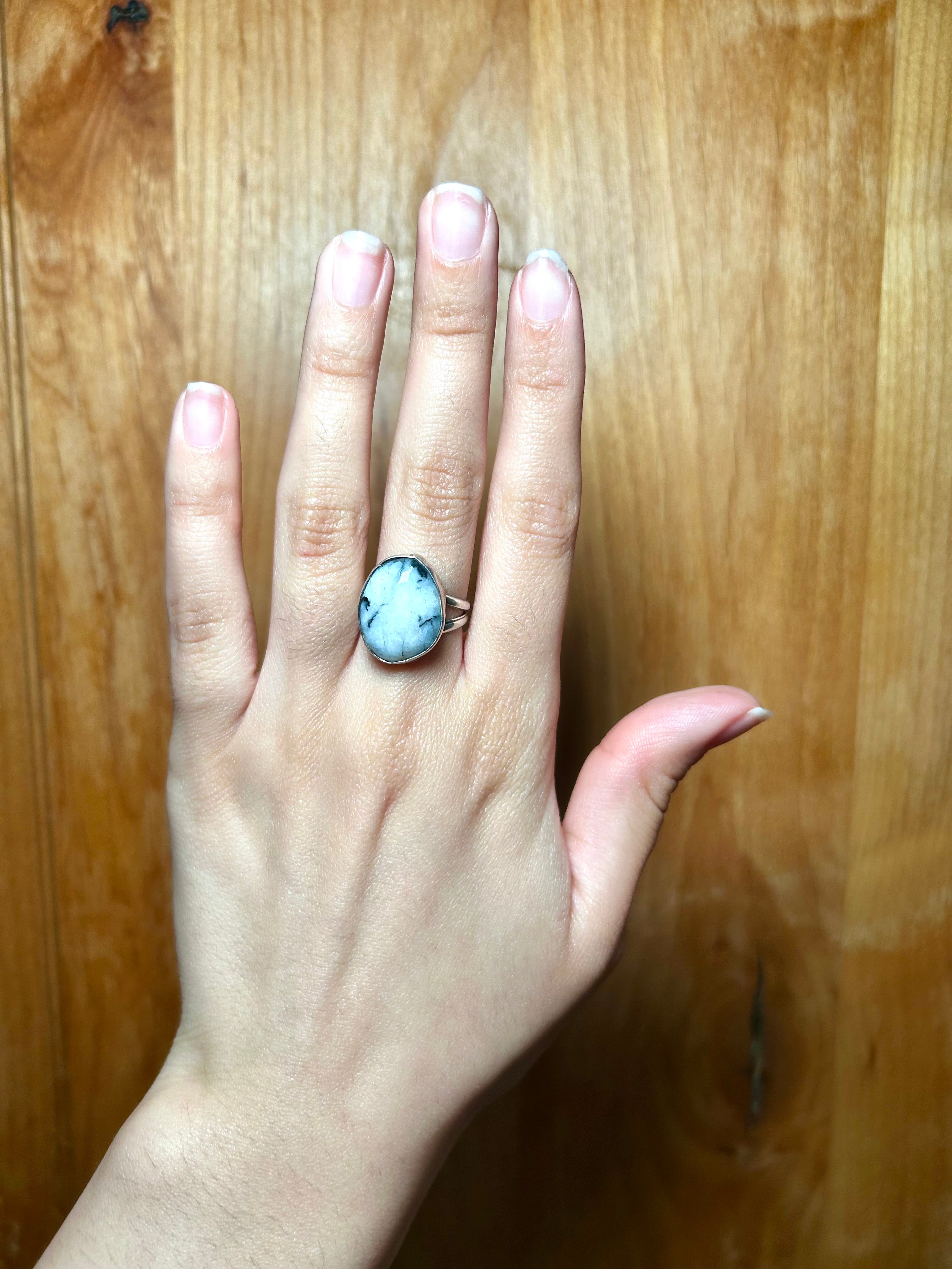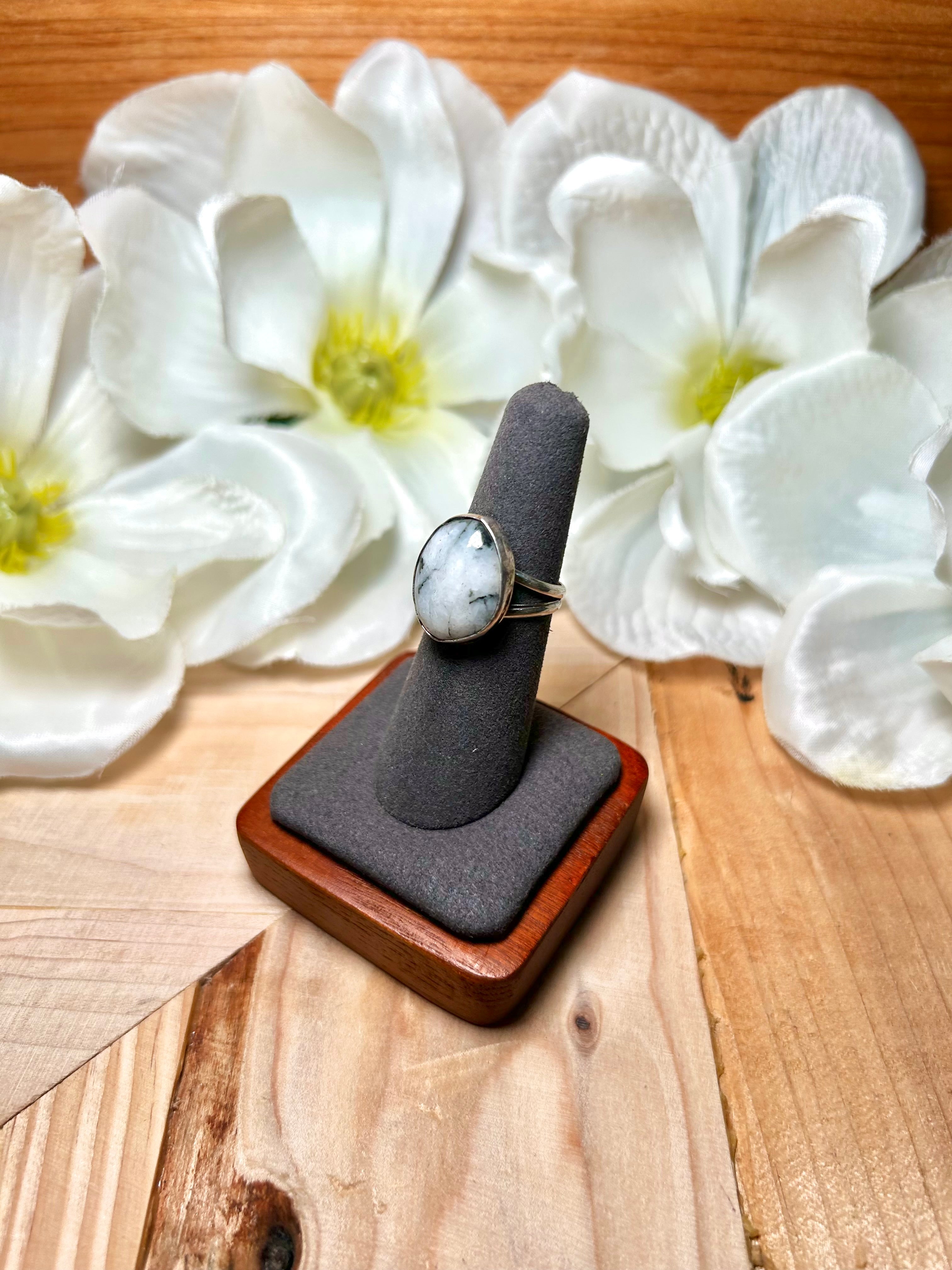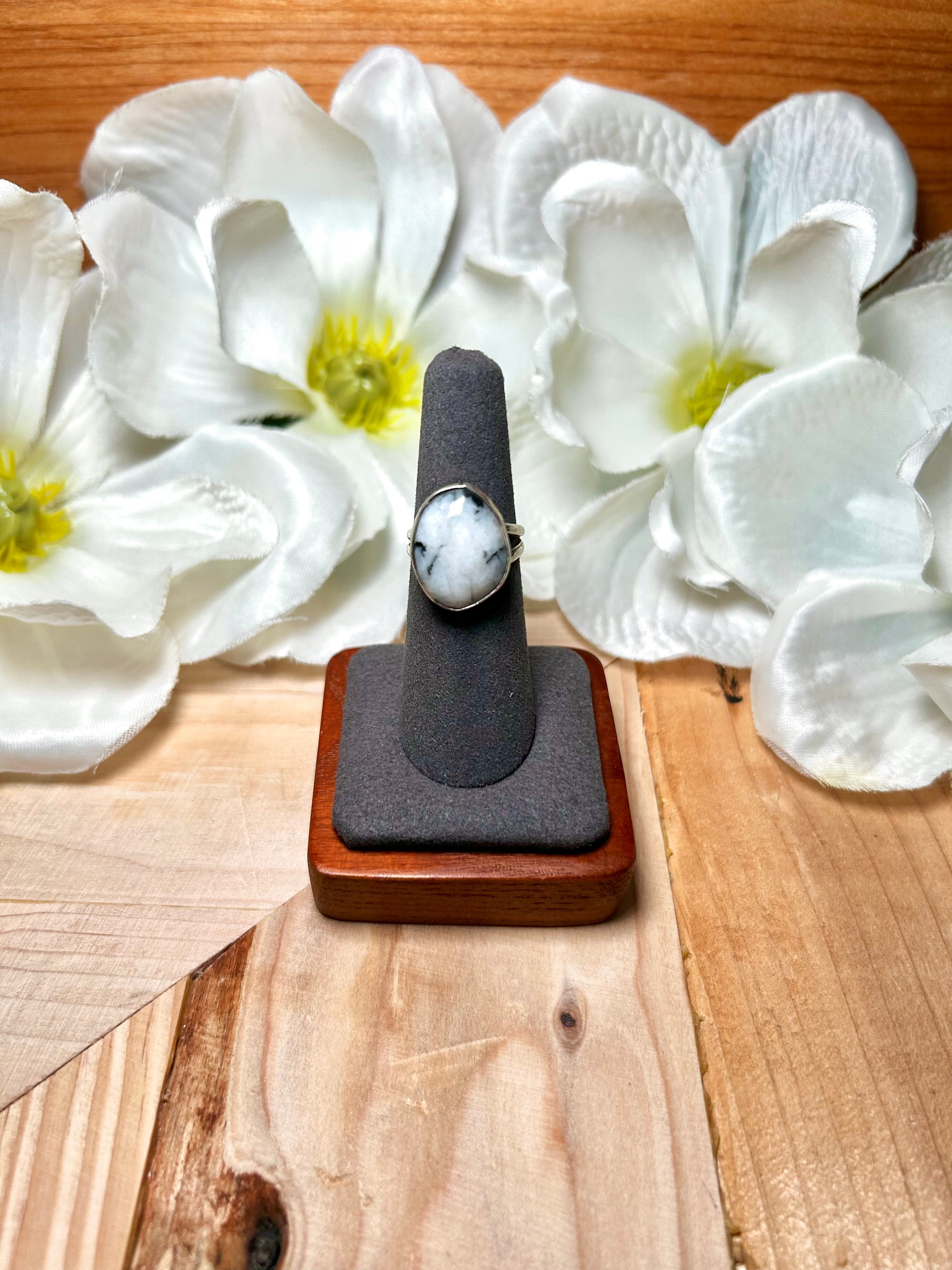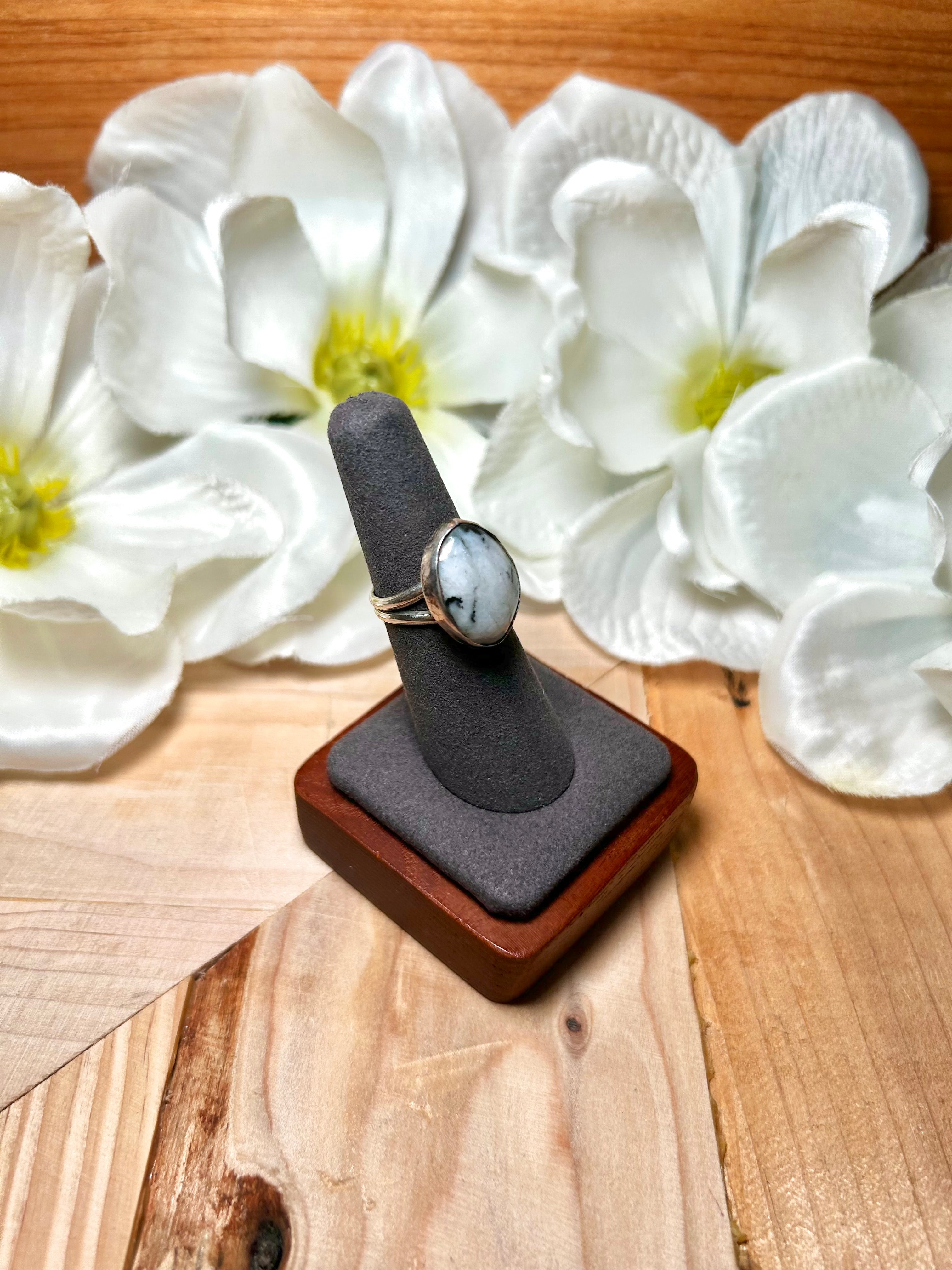 Navajo Made White Buffalo & Sterling Silver Ring Size 6.25