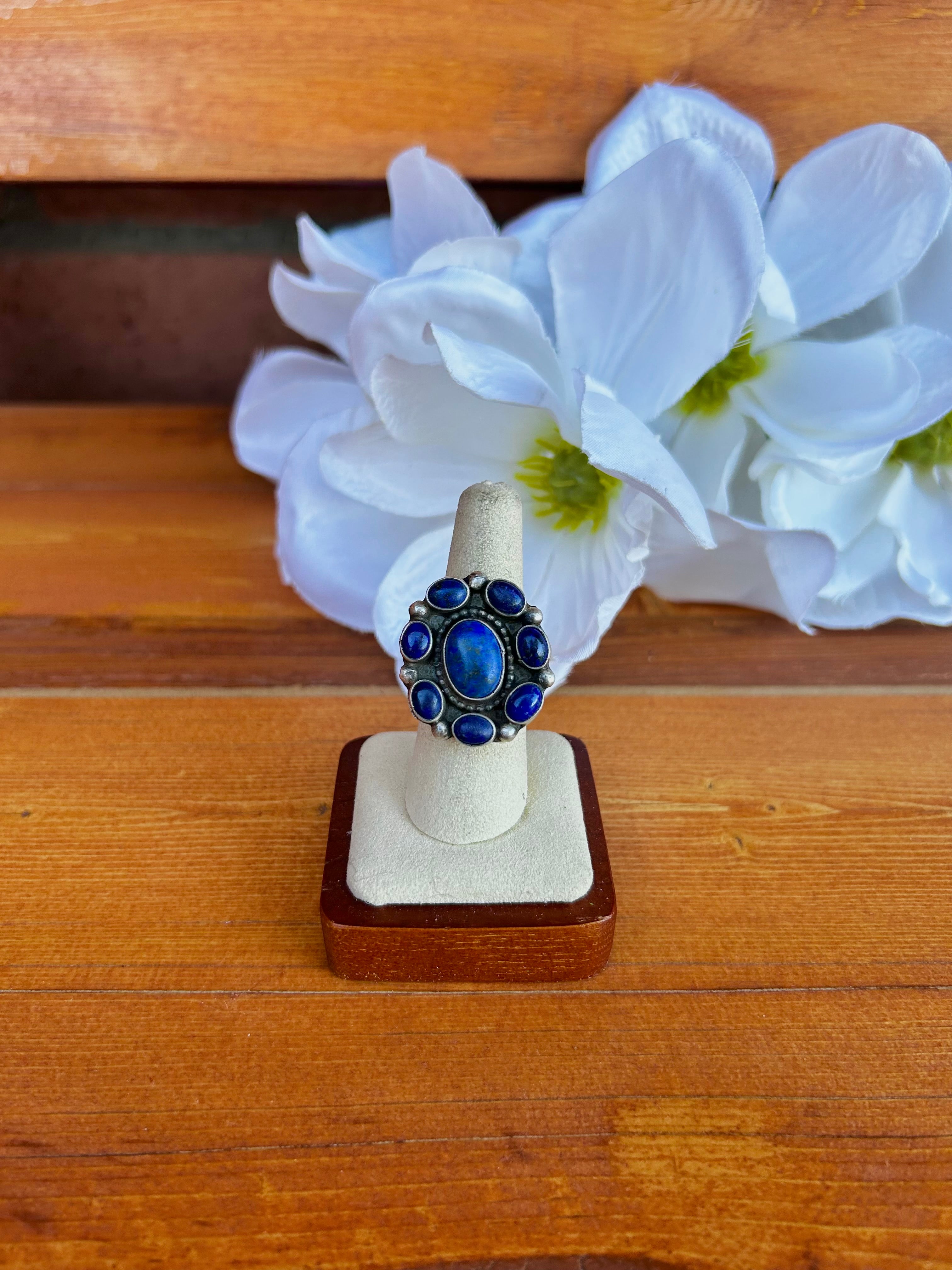 Navajo Made Lapis & Sterling Silver Adjustable Ring