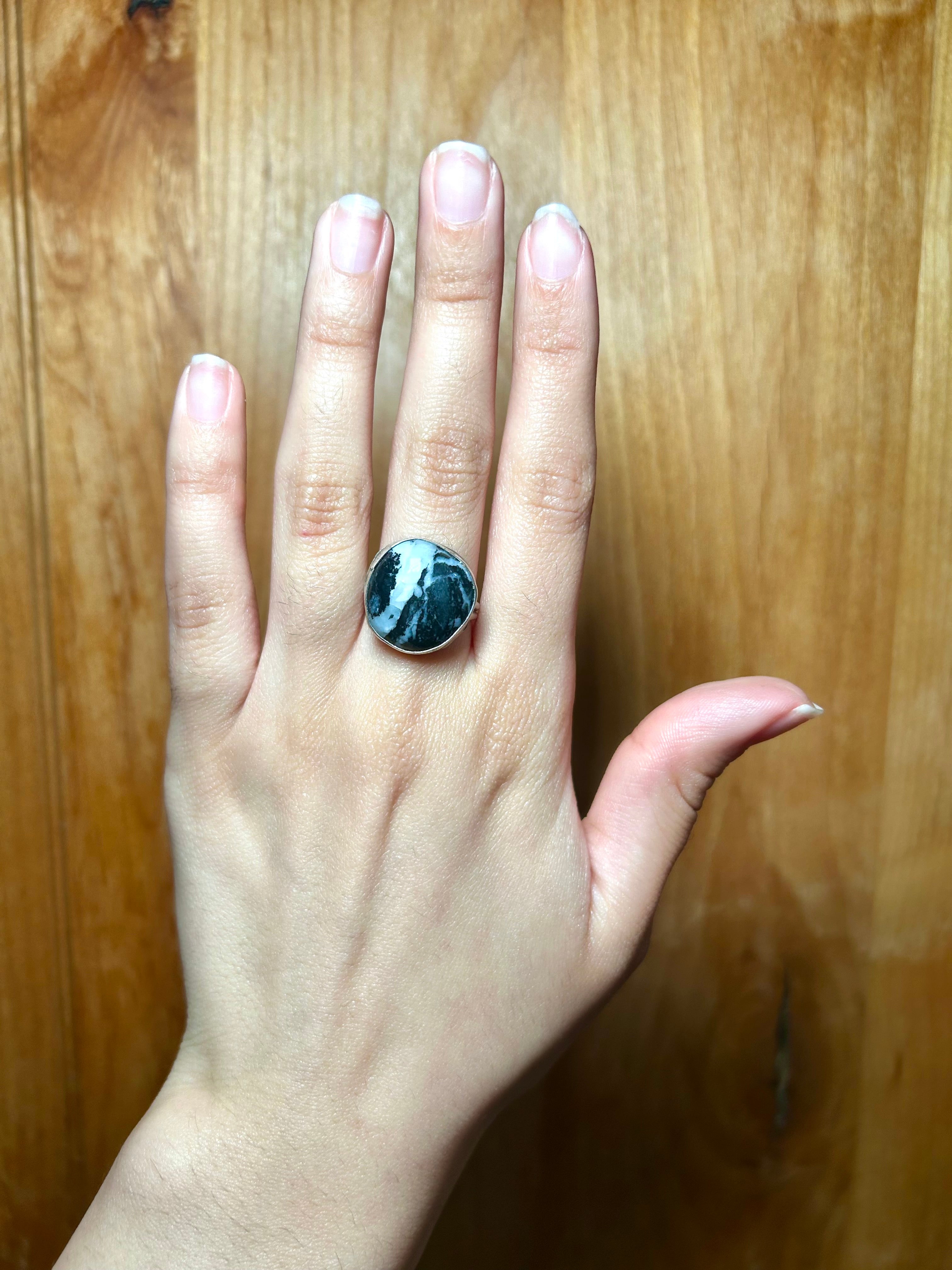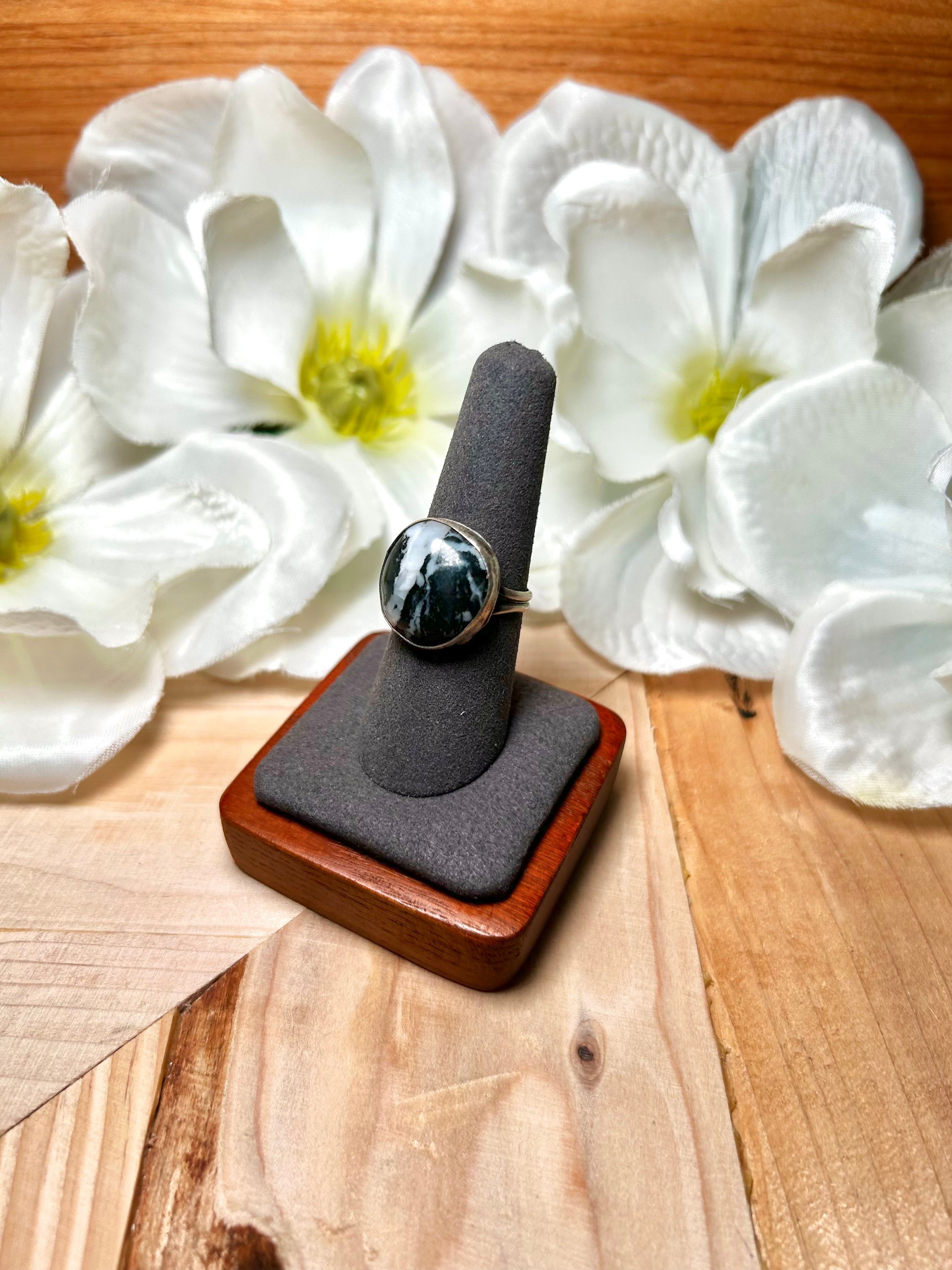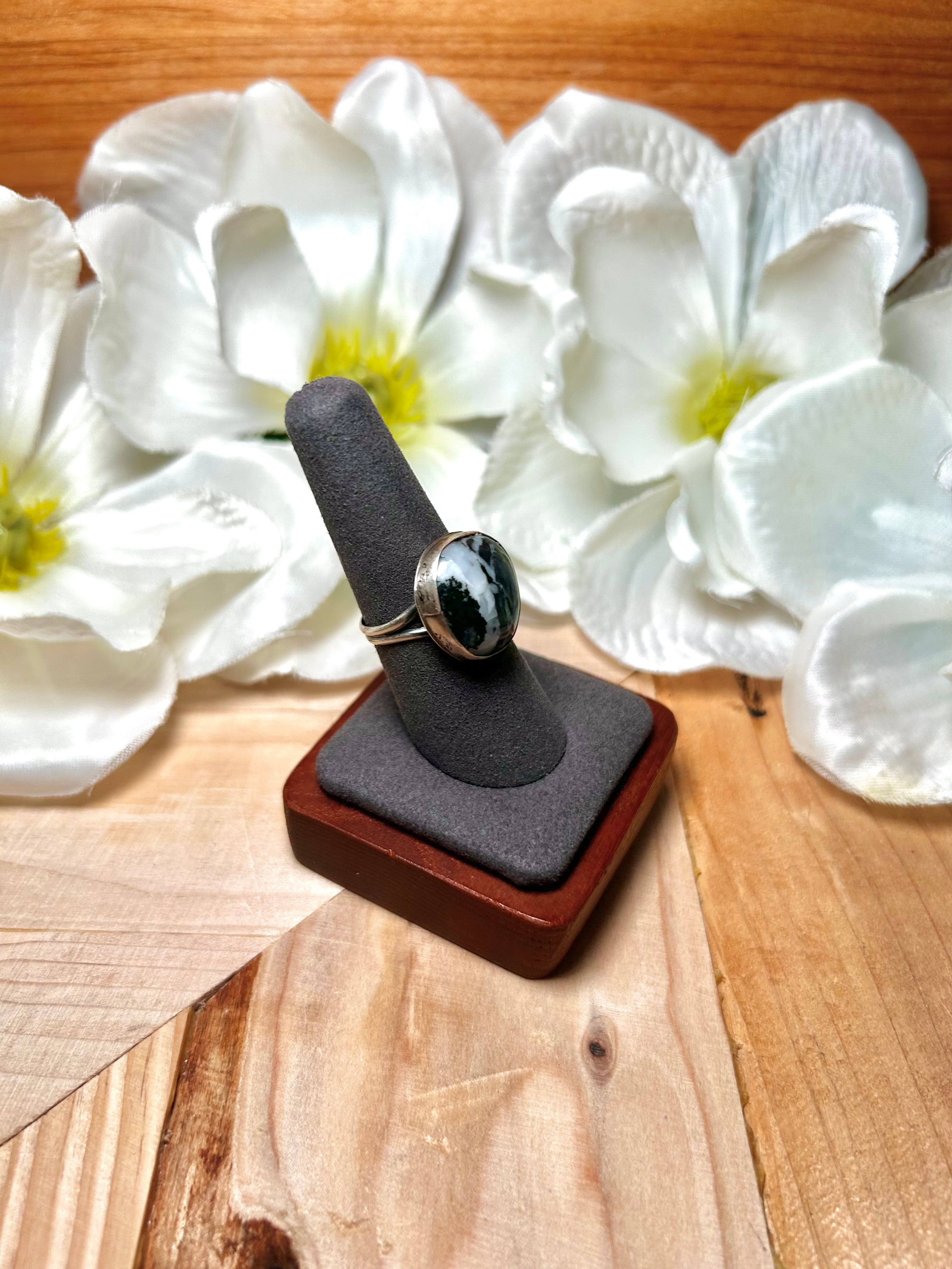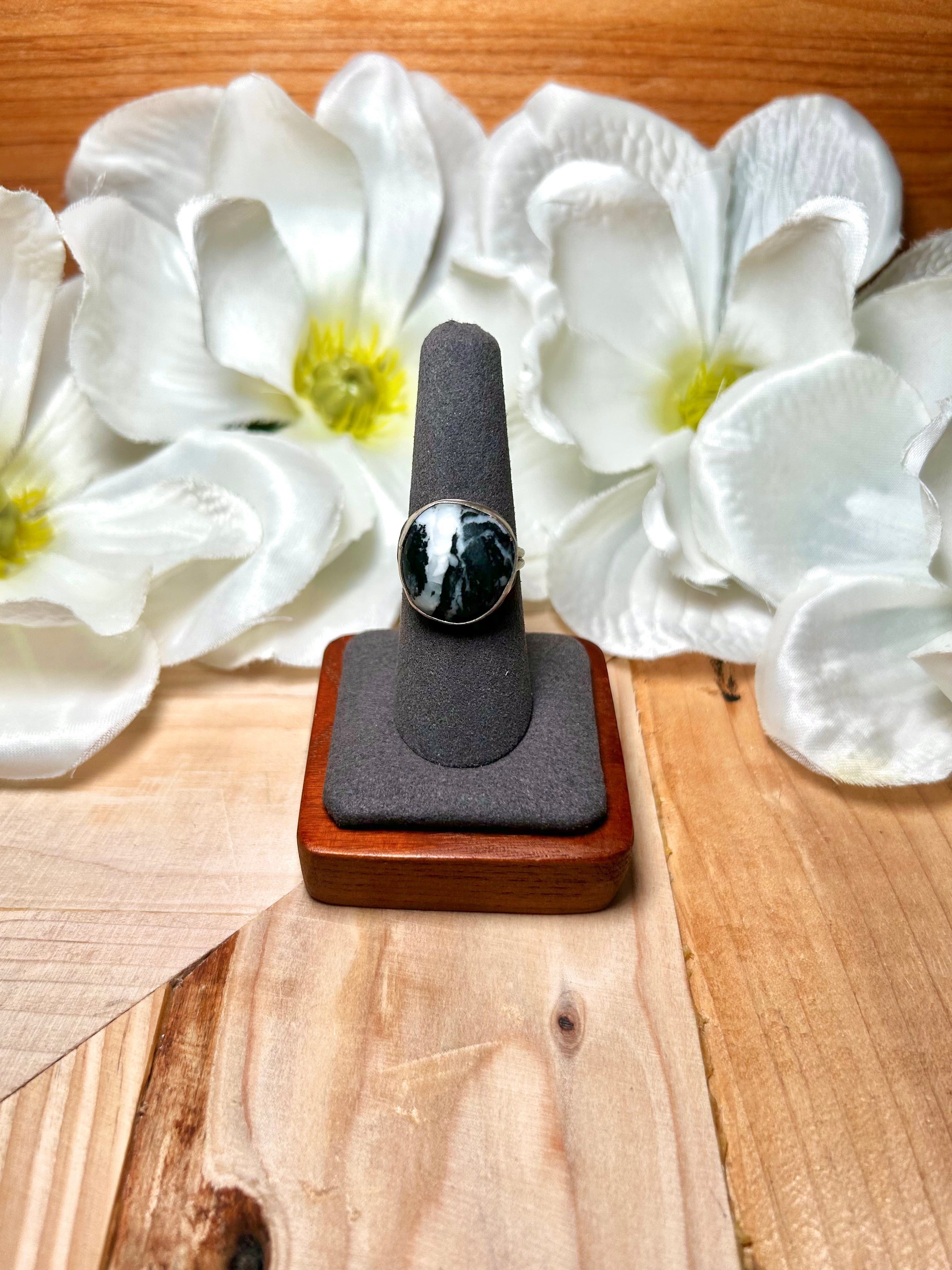 Navajo Made White Buffalo & Sterling Silver Ring Size 7.5