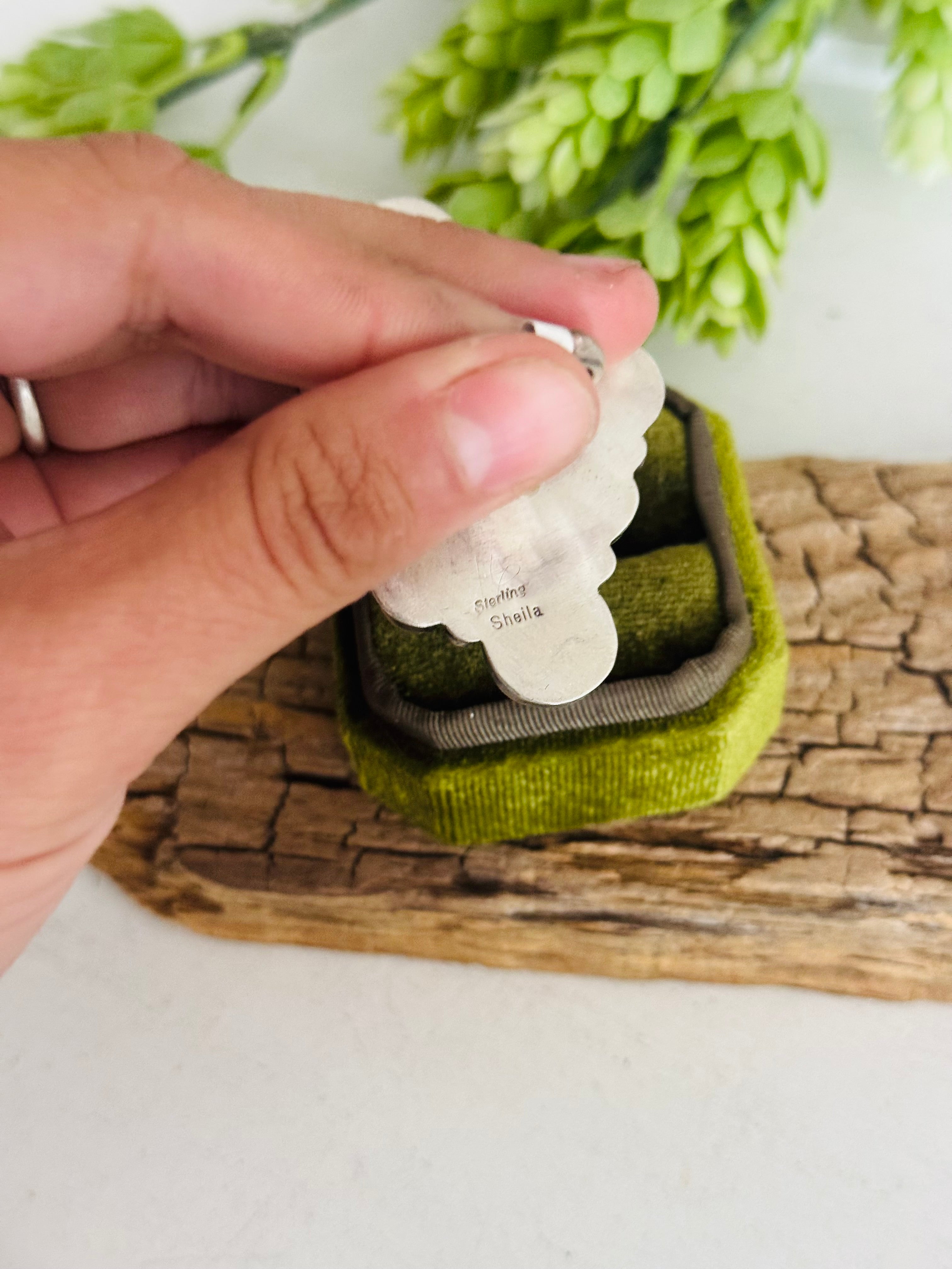 Navajo Made White Water Turquoise & Sterling Silver Cluster Ring Size 7.5. They measure 2 inches long and 1 3/4 inches wide. Stamped sterling silver.