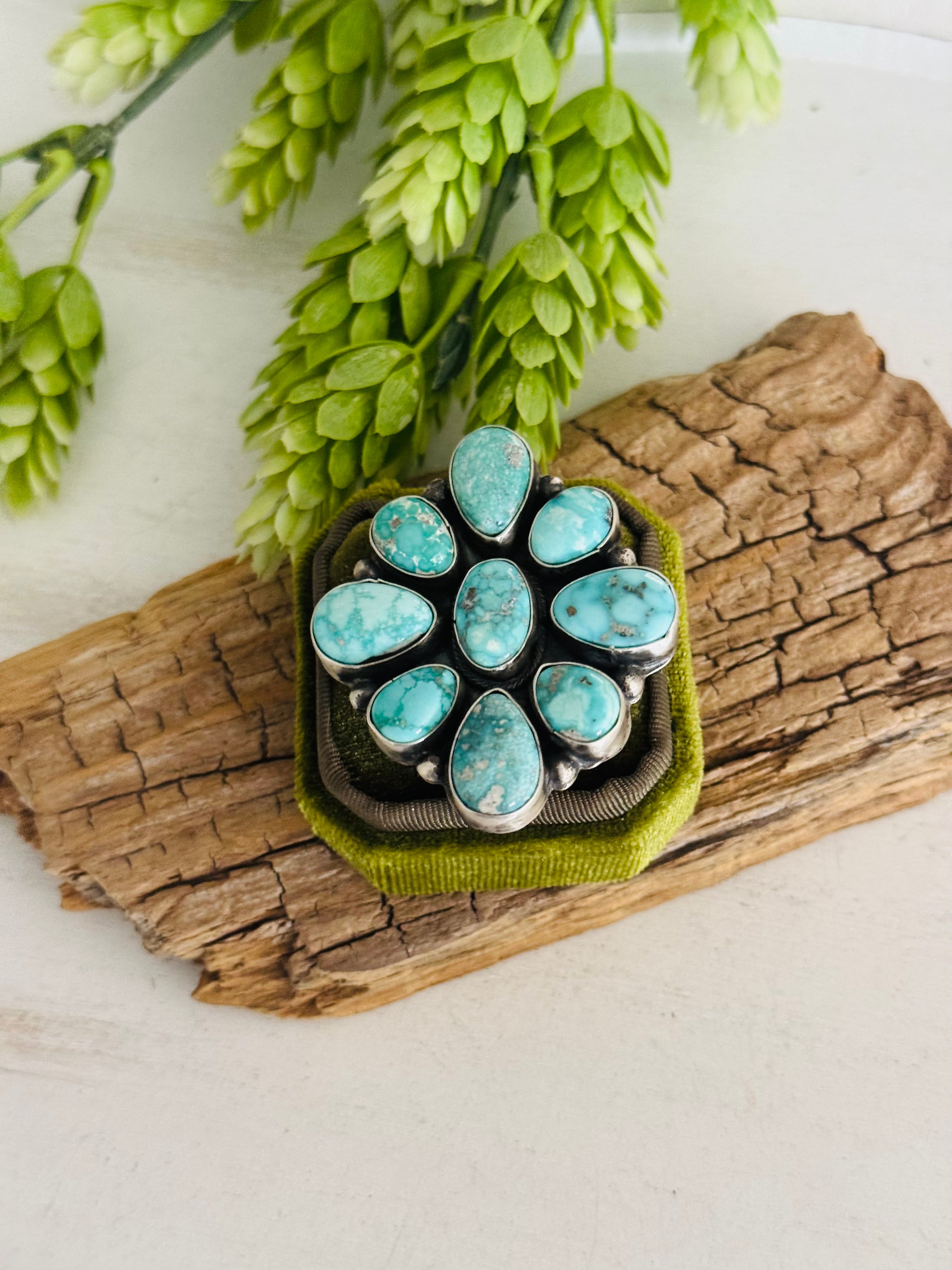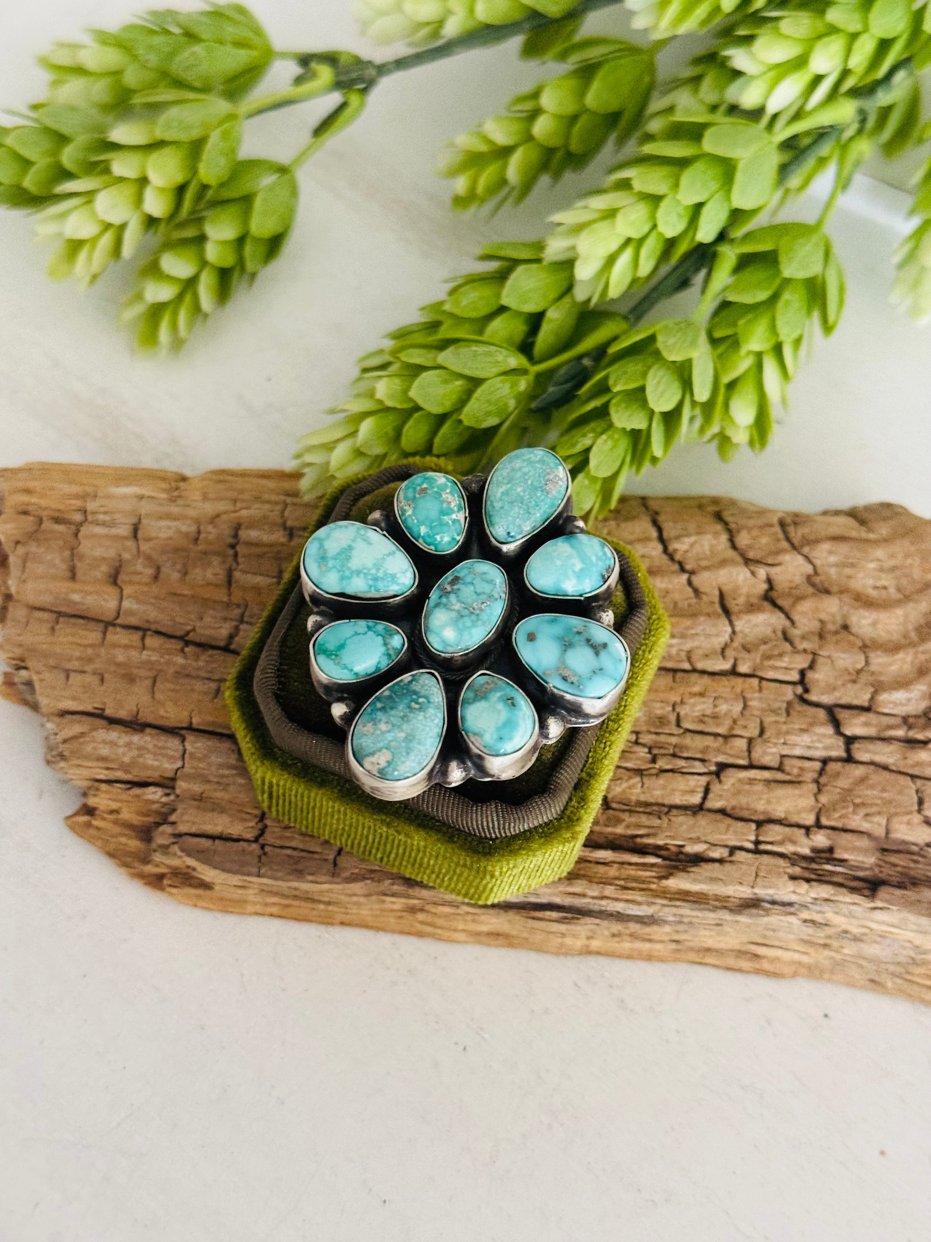 Navajo Made White Water Turquoise & Sterling Silver Cluster Ring Size 7.5