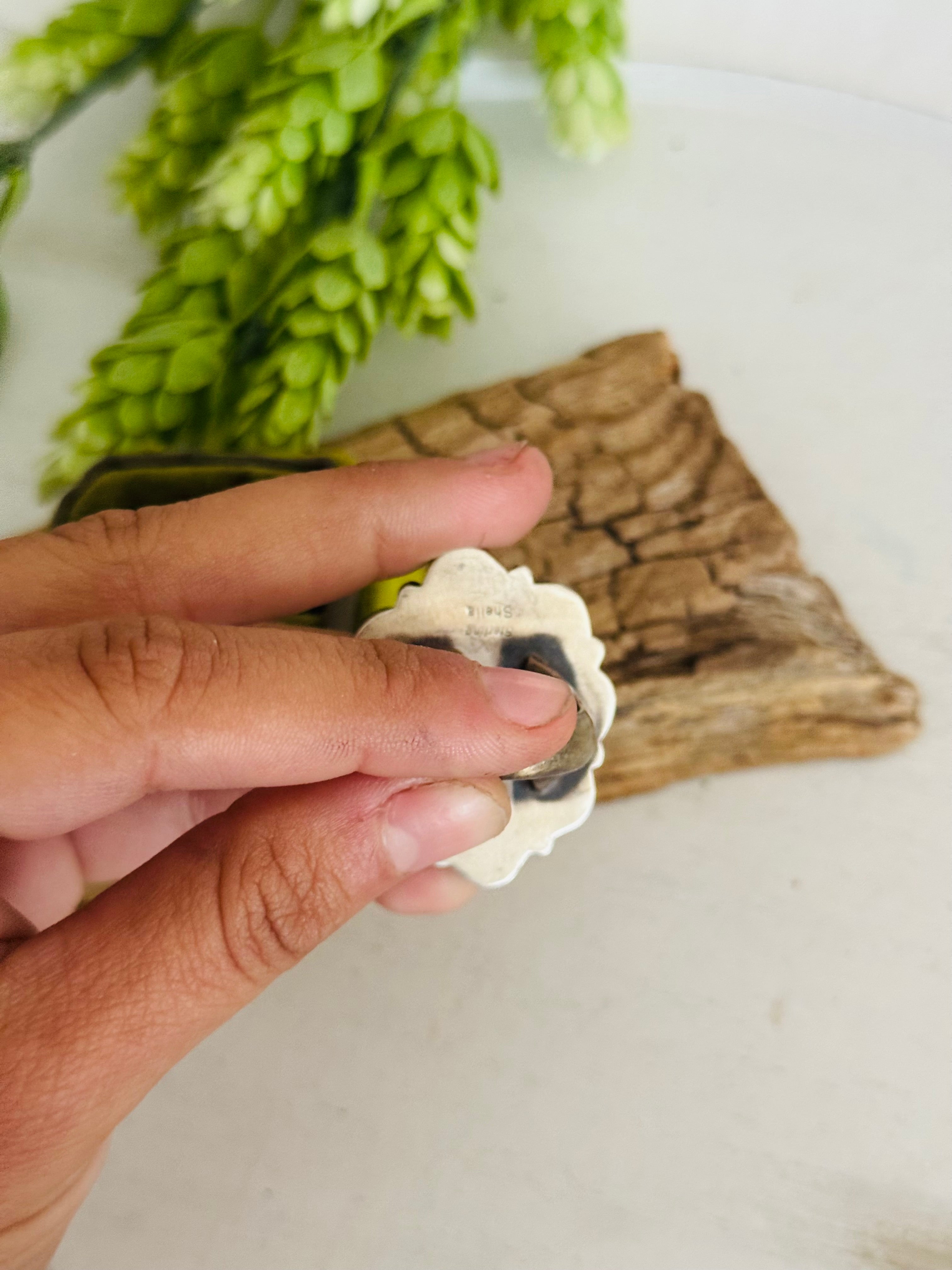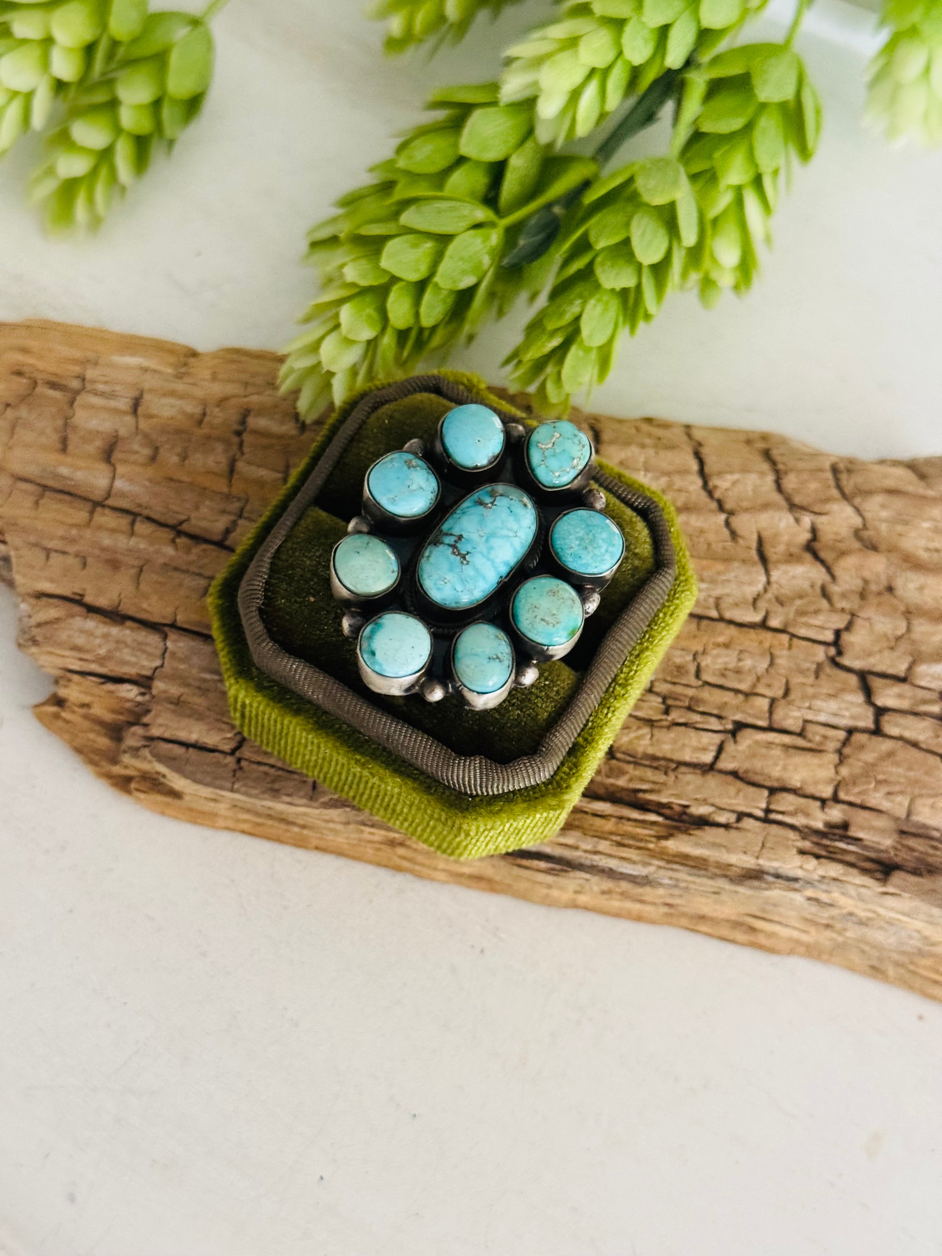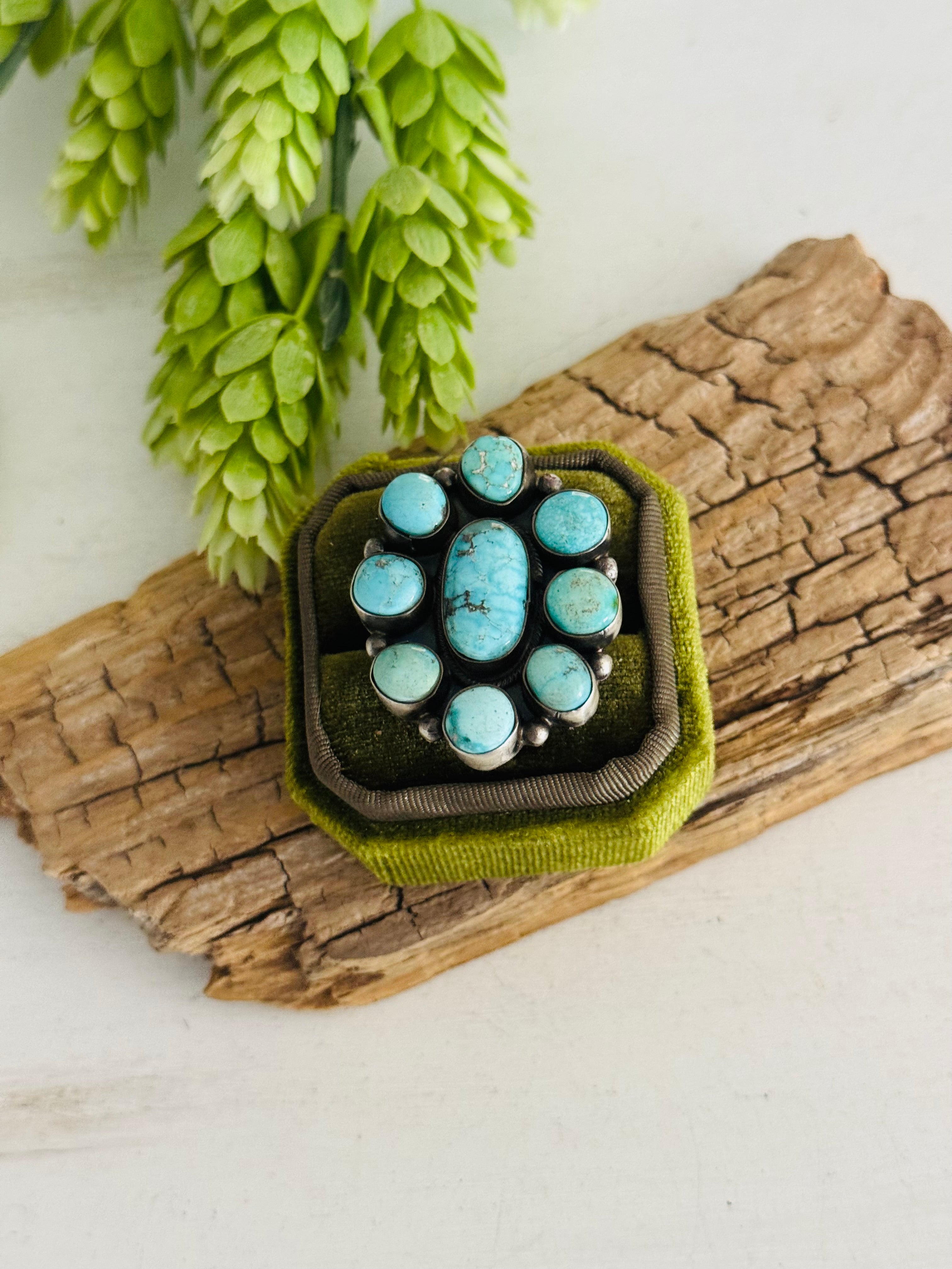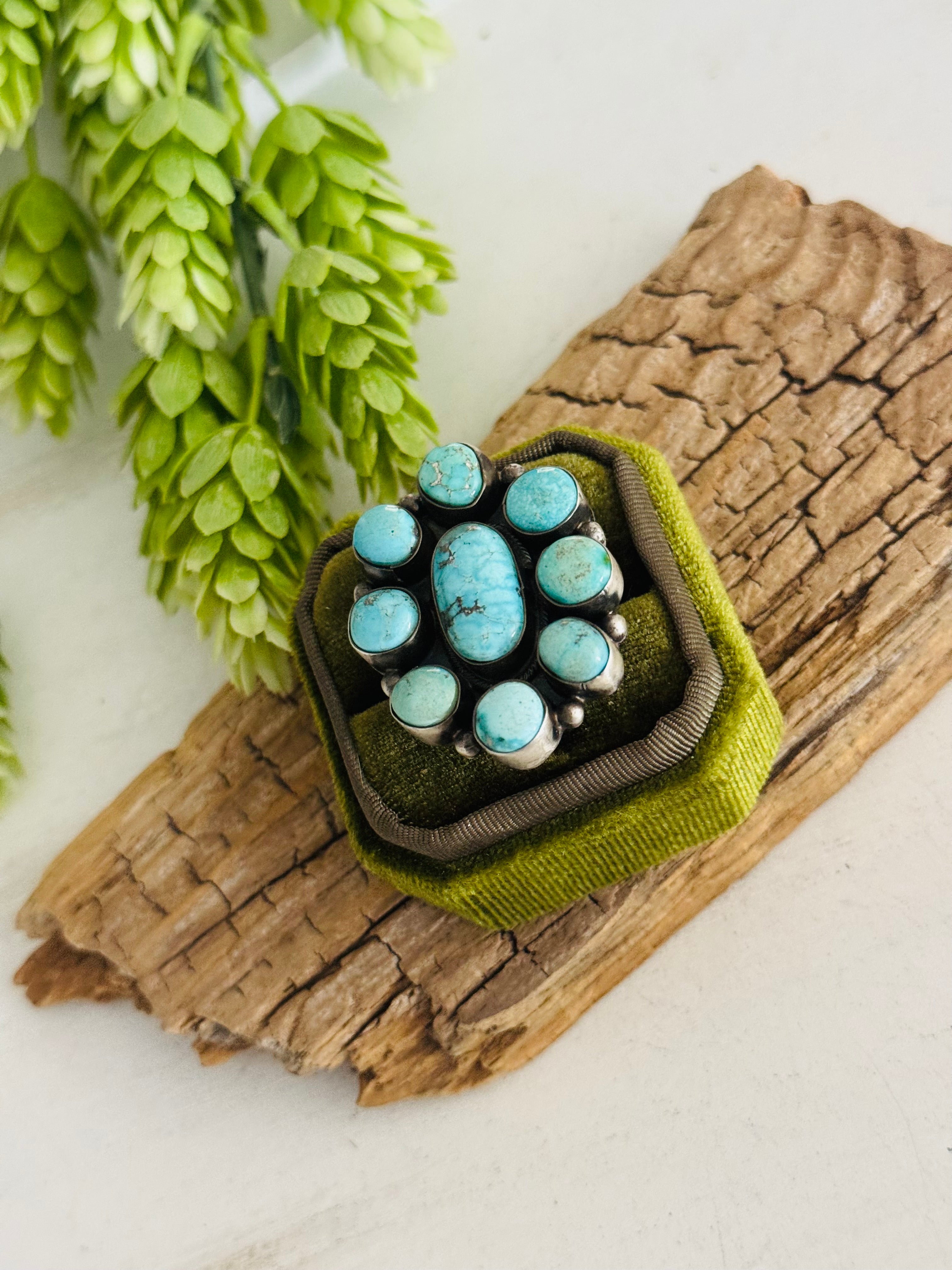 Navajo Made White Water Turquoise & Sterling Silver Cluster Ring Size 8