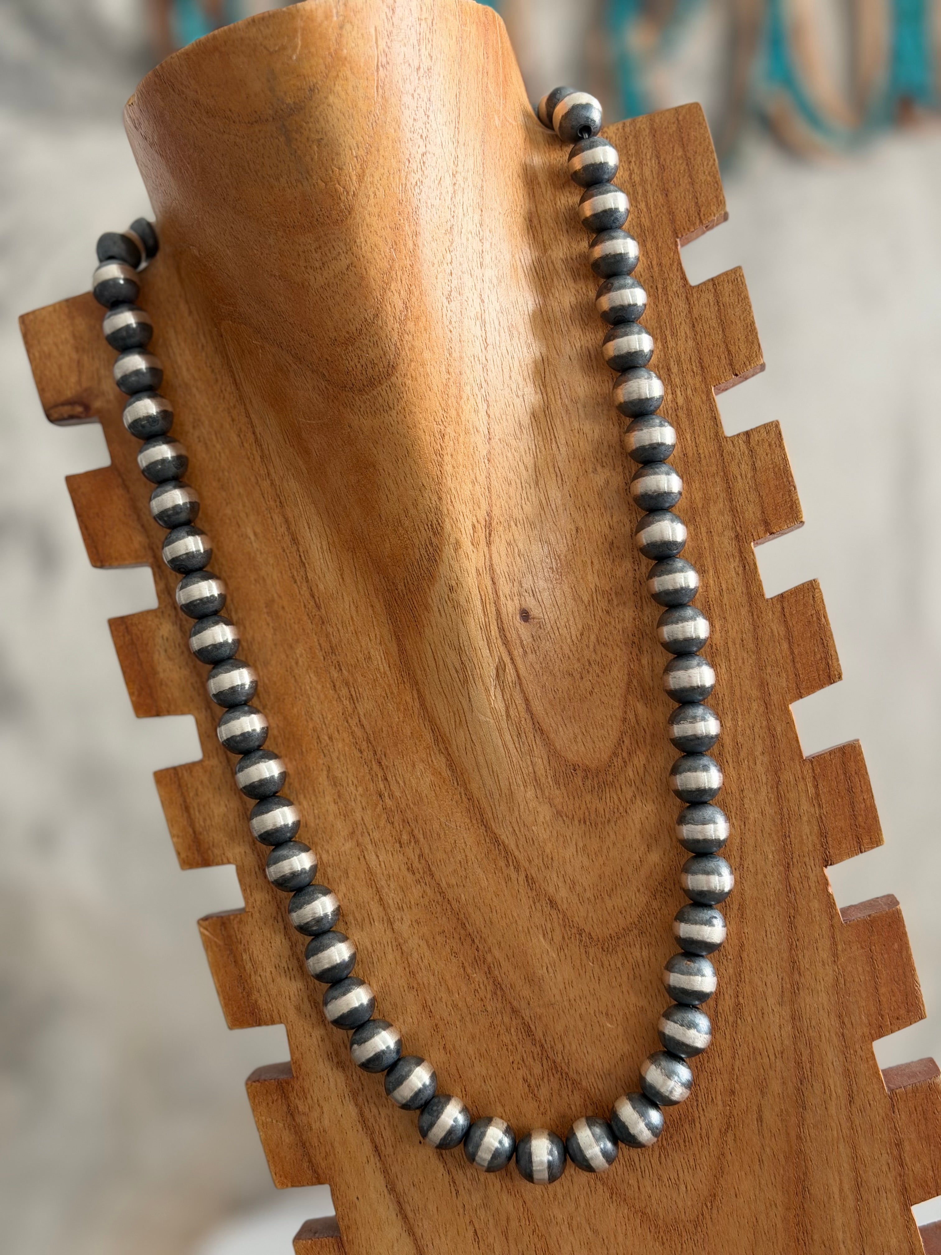 Navajo Strung Sterling Silver 12 MM 26 inch Machine Made Pearl Necklace.