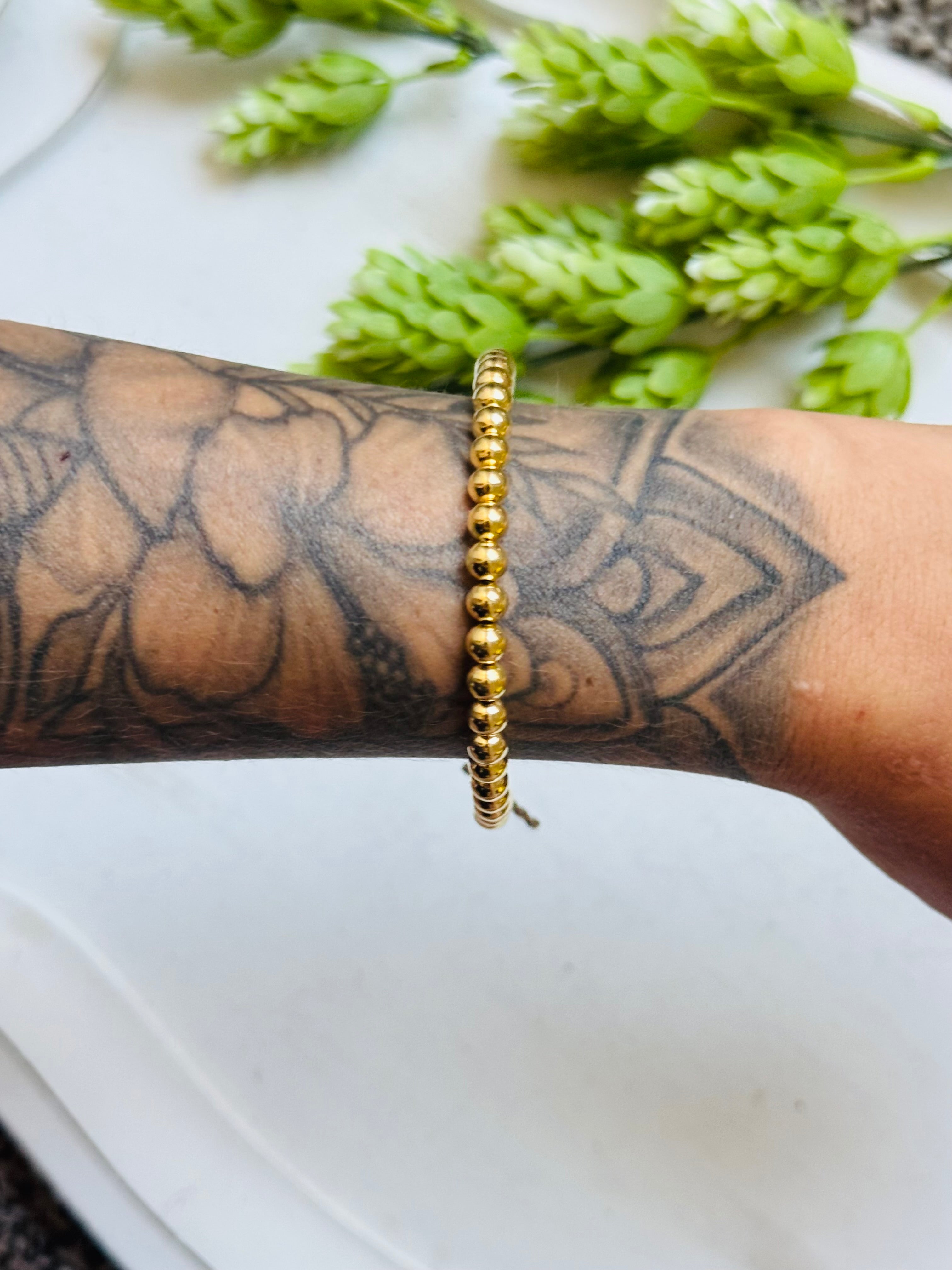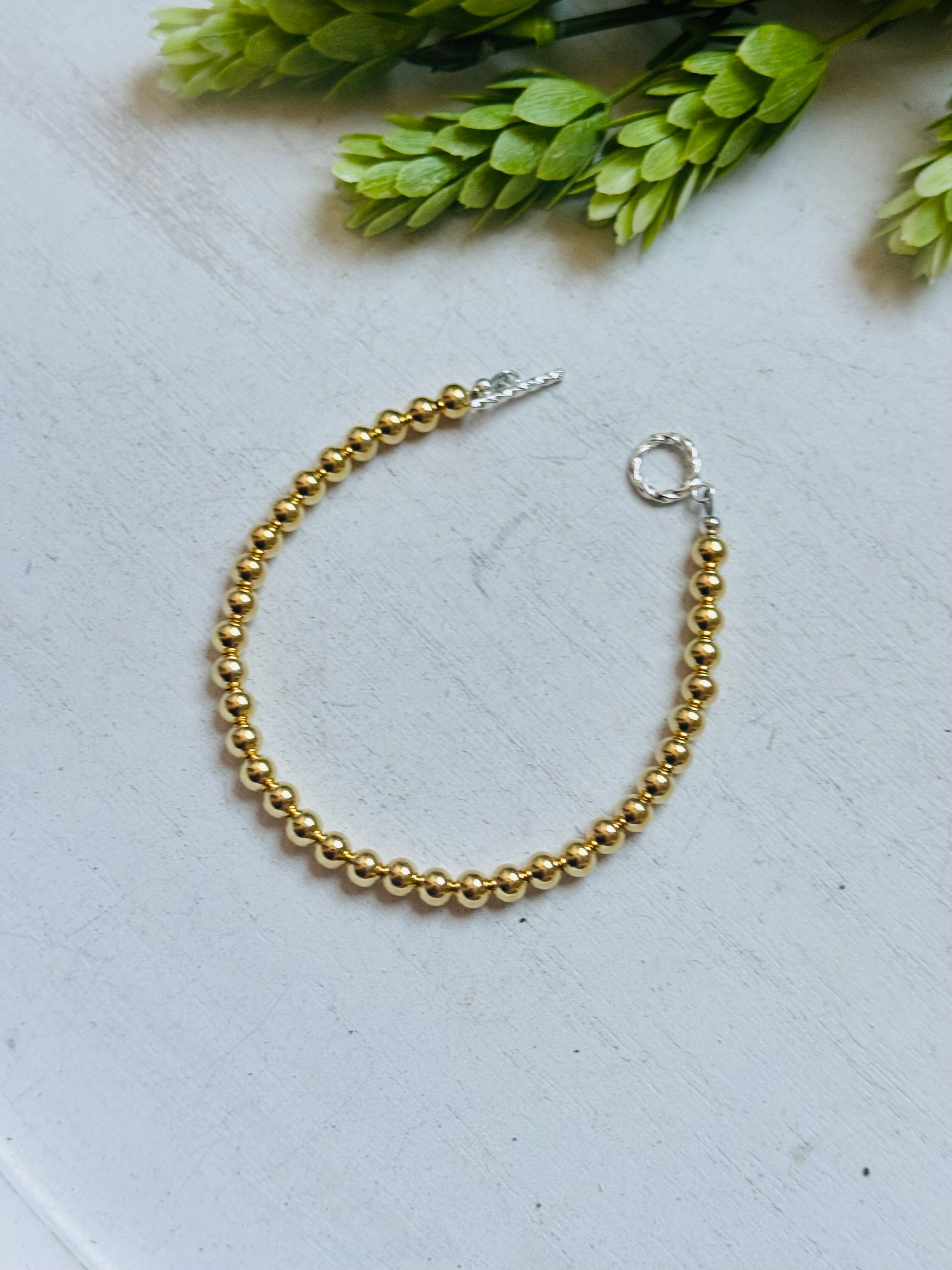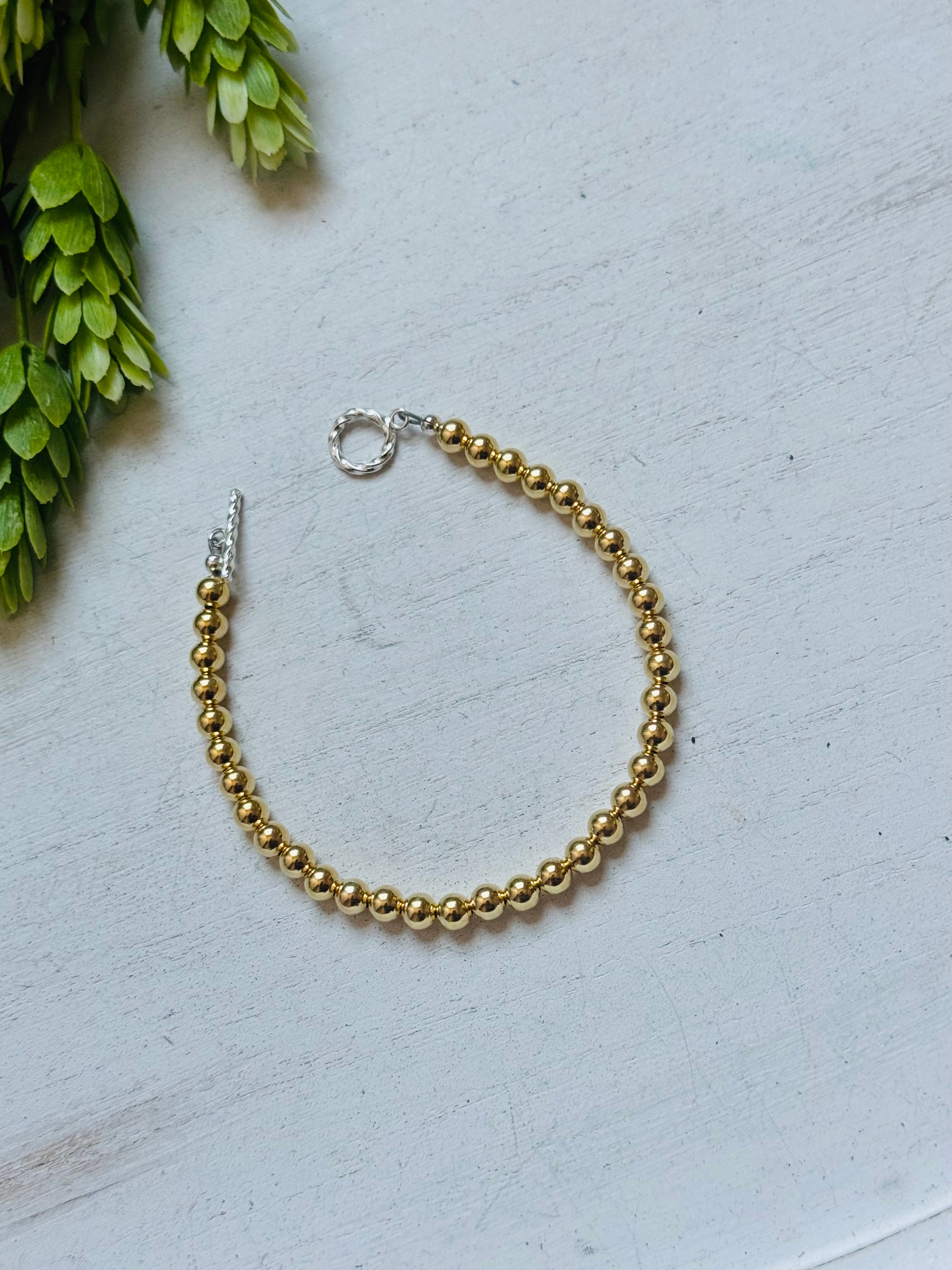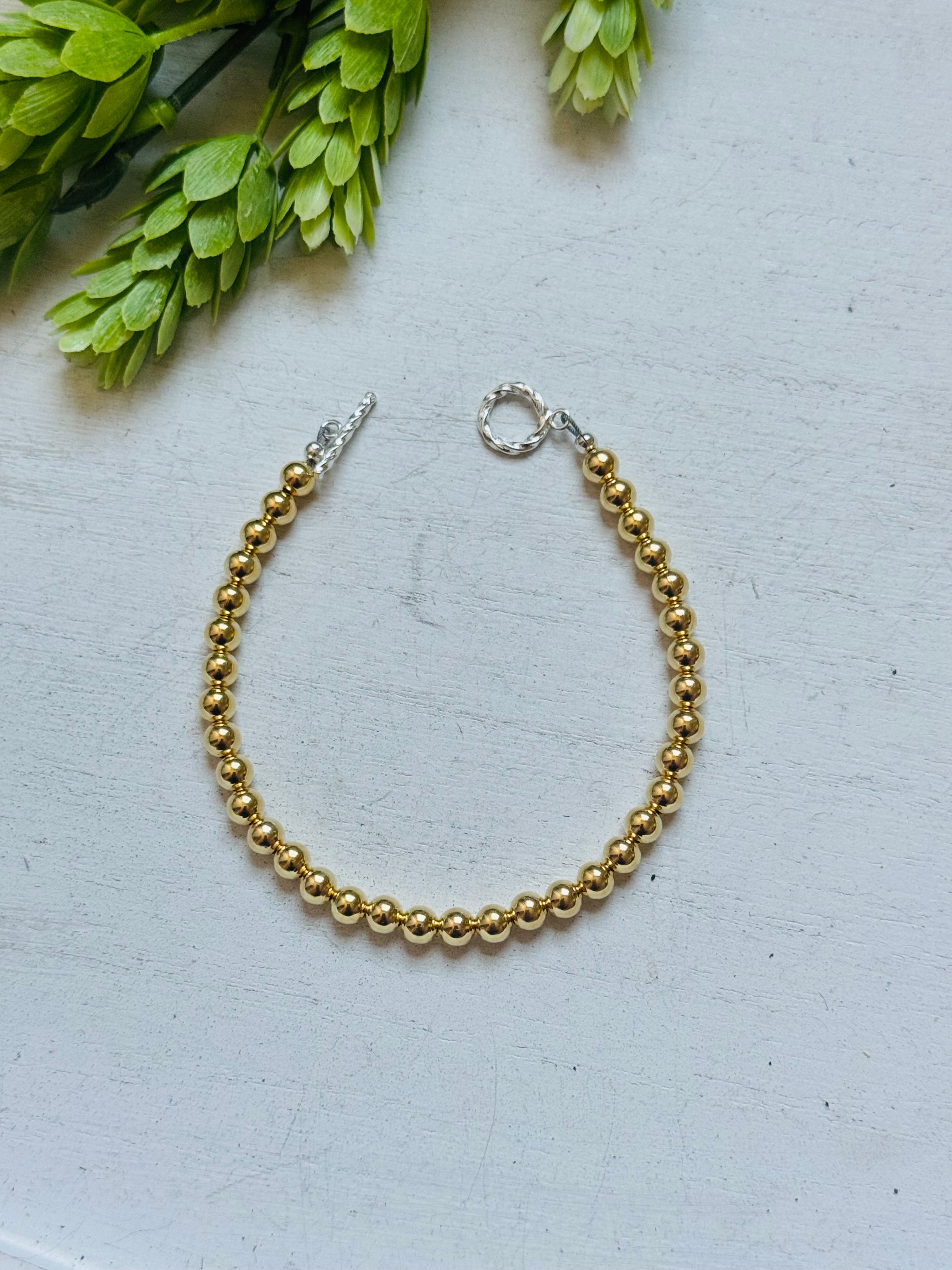 Navajo Strung 18 K Gold Plated Sterling Silver Graduated Beaded Pearl Bracelet. It measures 7 1/2 inches long.