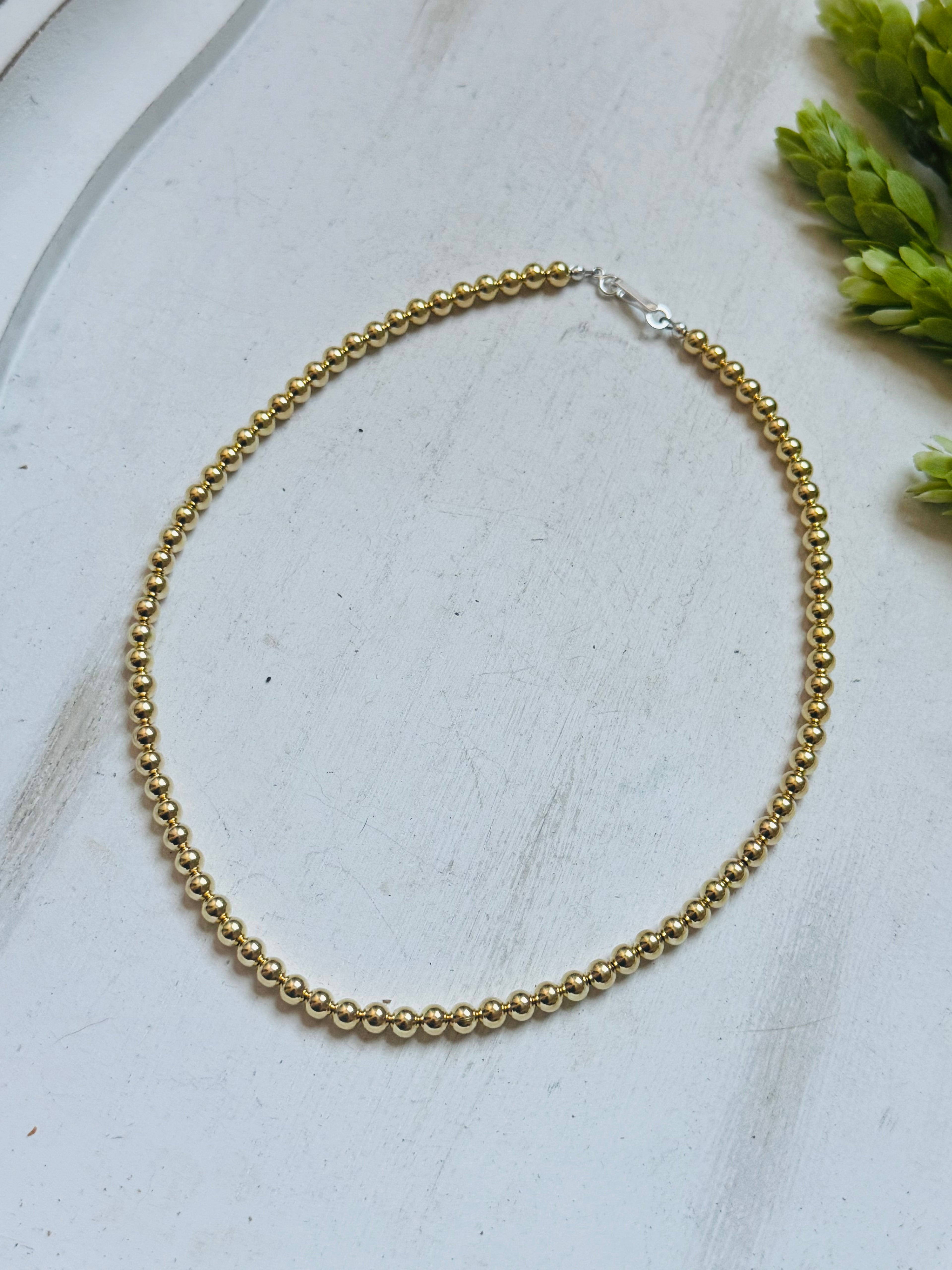 Navajo Strung 18 K Gold Plated Sterling Silver Graduated Beaded Pearl Necklace. It measures 20 inches long.