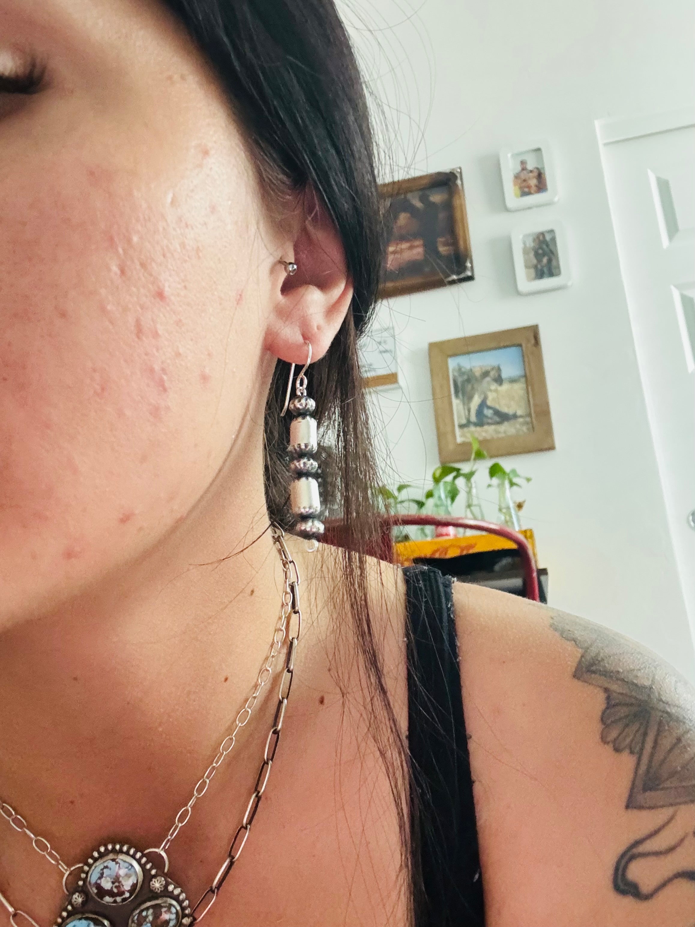 Tonisha Haley Handmade Sterling Silver Beaded Dangle Earrings. It measures 2 1/8 inches long.