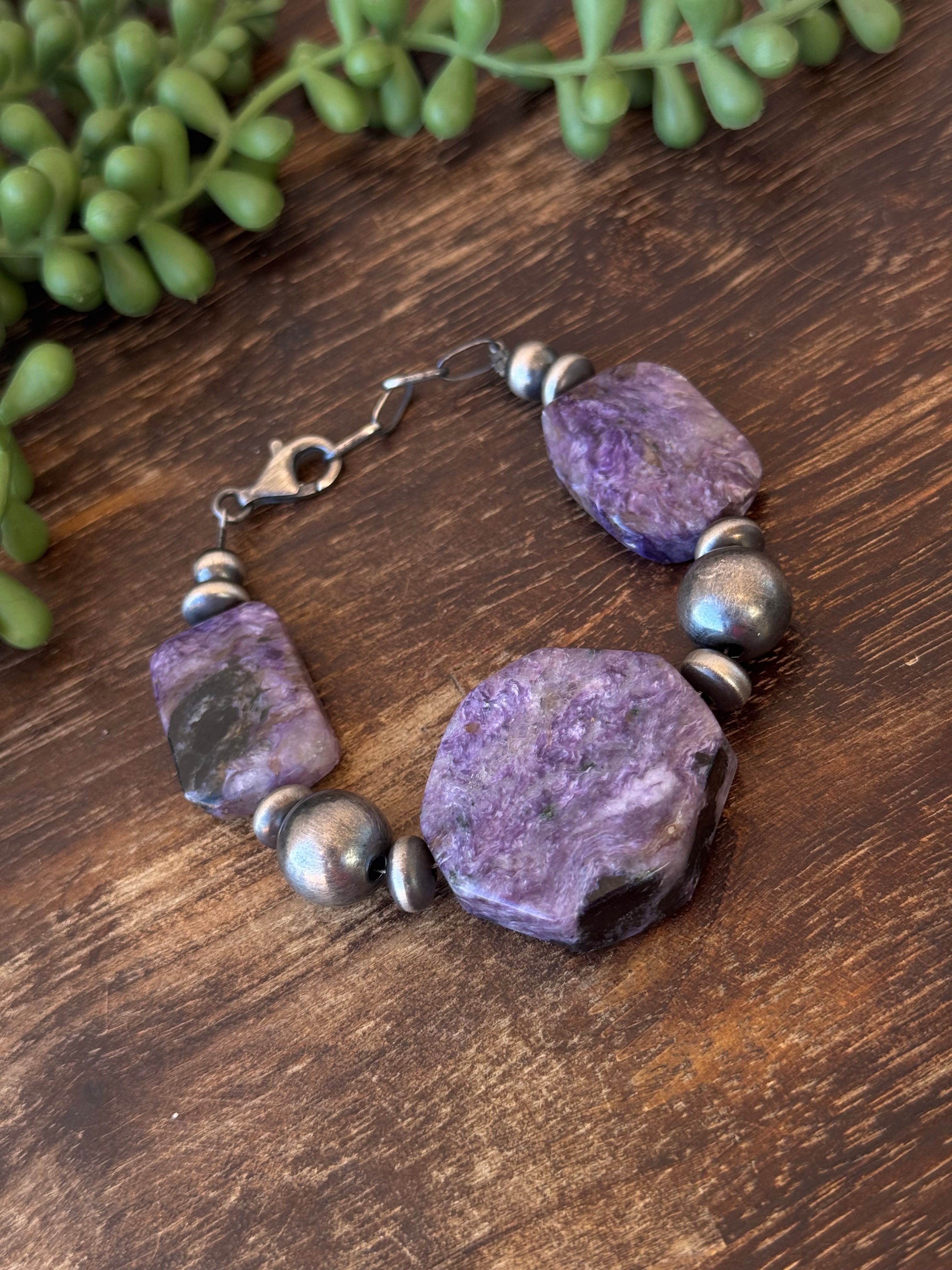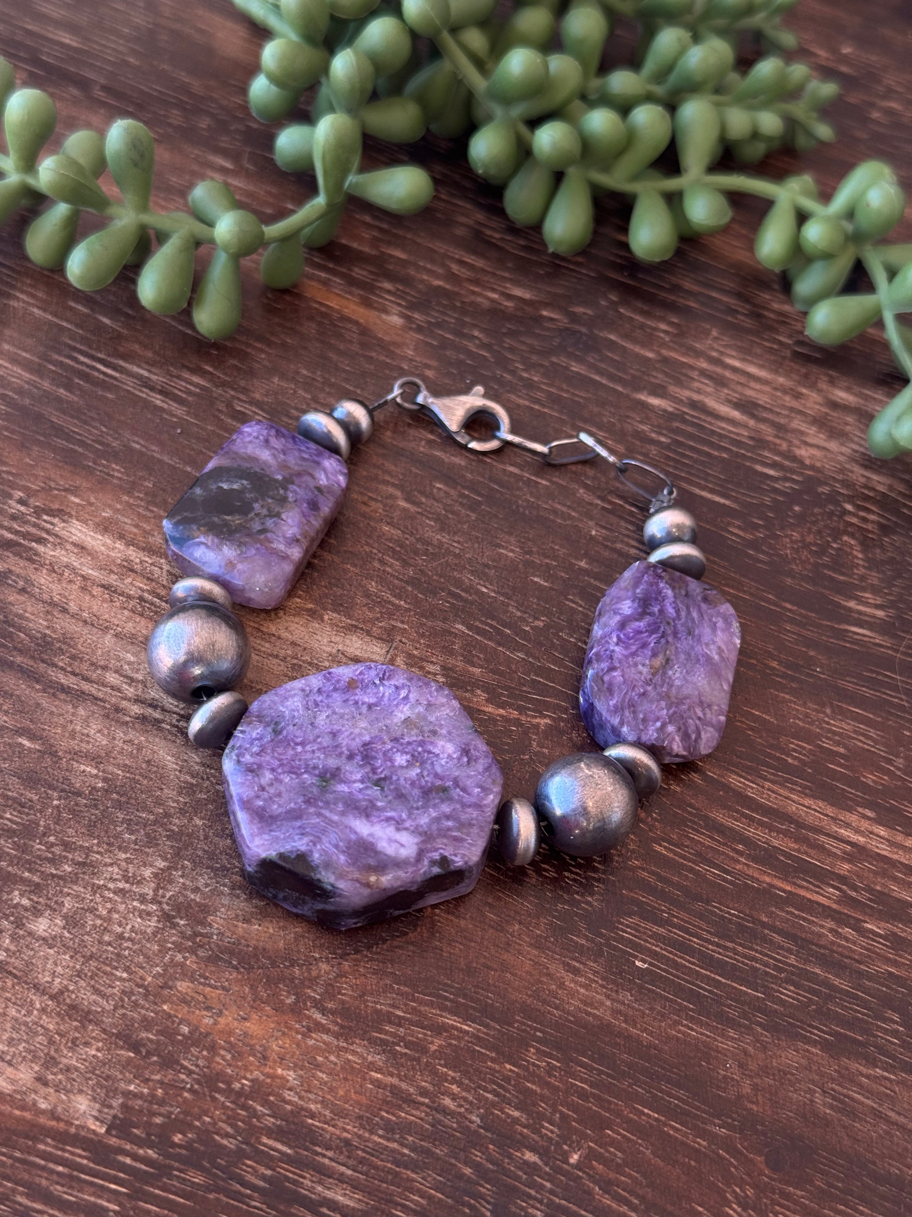 Navajo Strung Charoite & Sterling Silver Pearl Bracelet