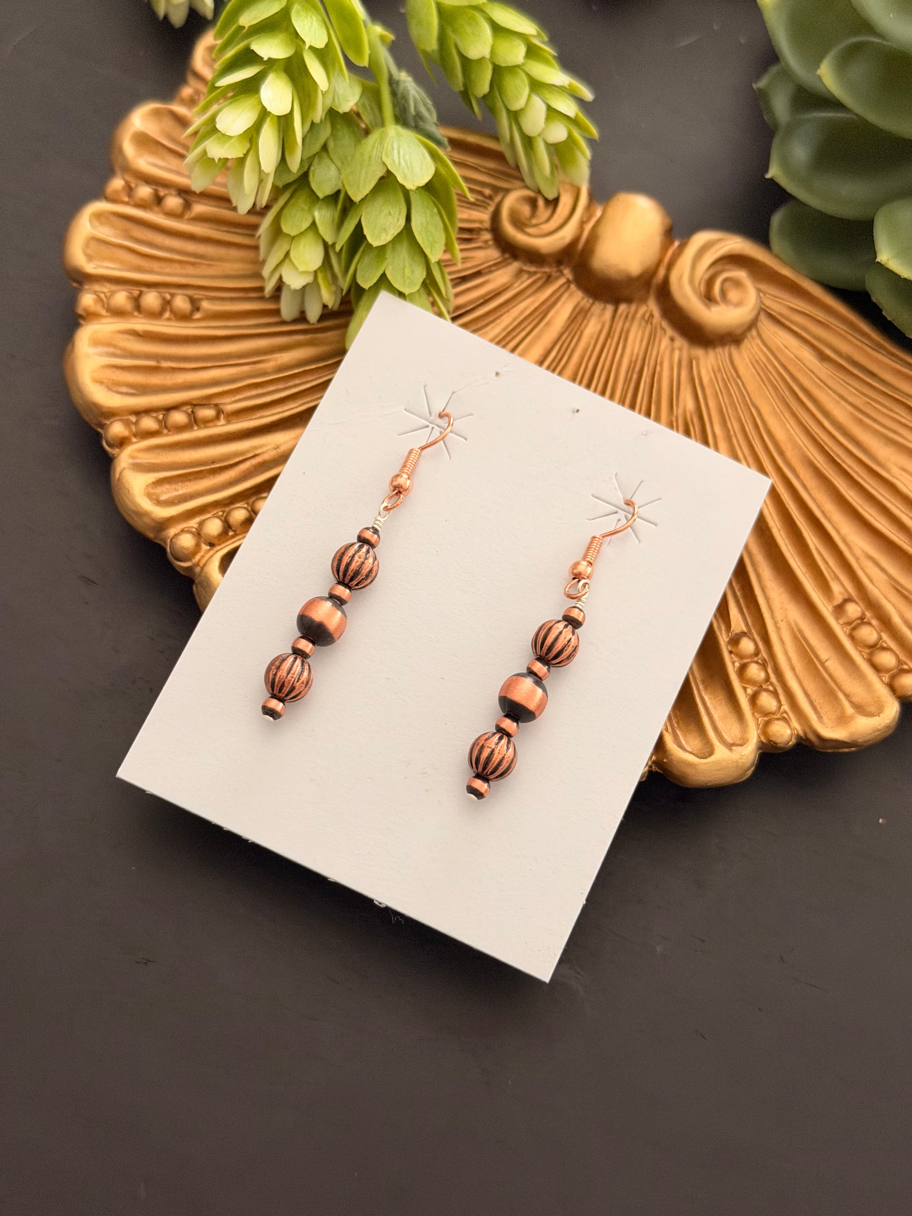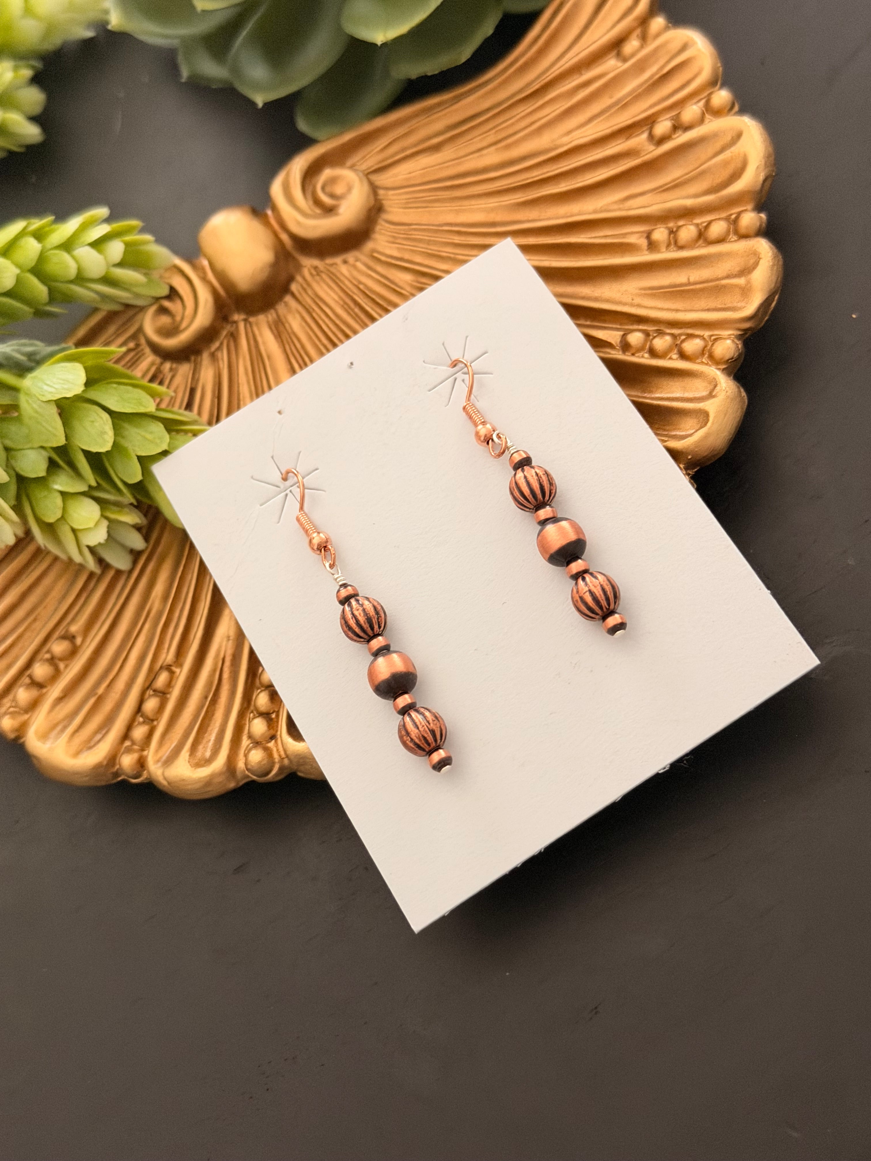 Navajo Strung Copper Graduated Machine Made Pearls Dangle Earrings