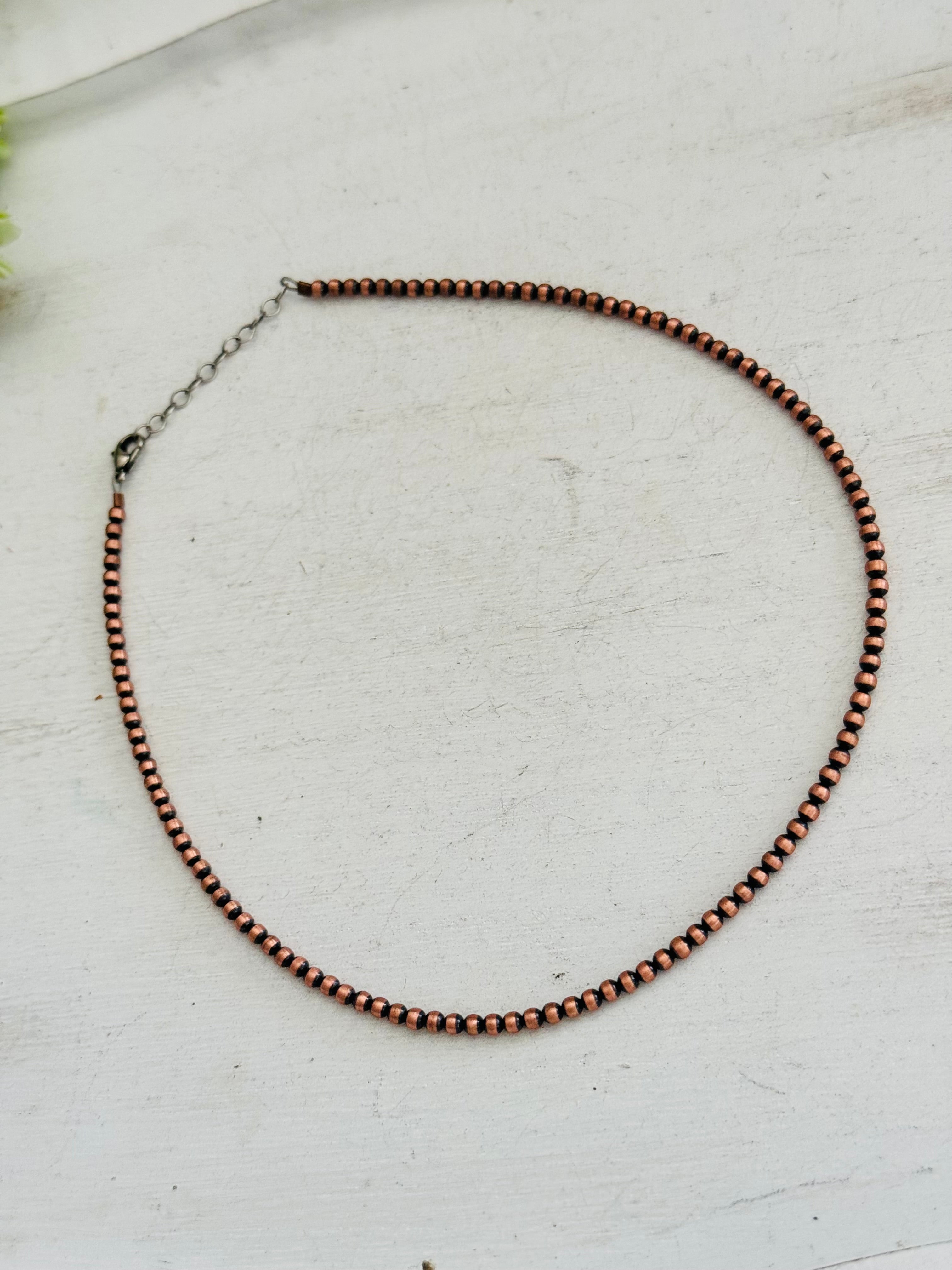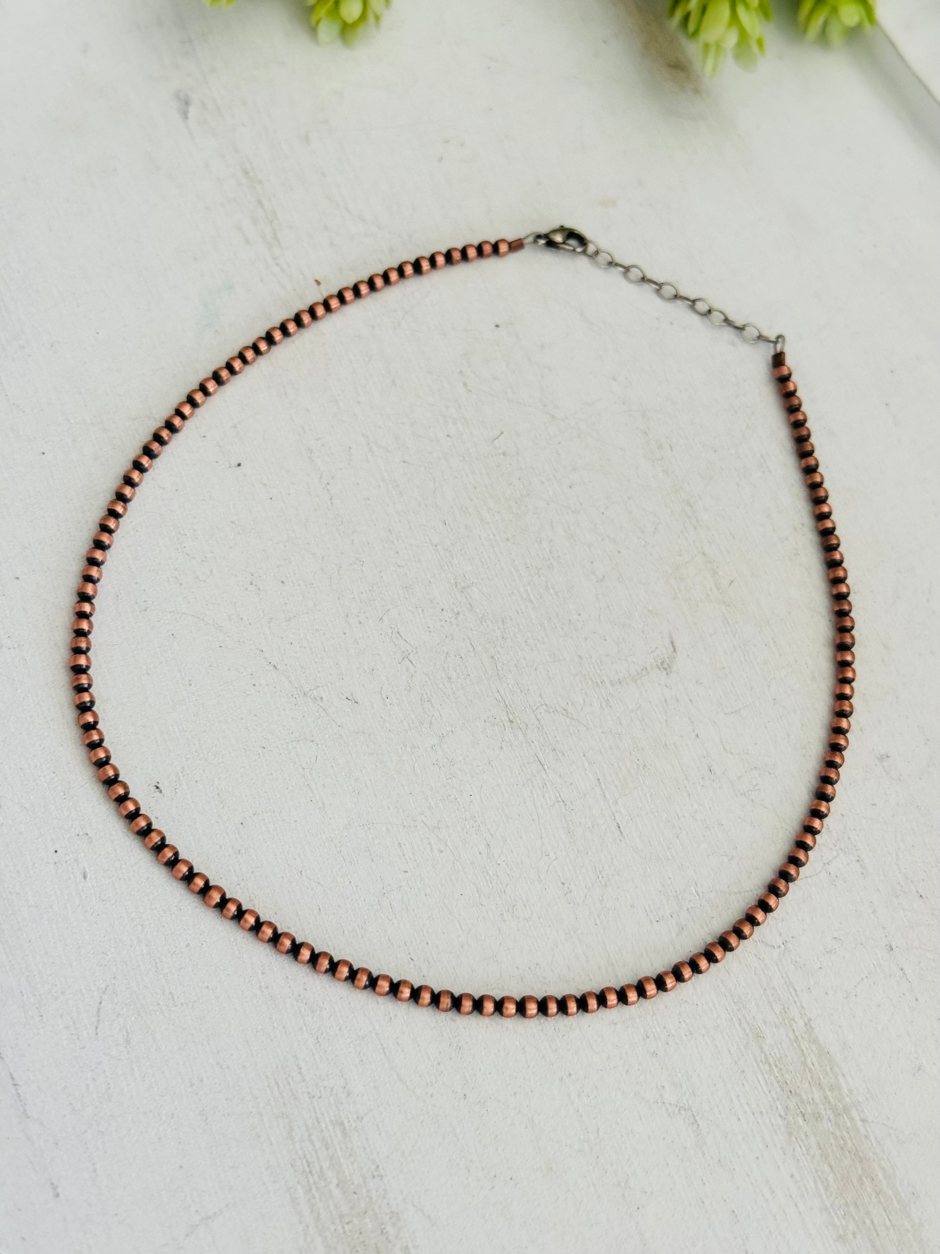 Navajo Strung Copper Pearls Beaded Necklace. It measures 14-15 inches long.