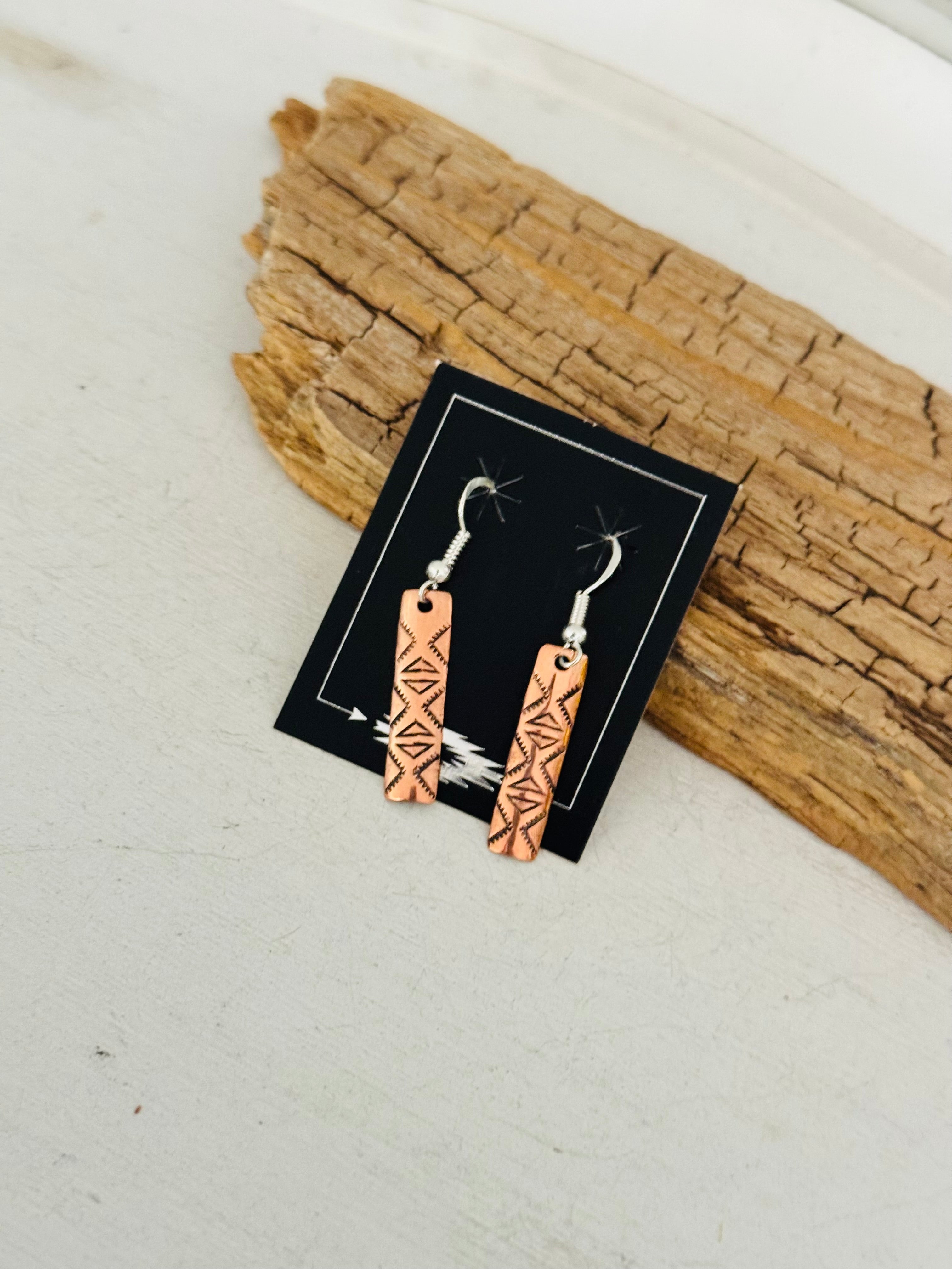 Navajo Strung Copper & Sterling Silver Dangle Earrings