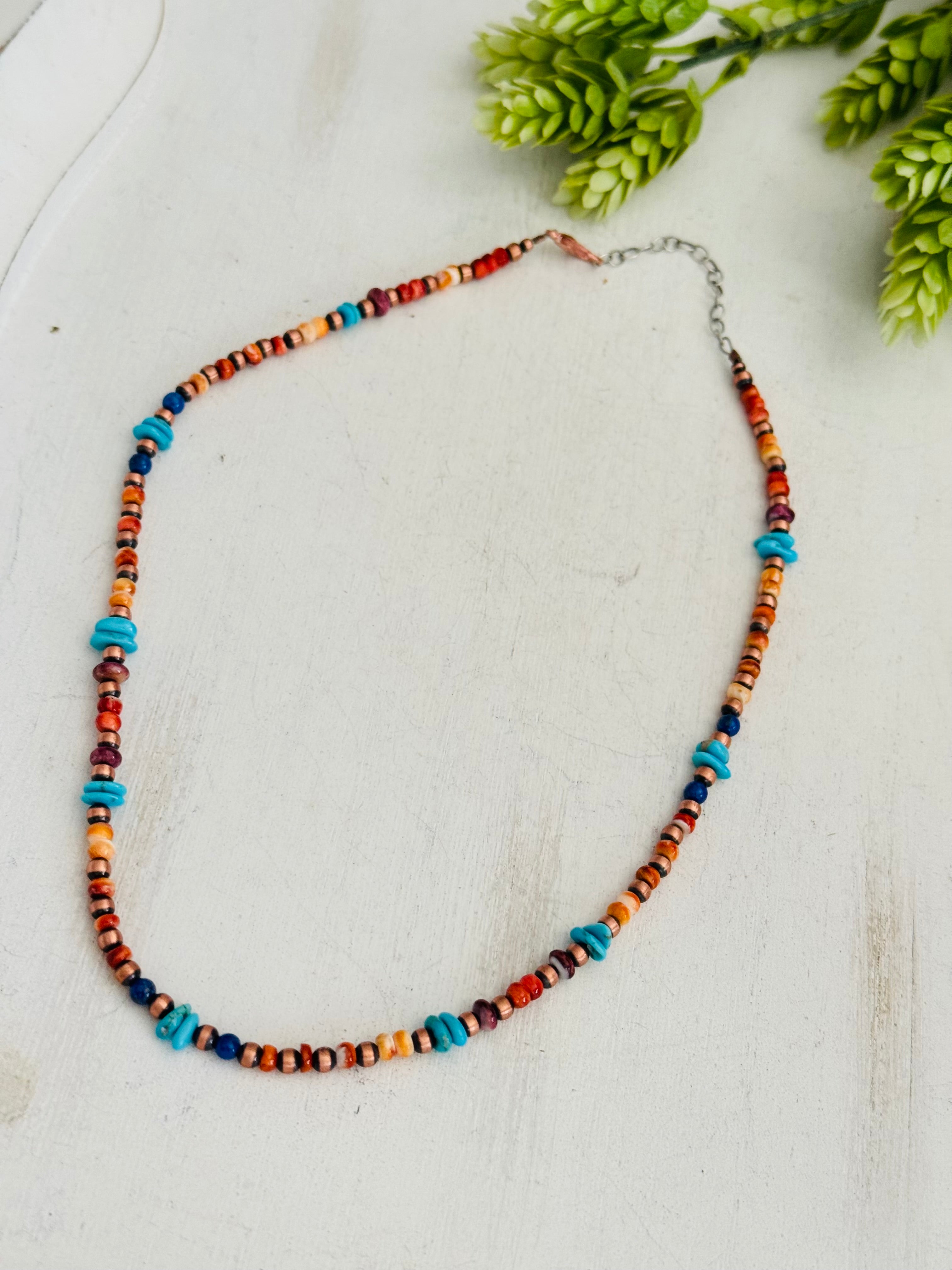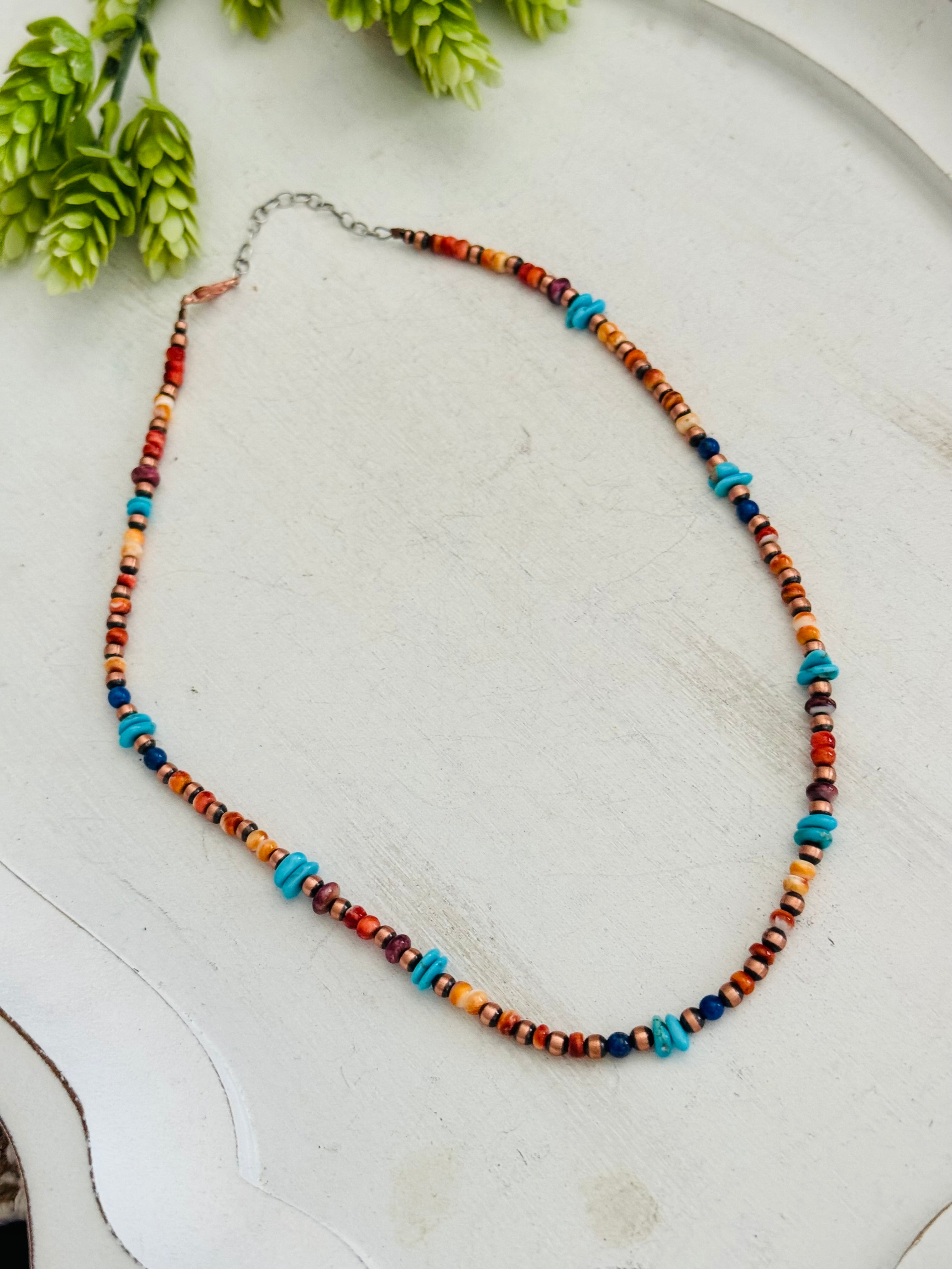 Navajo Strung Multi Stone & Copper Pearls Beaded Necklace
