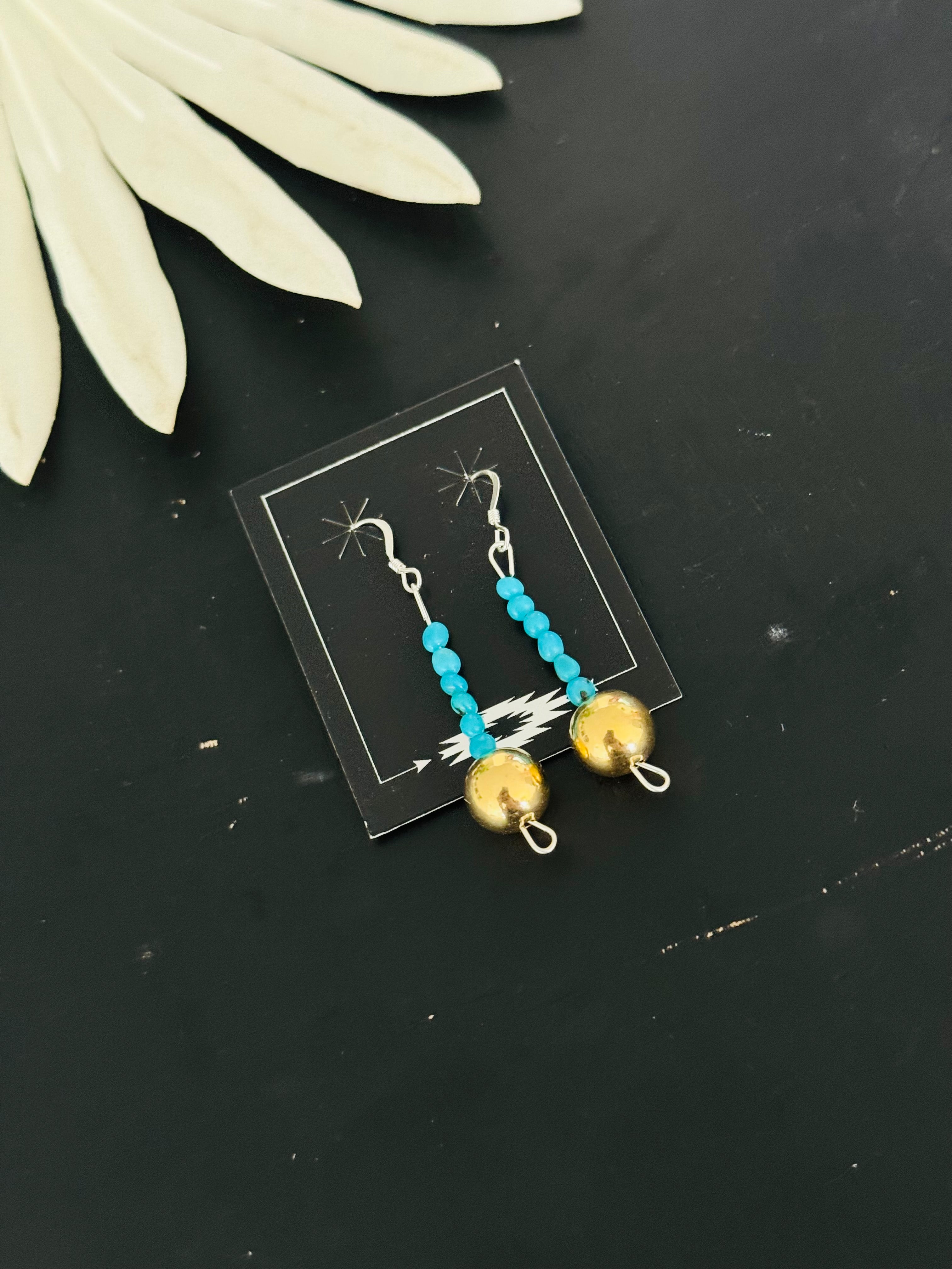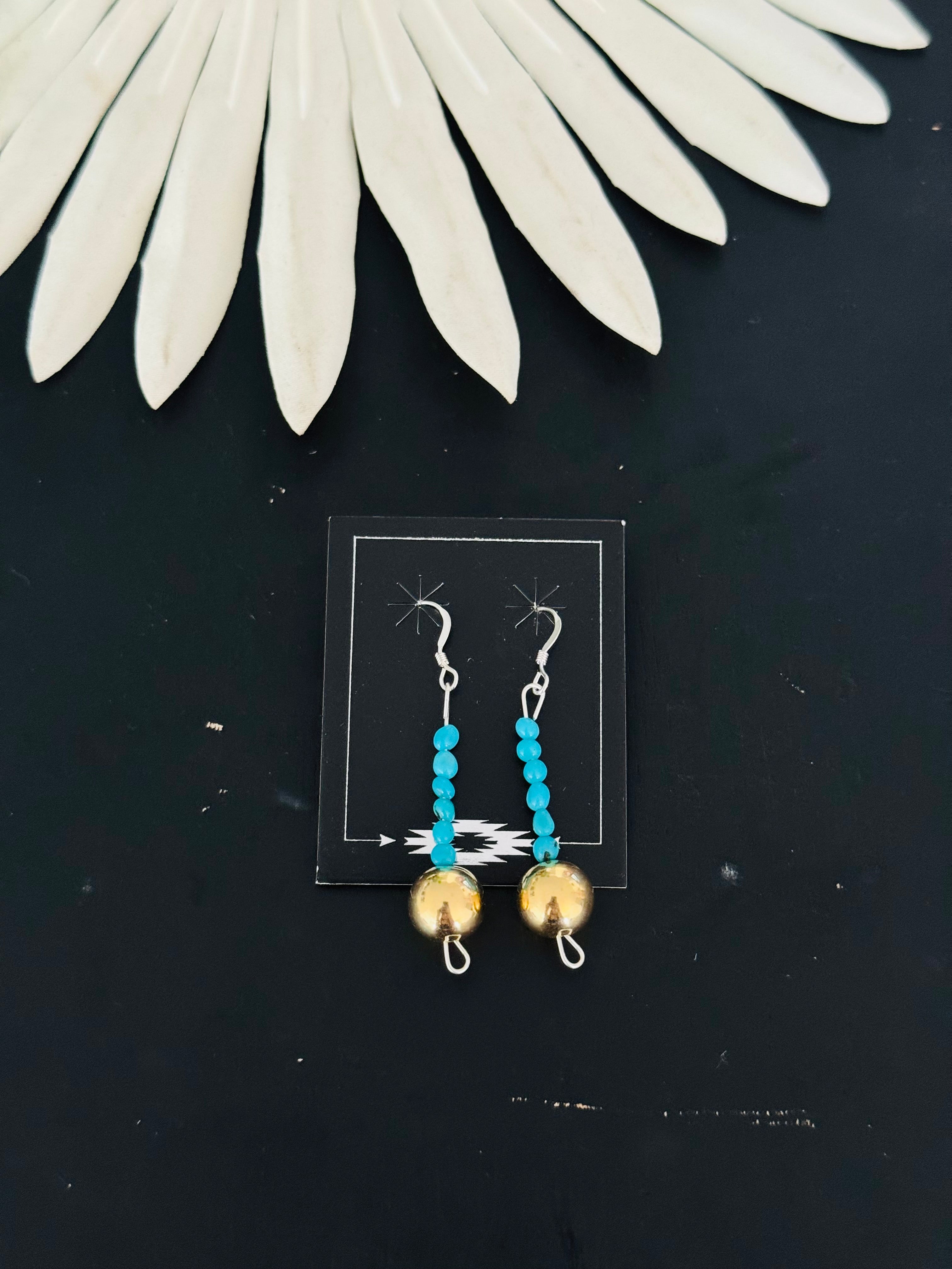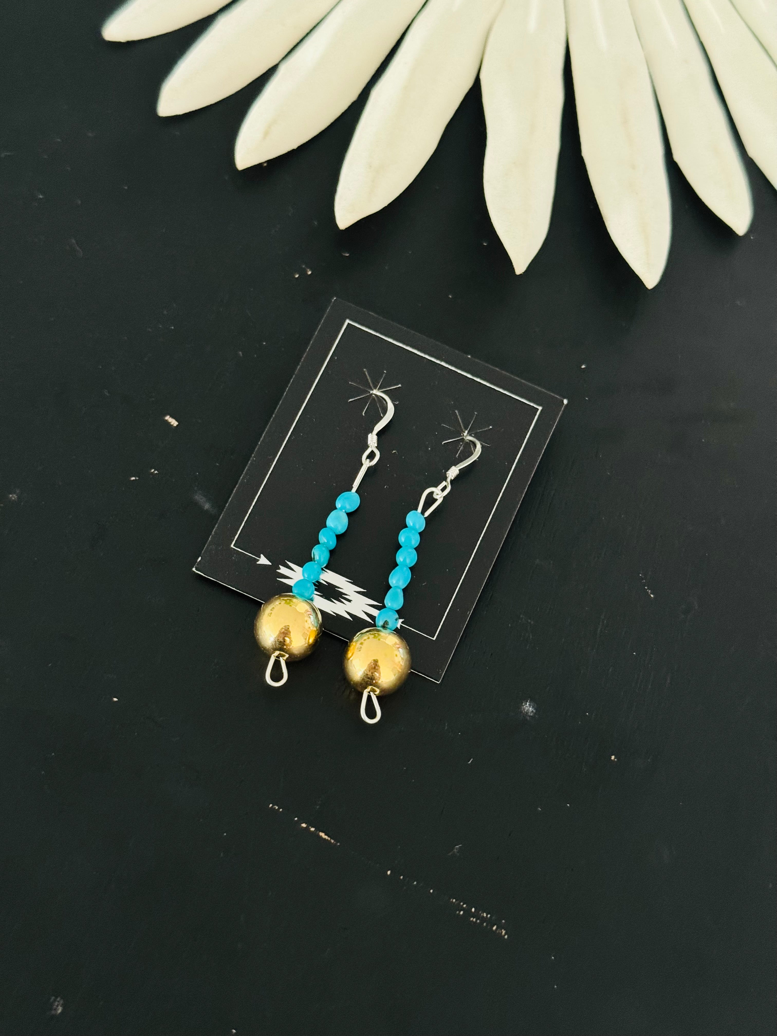 Navajo Strung Kingman Turquoise & 18K Gold Plated Sterling Silver Beaded Dangle Earrings