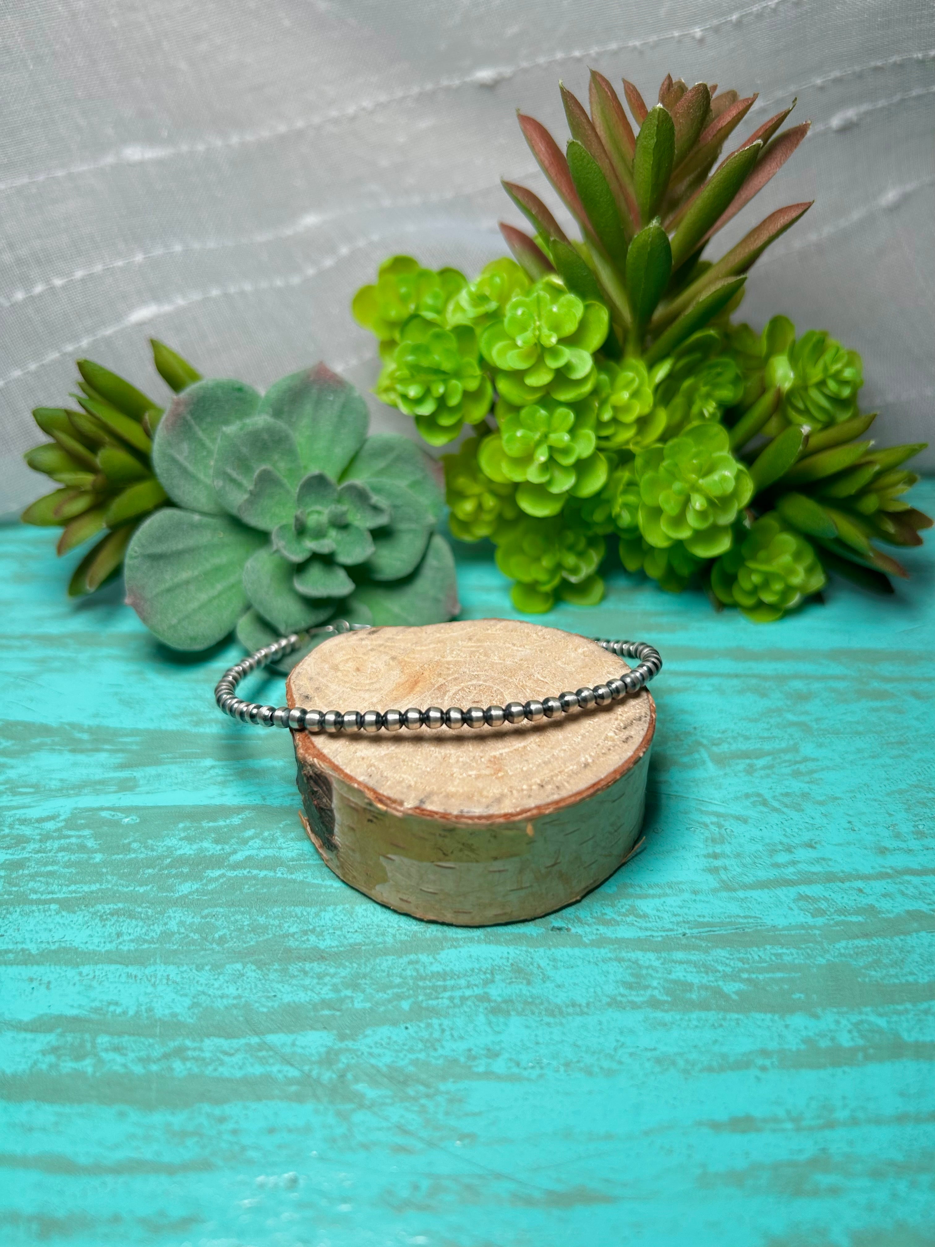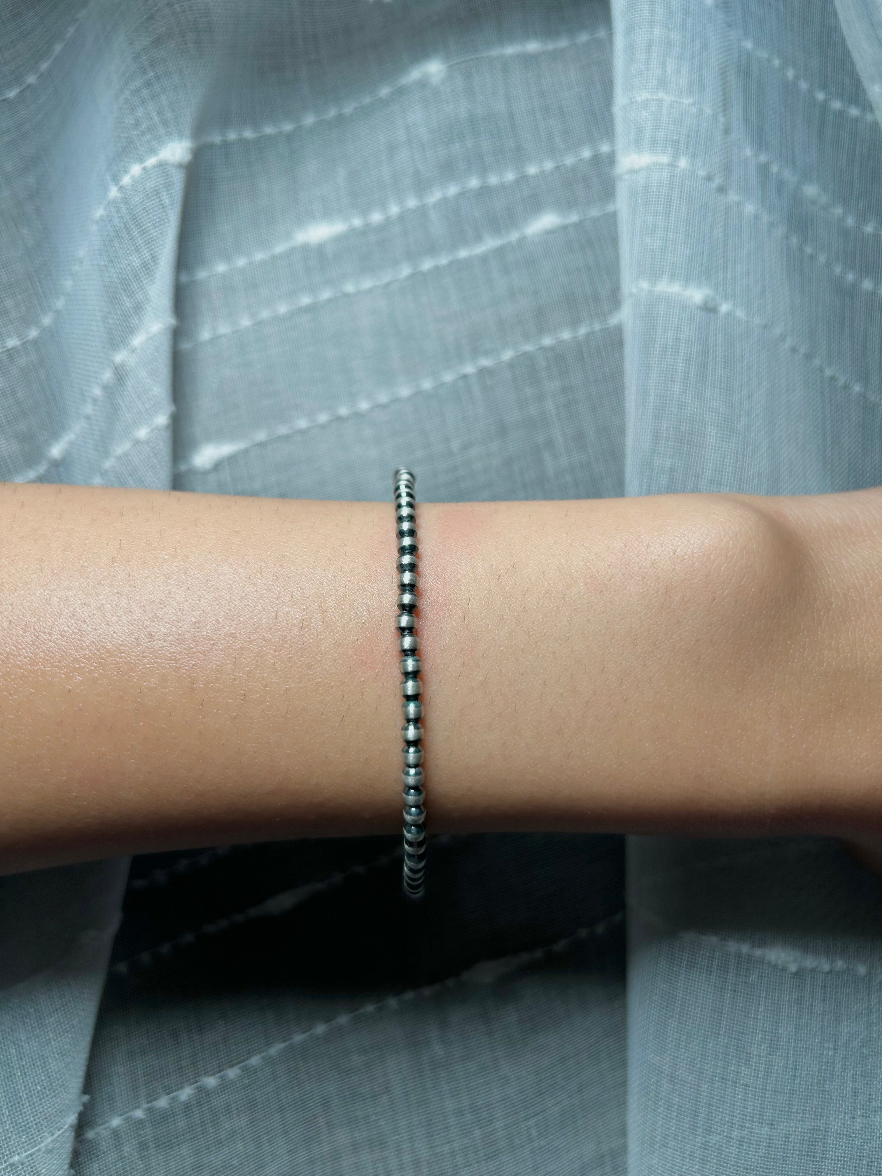 Navajo Made 3 MM Strung Sterling Silver Bracelet