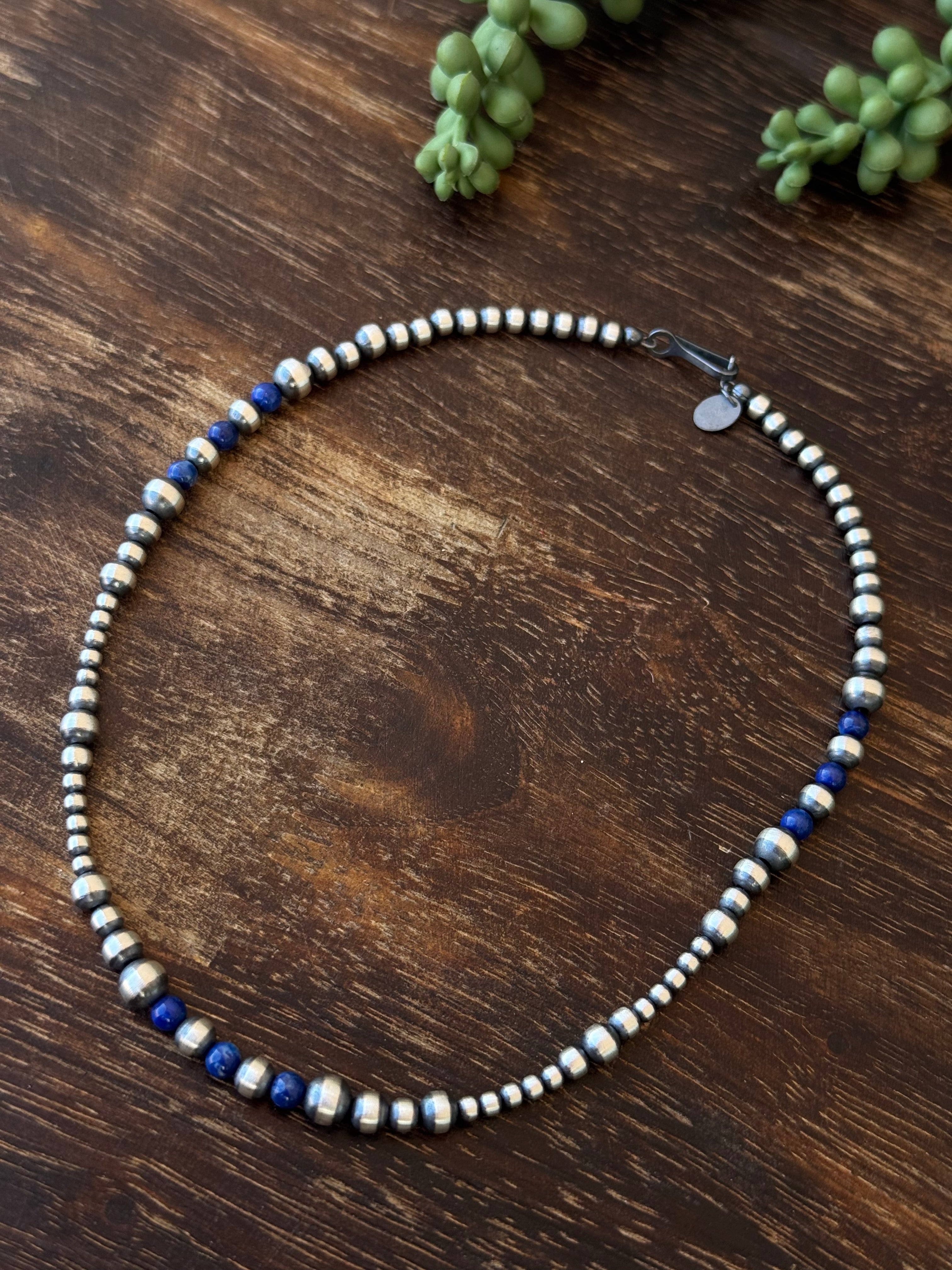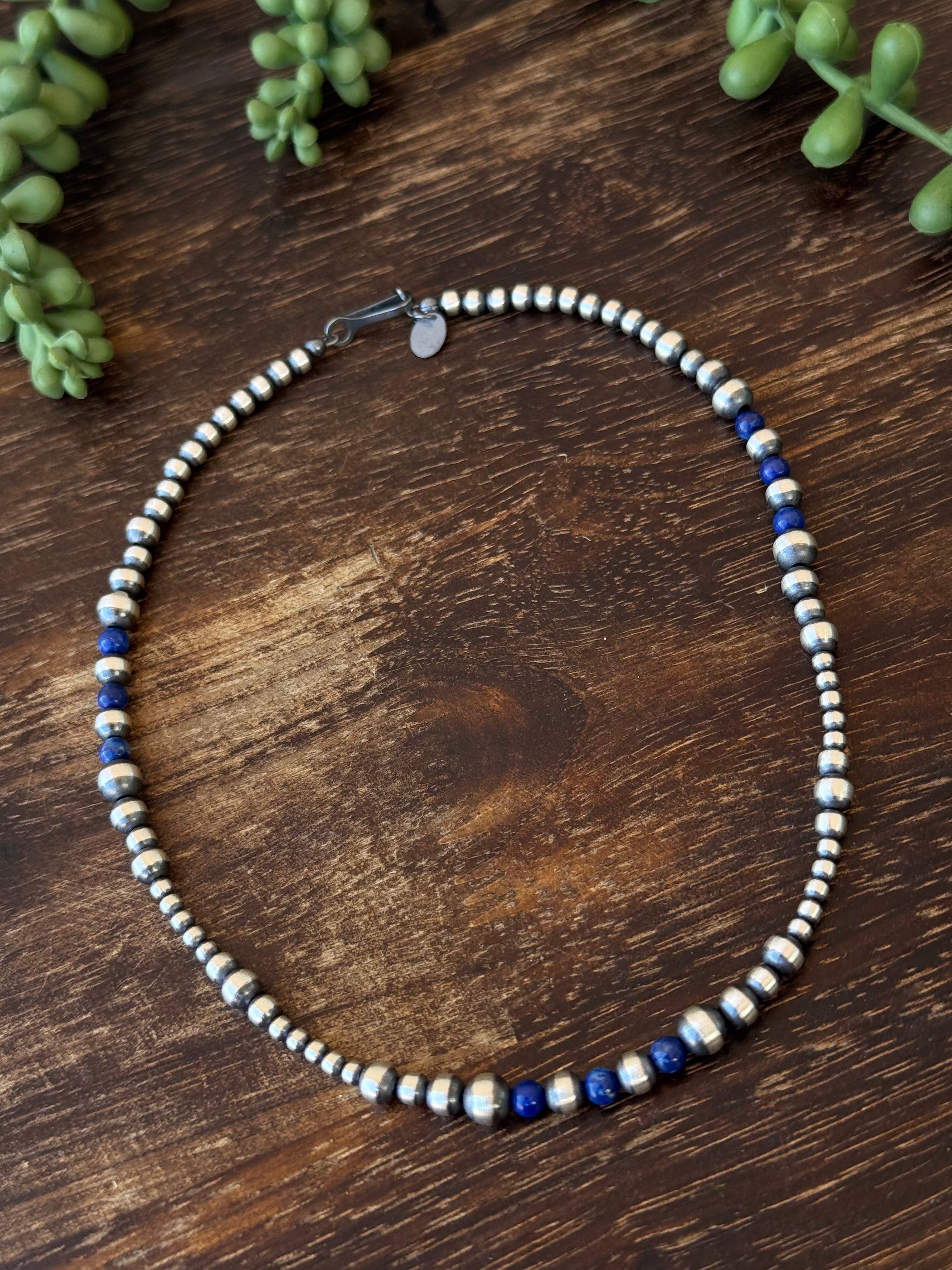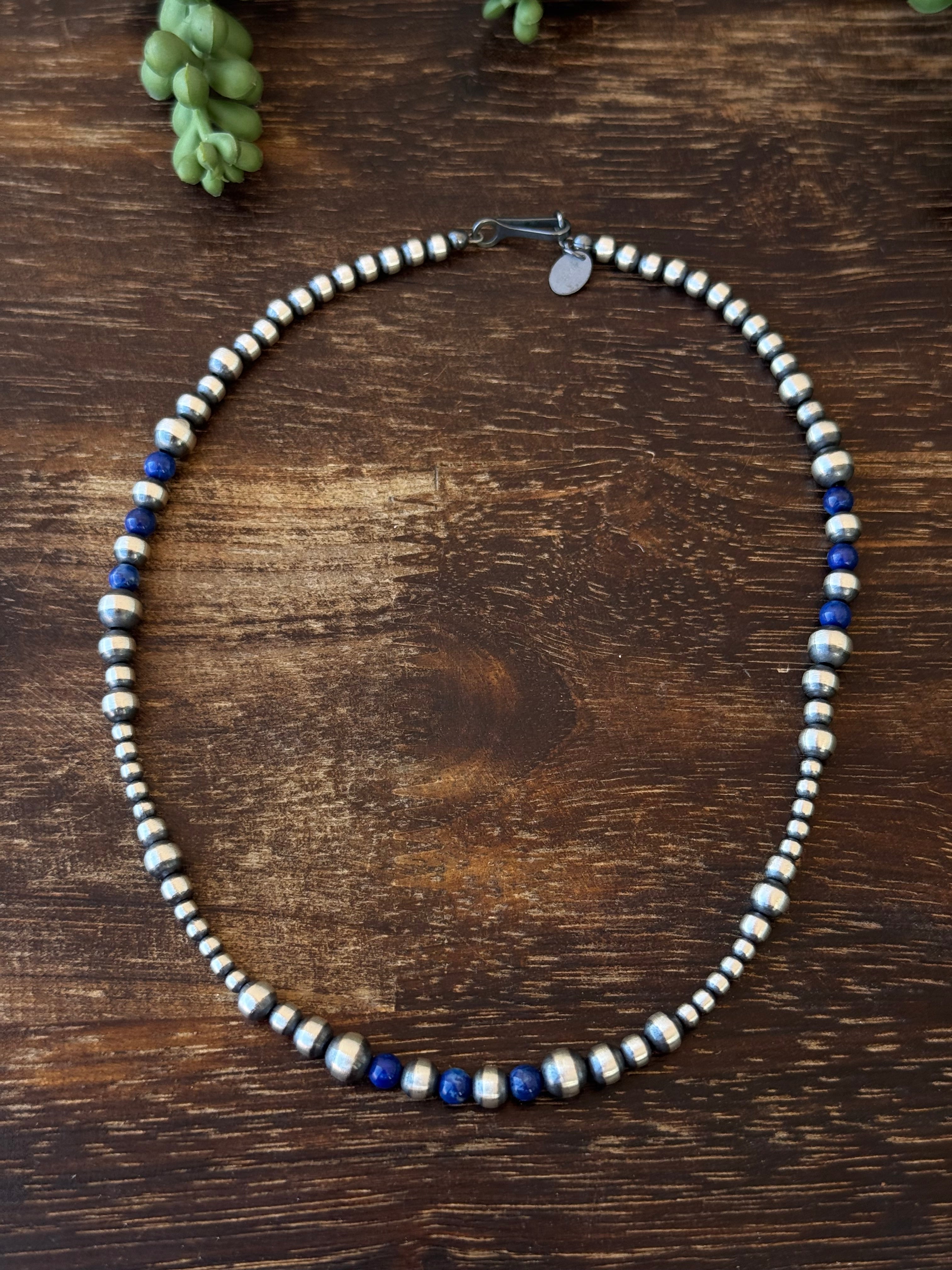Navajo Strung Lapis & Sterling Silver Graduated Pearl Necklace