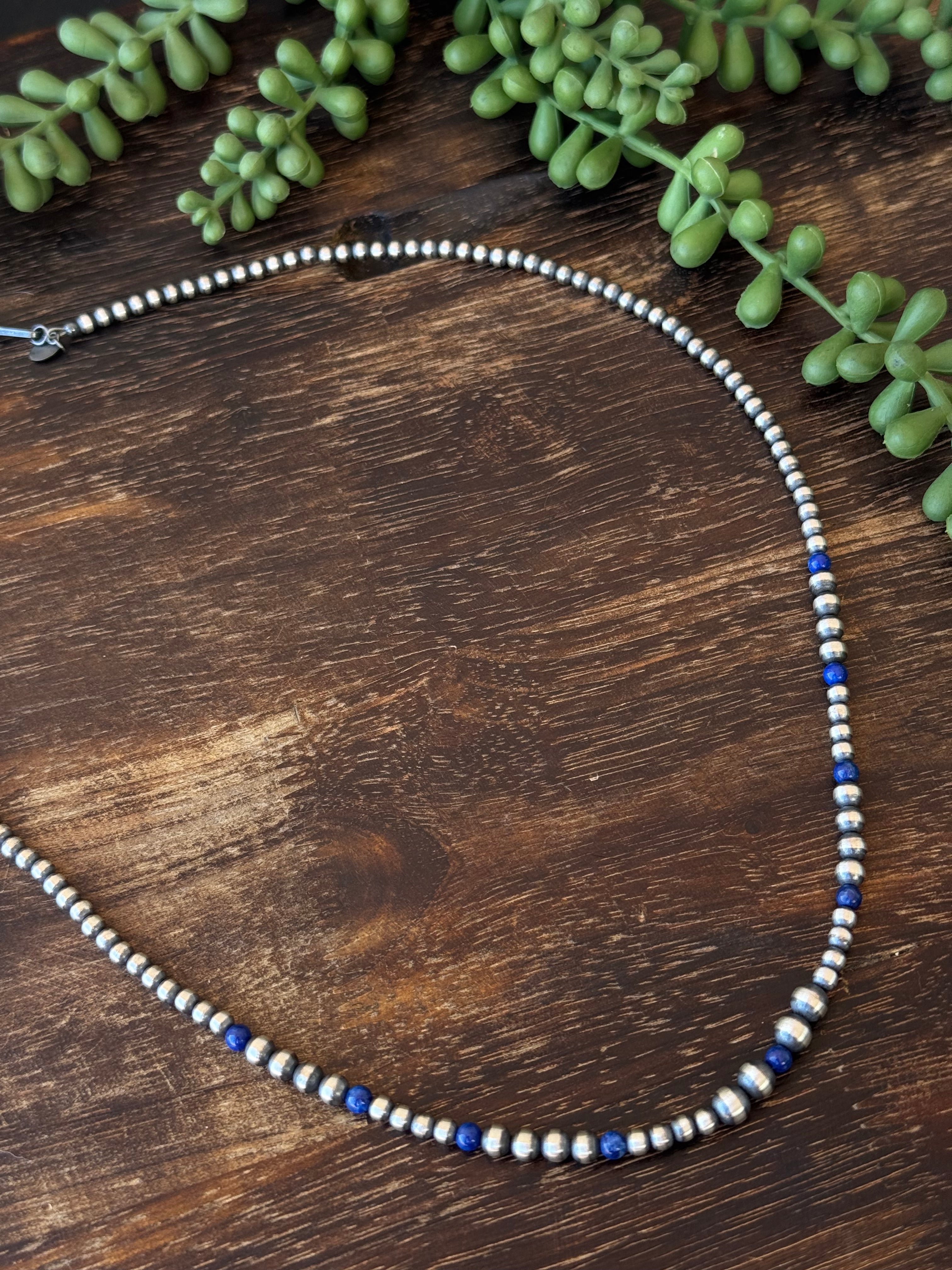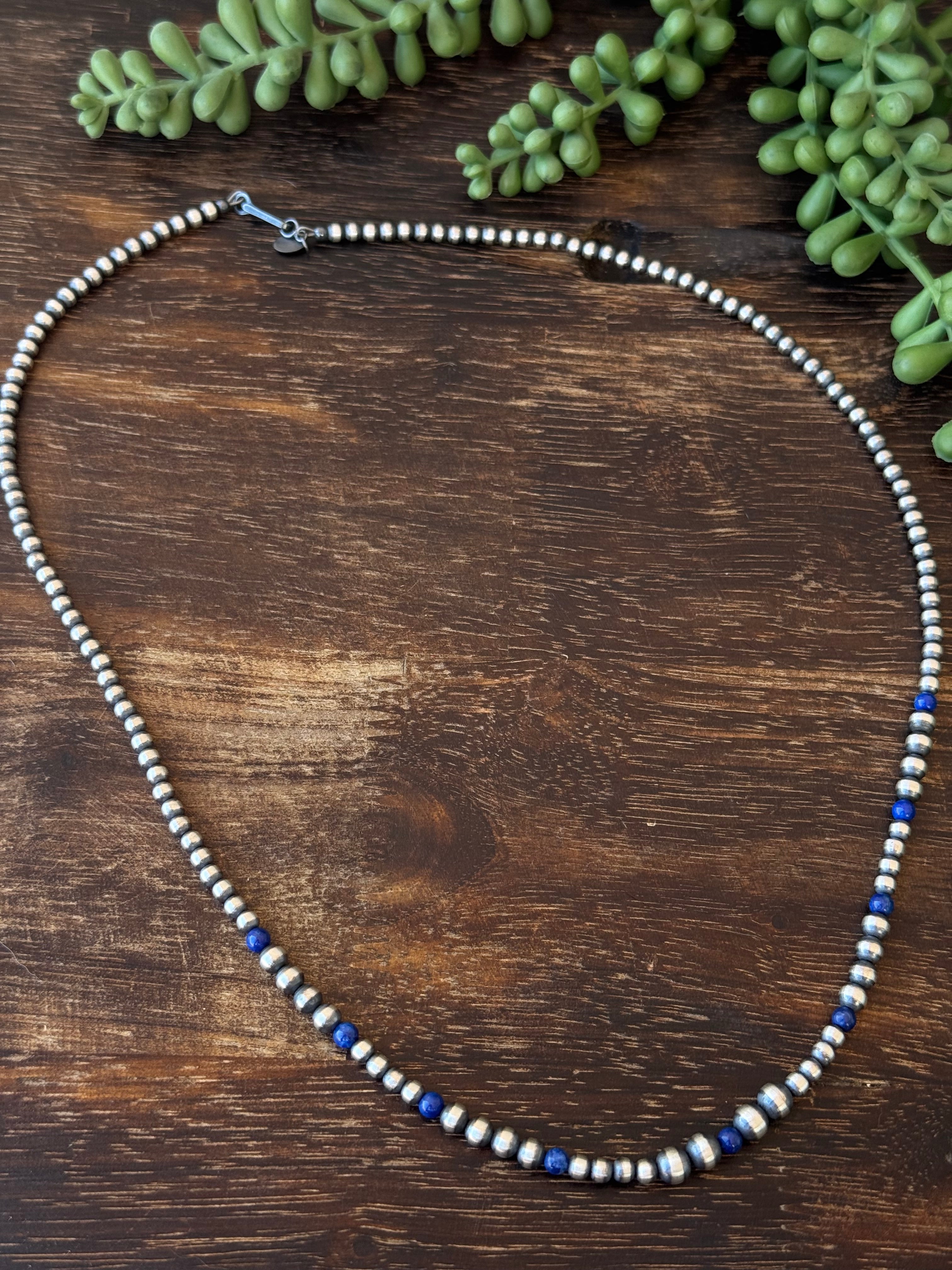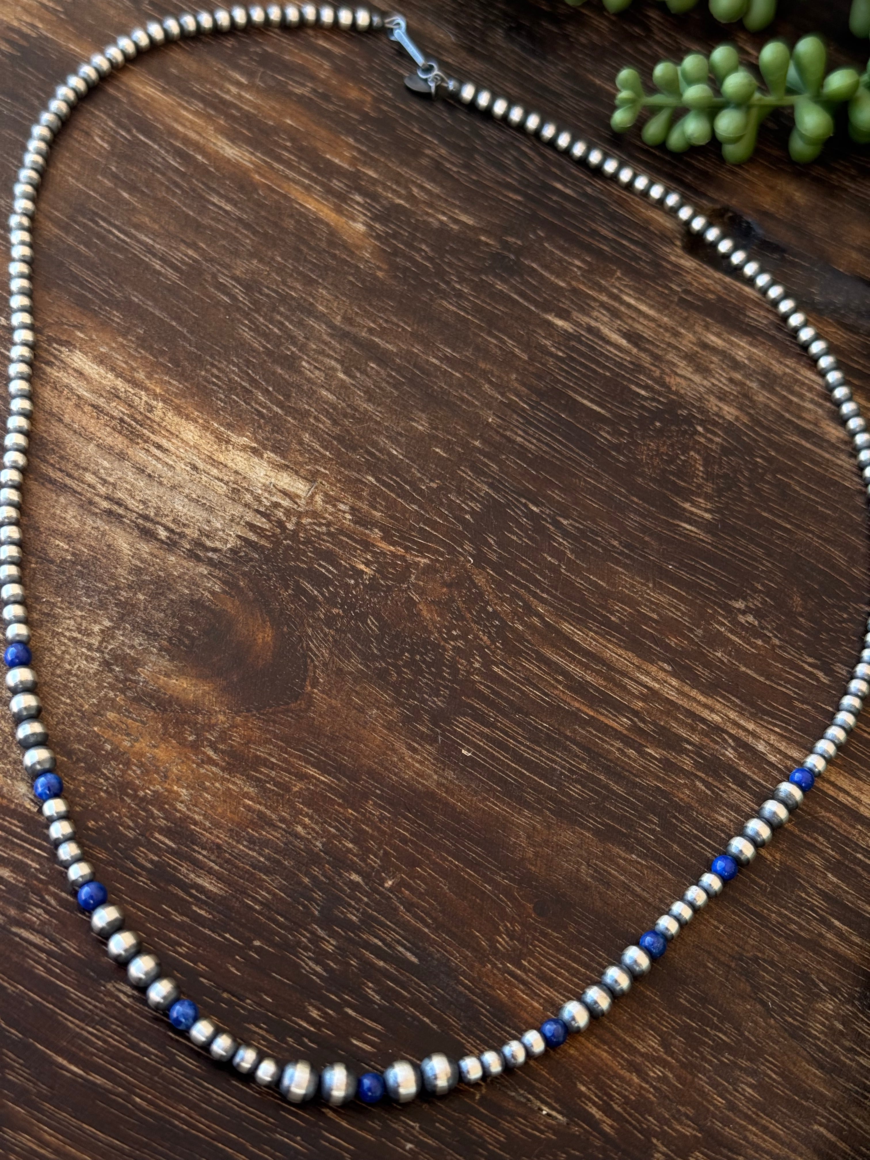 Navajo Strung Lapis & Sterling Silver Graduated Pearl Necklace