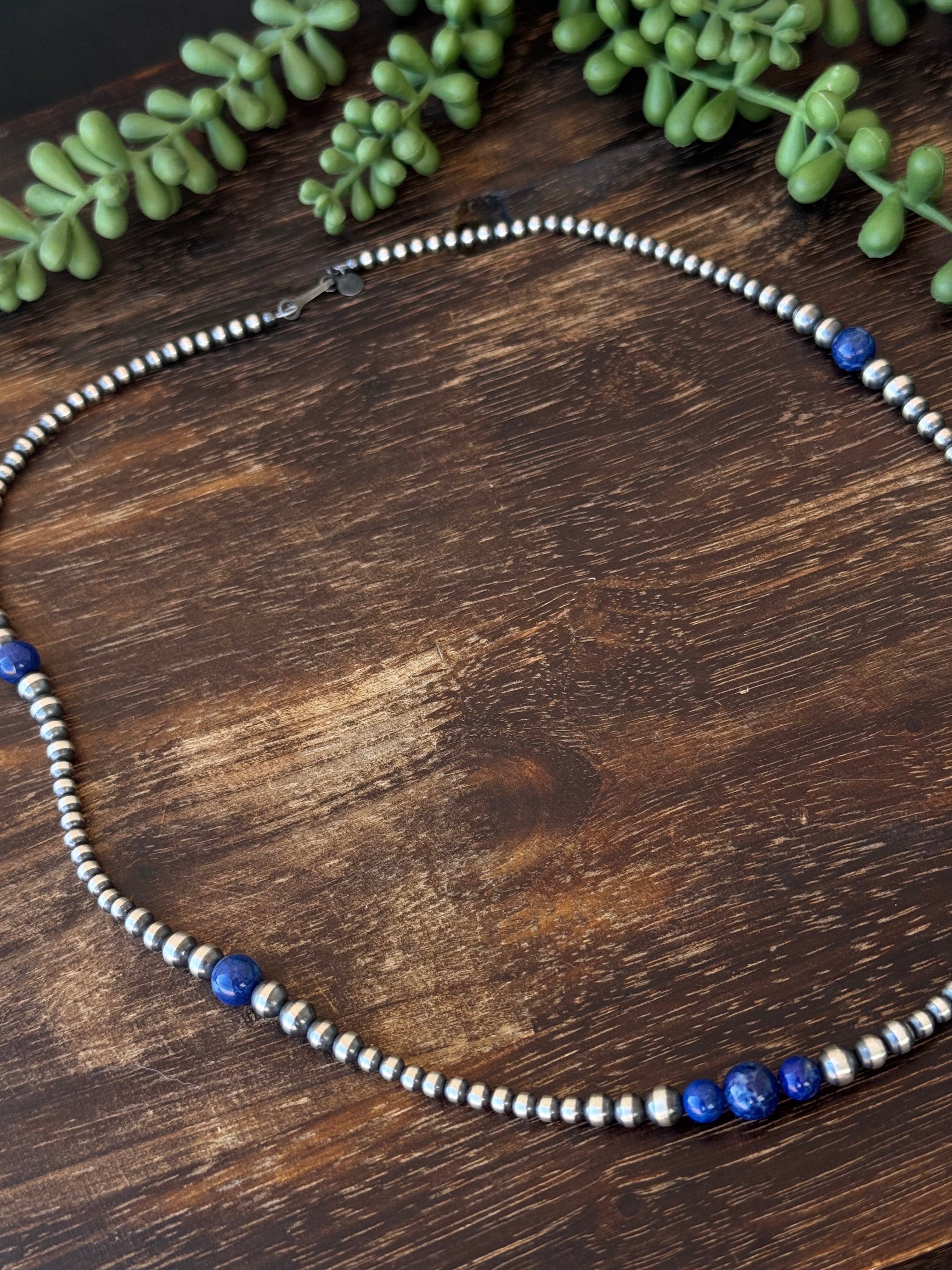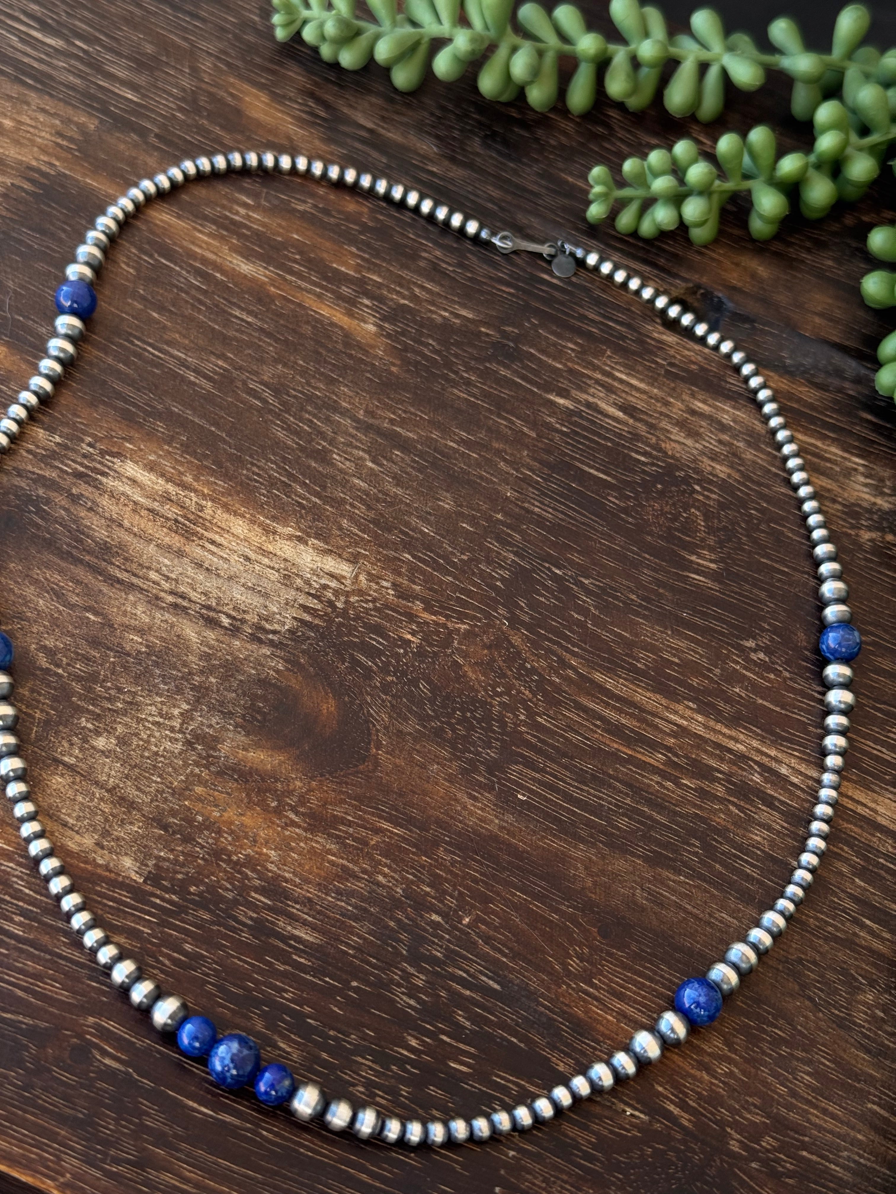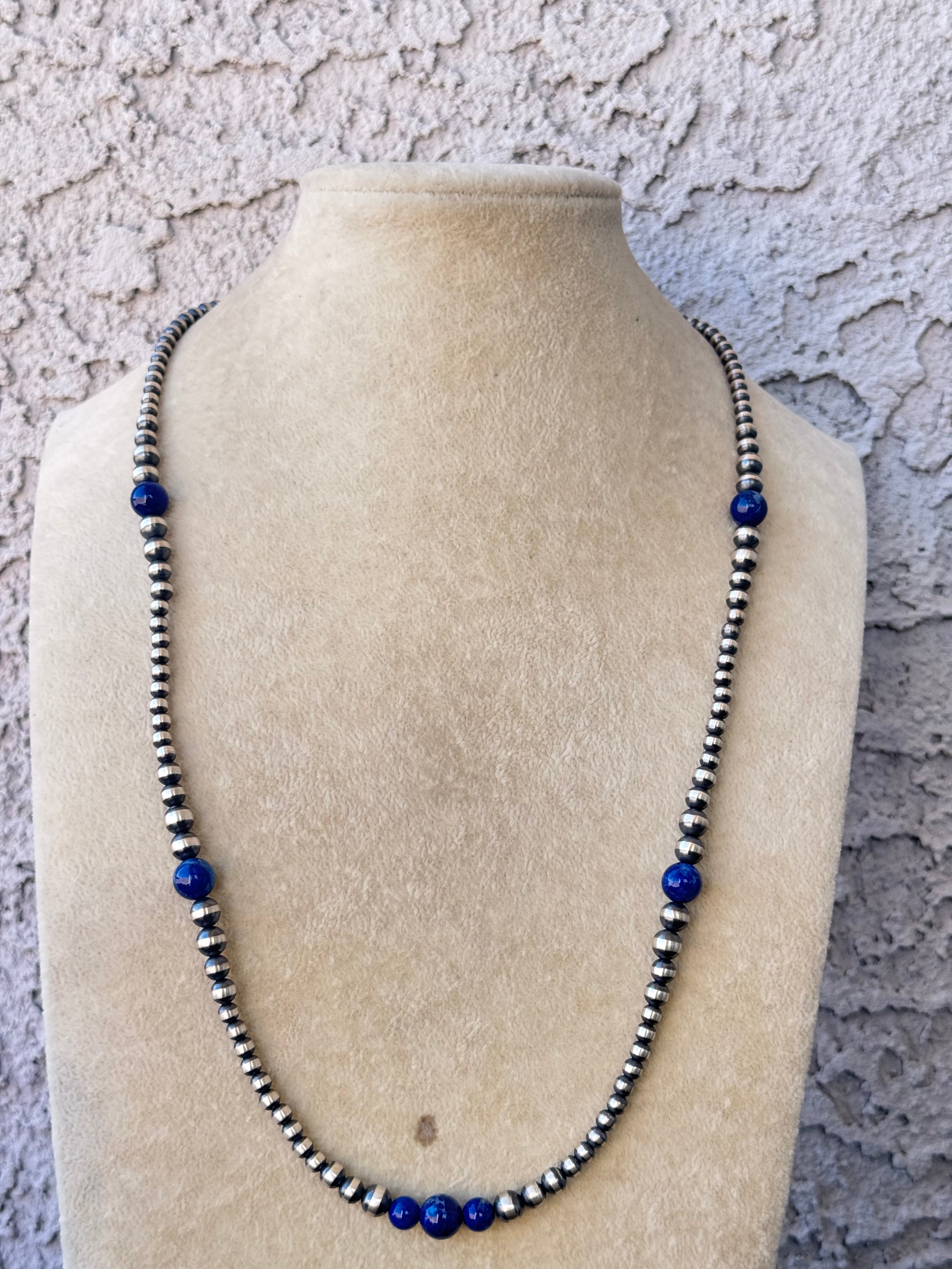 Navajo Strung Lapis & Sterling Silver Graduated Pearl Necklace