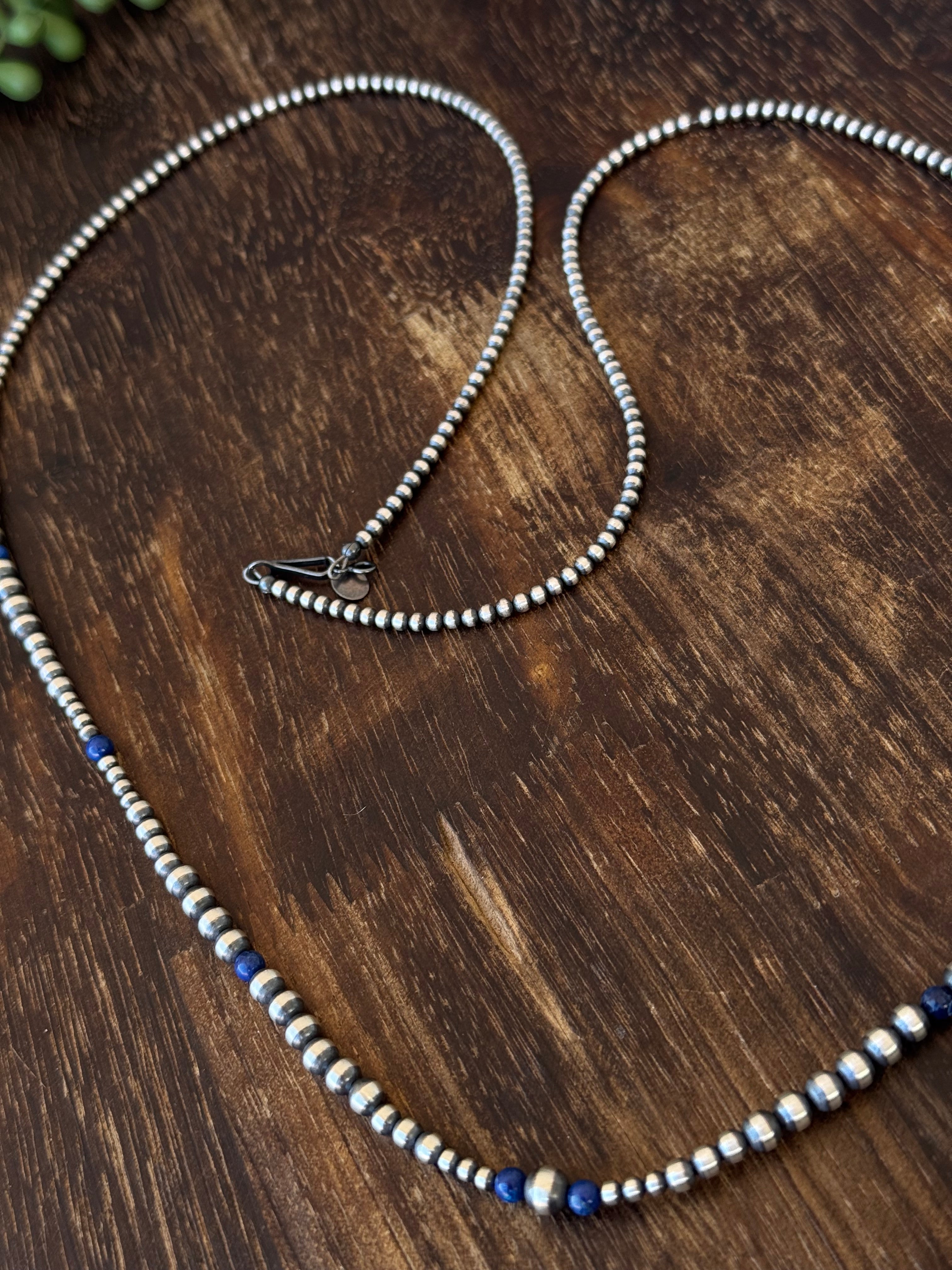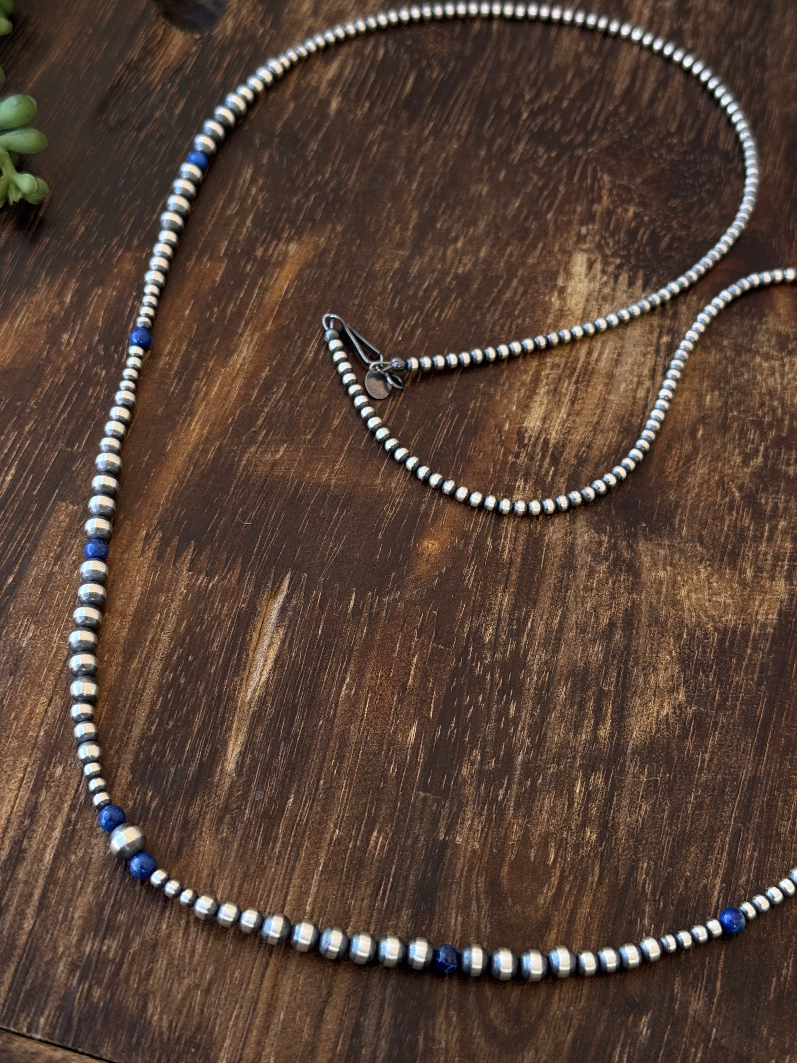 Navajo Strung Lapis & Sterling Silver Graduated Pearl Necklace