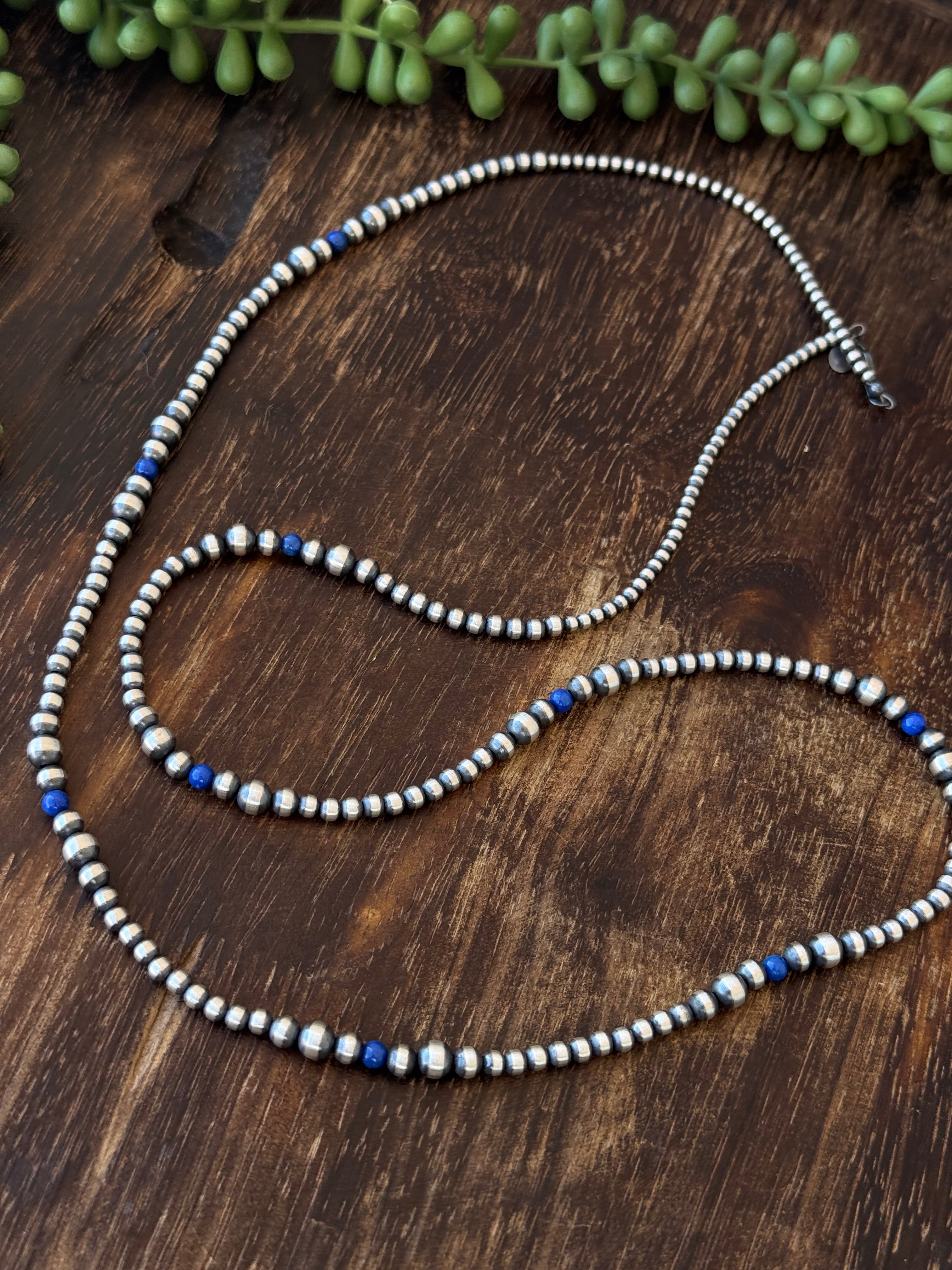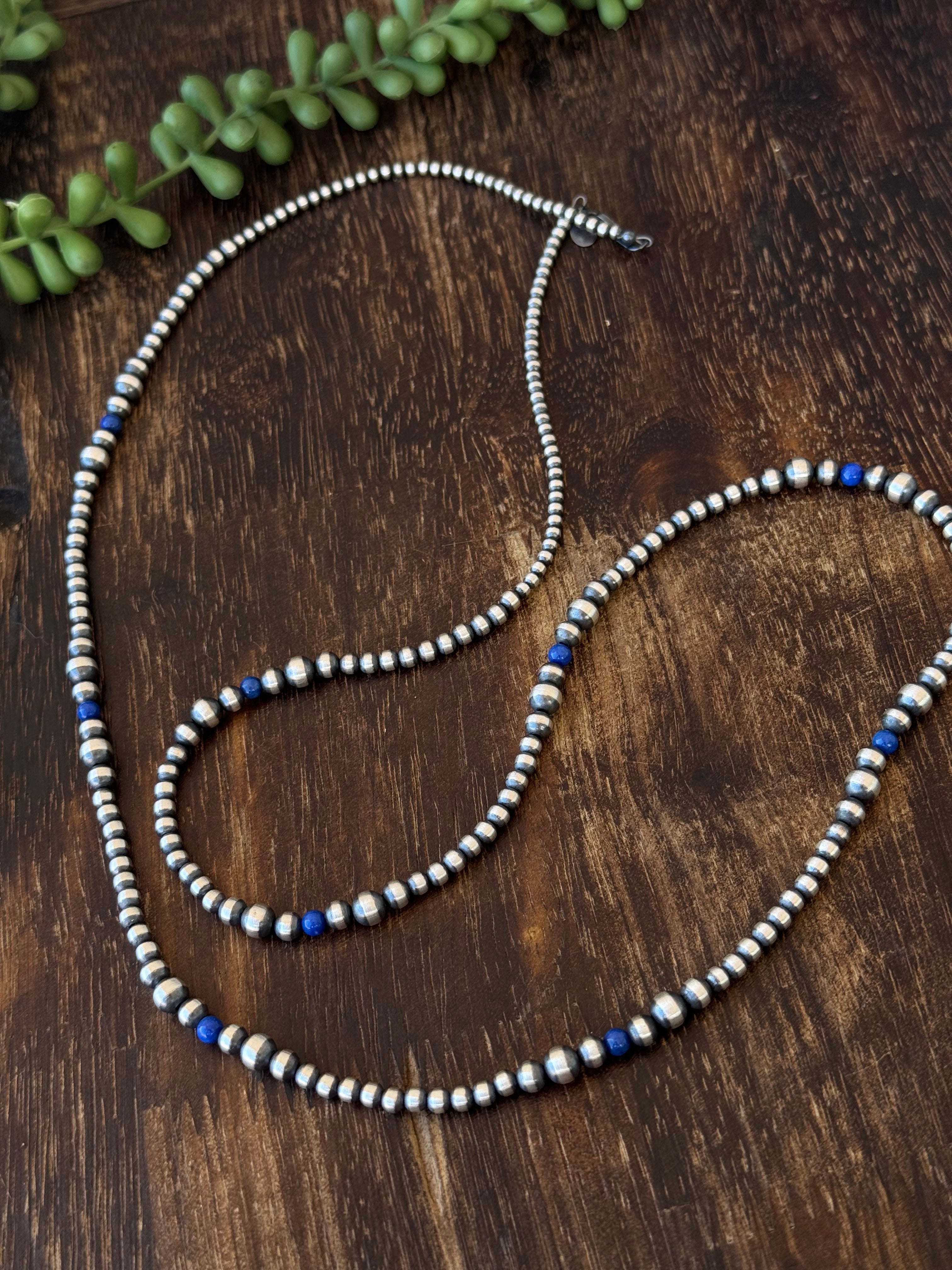 Navajo Strung Lapis & Sterling Silver Graduated Pearl Necklace