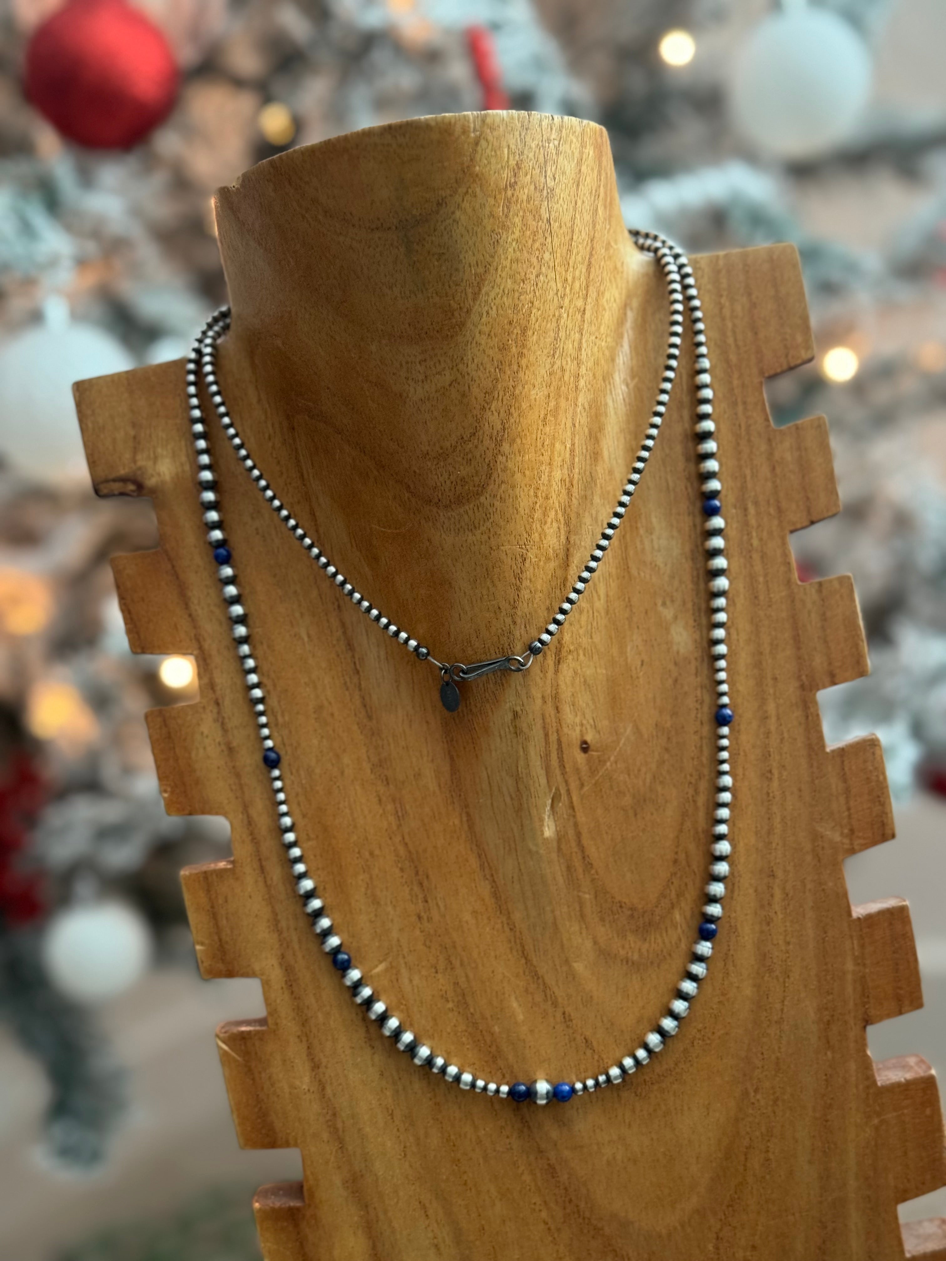 Navajo Strung Lapis & Sterling Silver Graduated Pearl Necklace