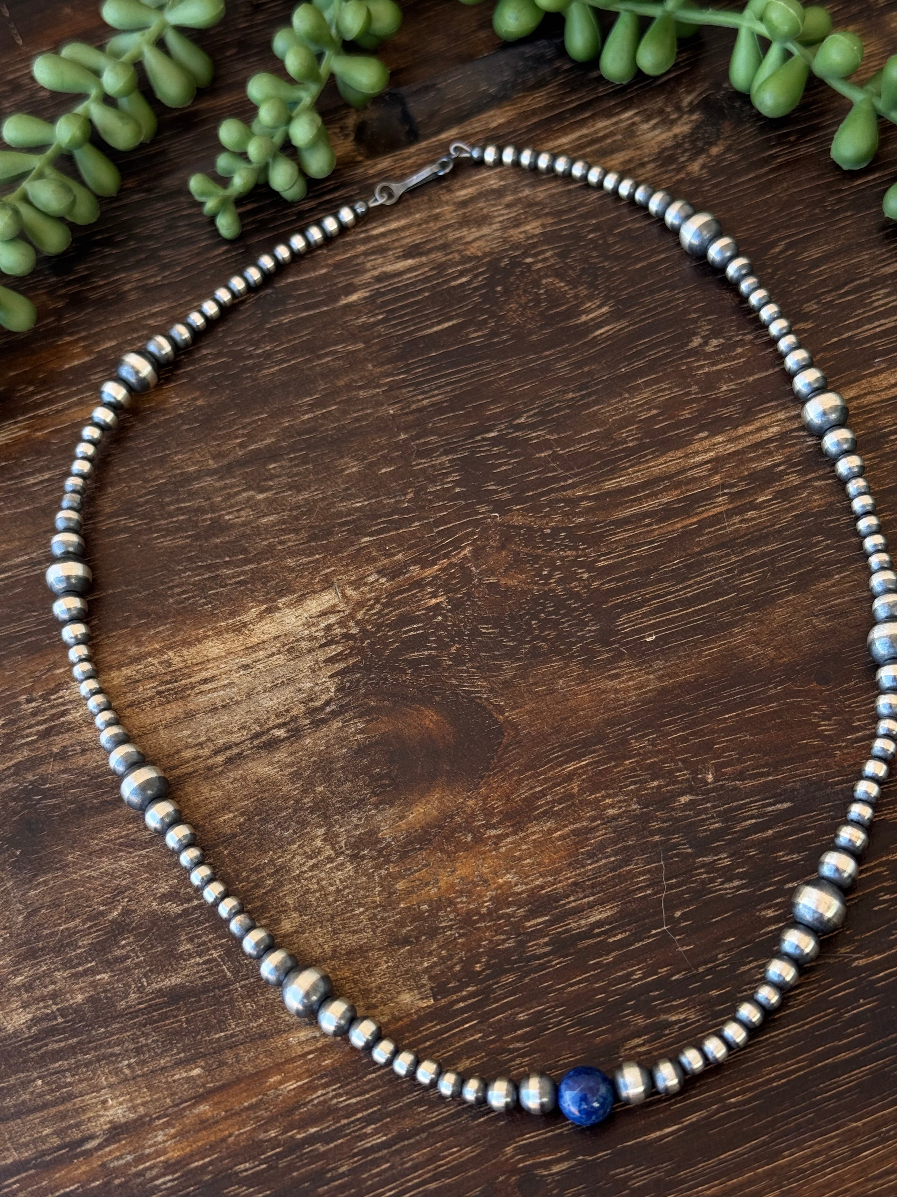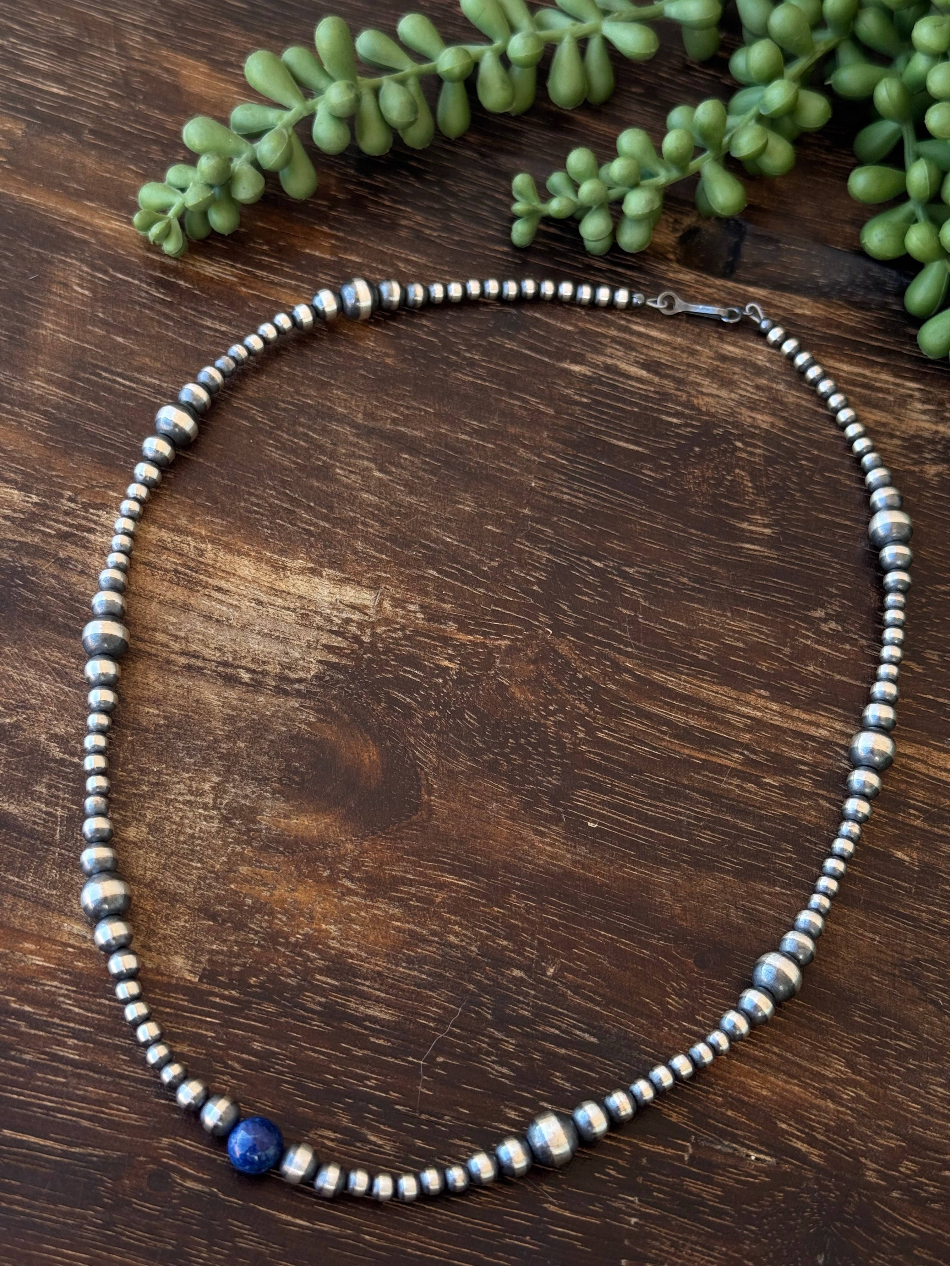 Navajo Strung Lapis & Sterling Silver Graduated Pearl Necklace